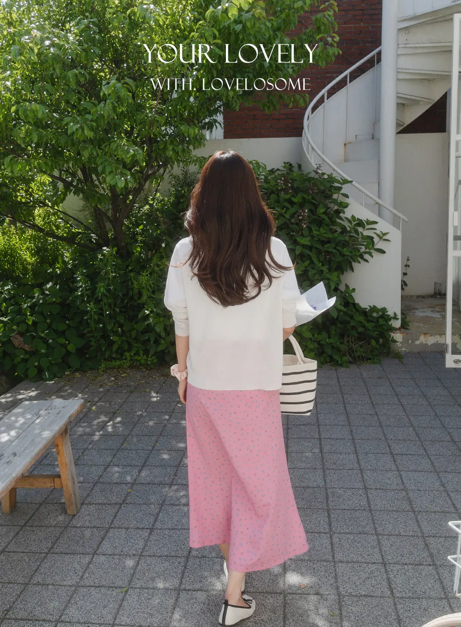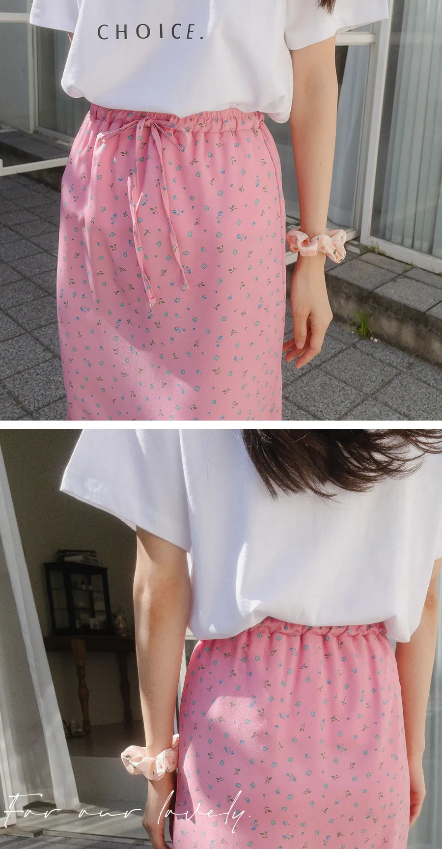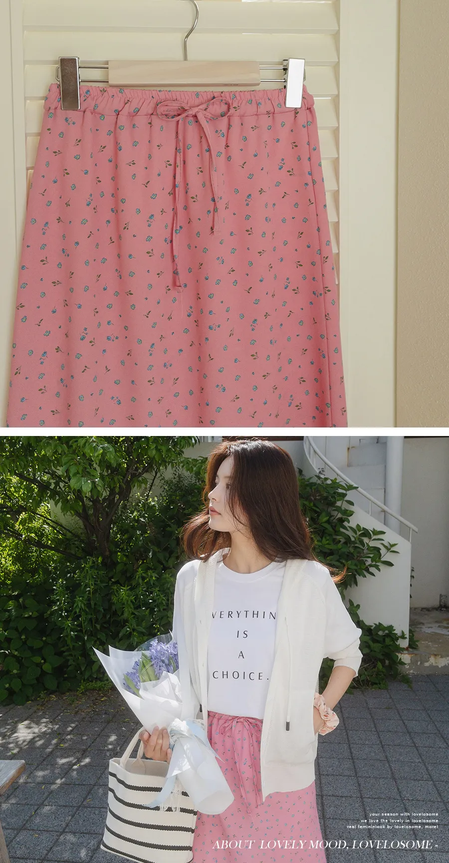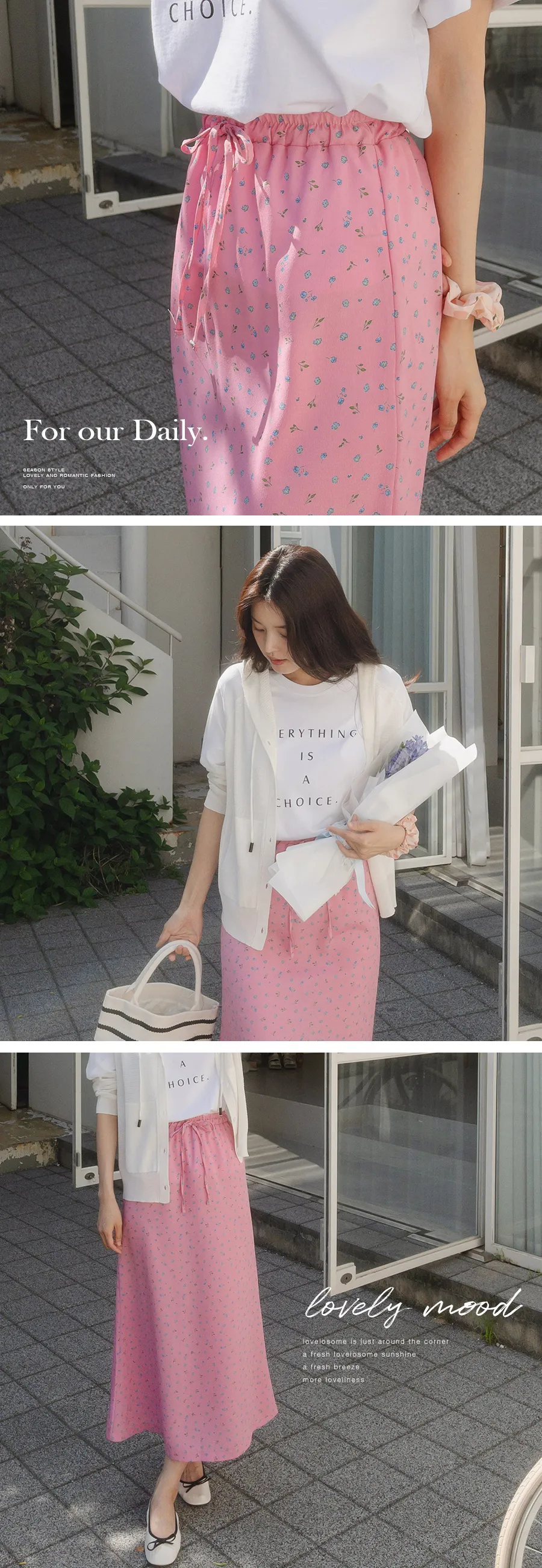 可愛小碎花柔軟輕款腰綁帶中長裙
