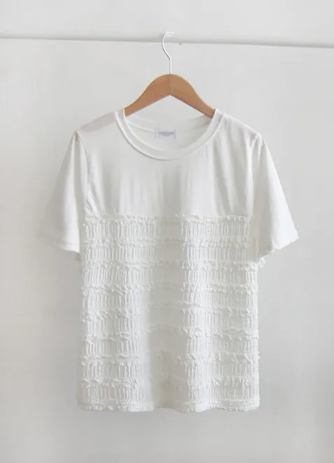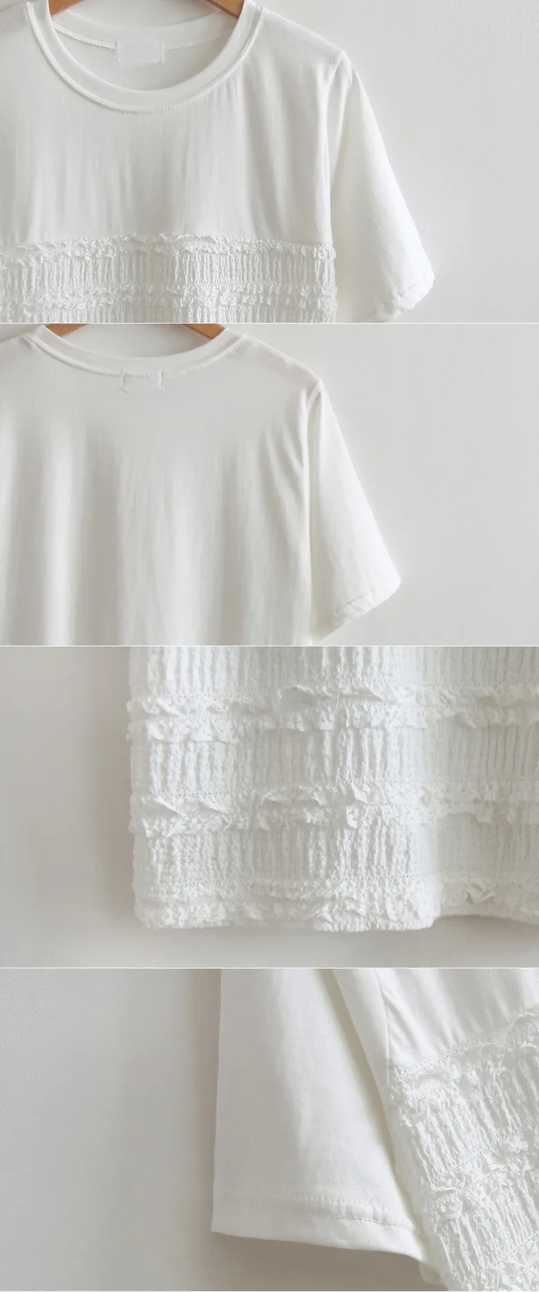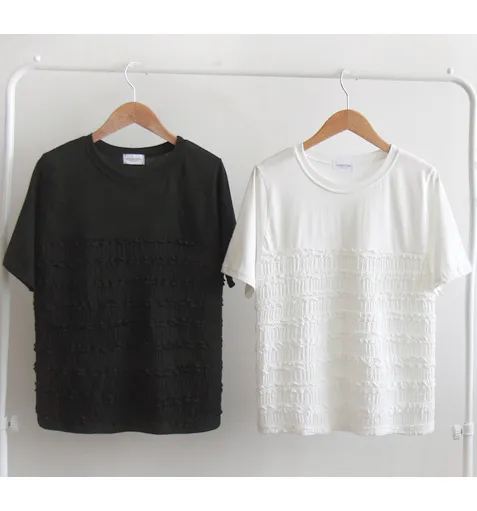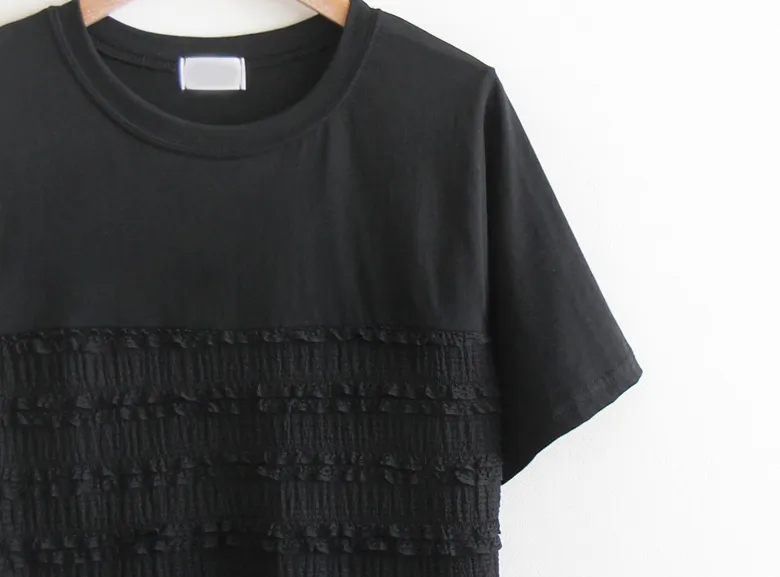夏日可愛摺邊彈性蕾絲短袖上衣