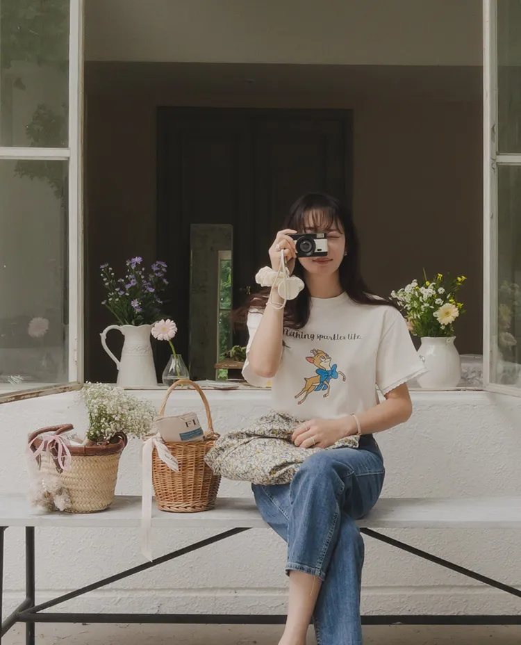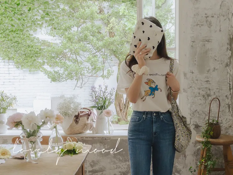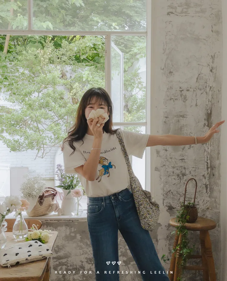 【帶有可愛點綴的基本款上衣♡】【絲帶小鹿印花!