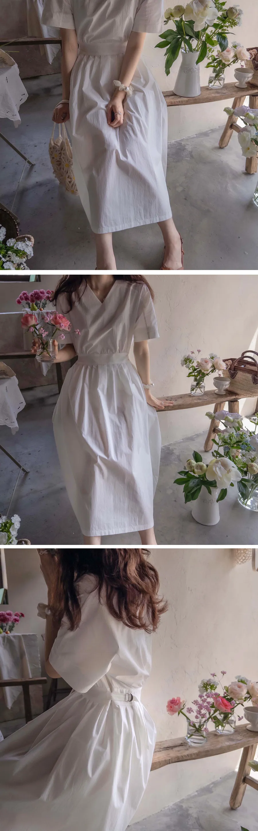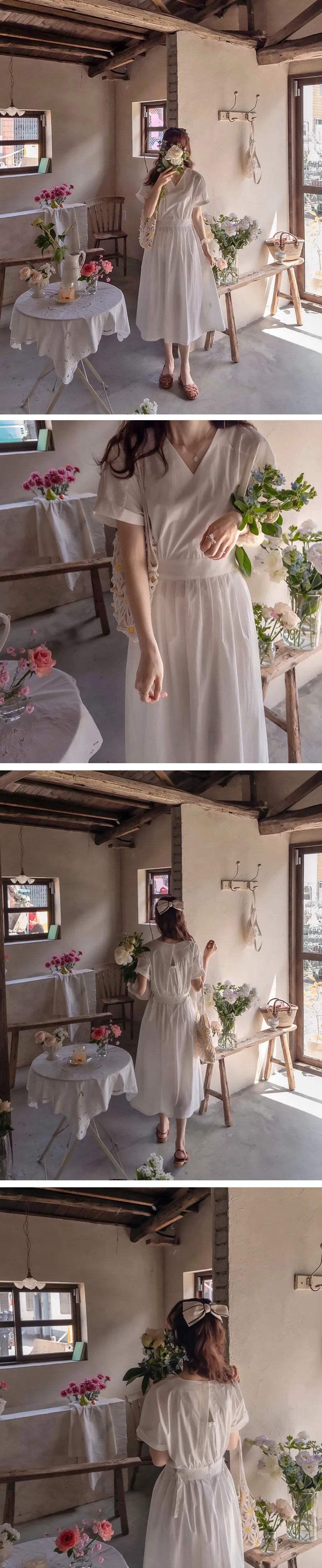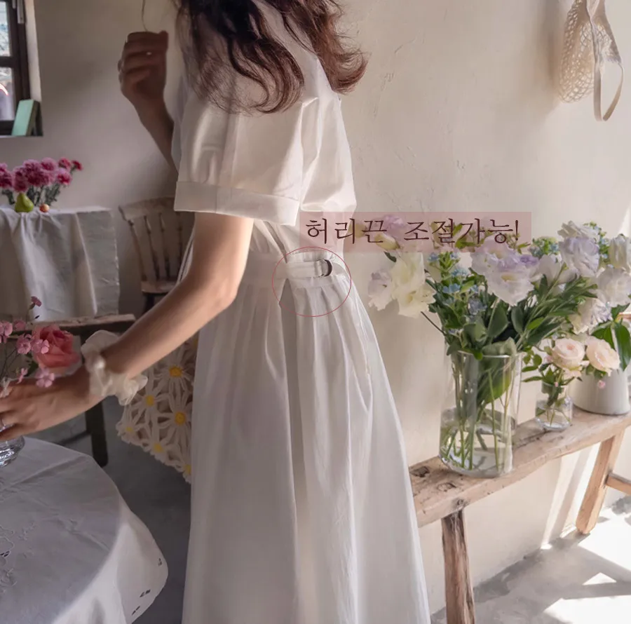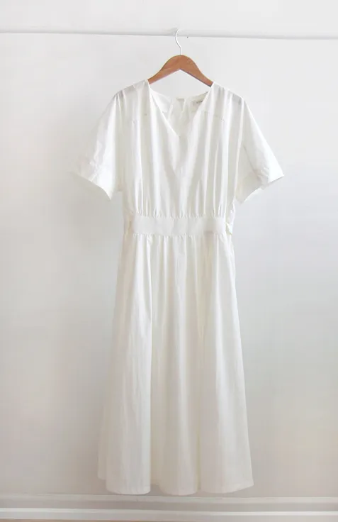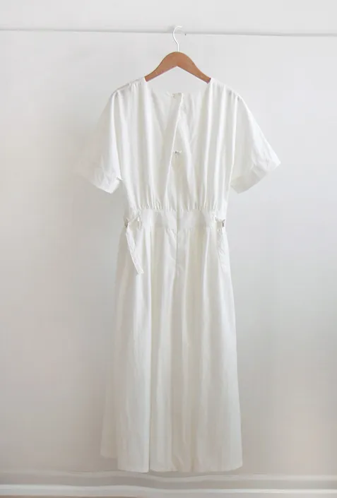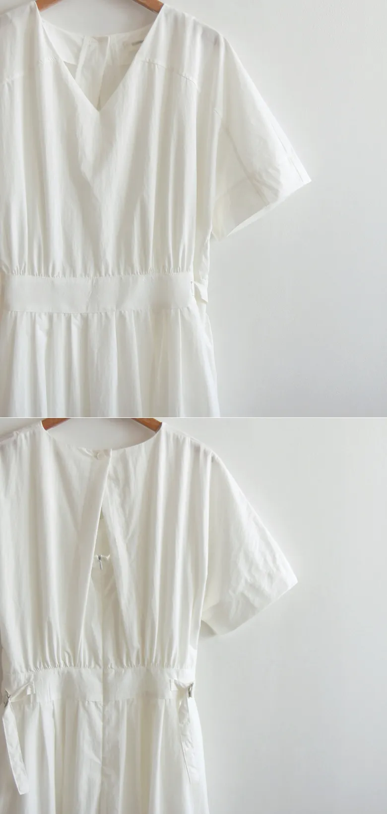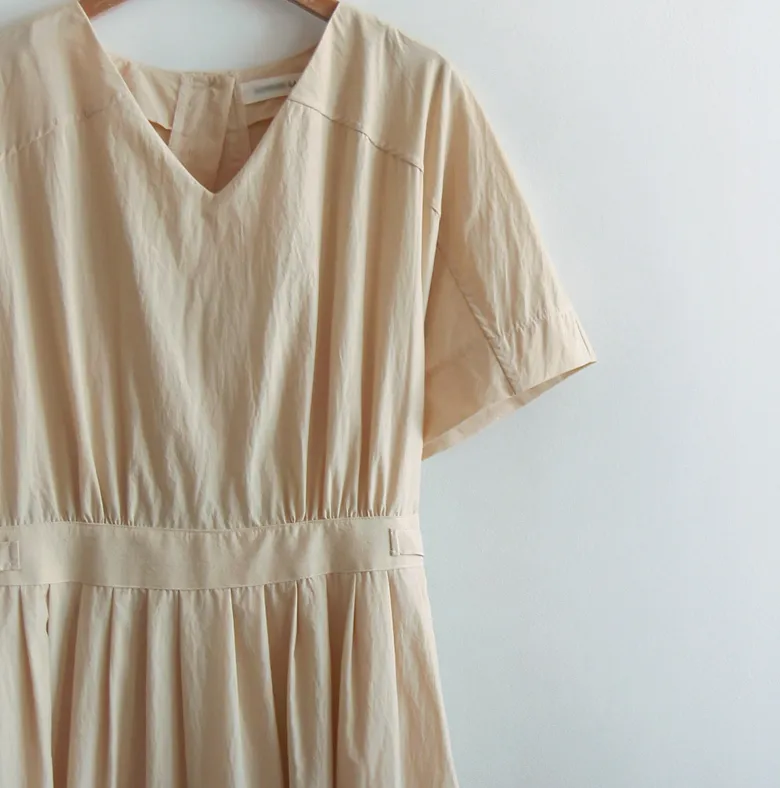 【含有35%尼龍,略沙沙的材質,適合夏天】【後背拉鍊配置】【腰部可透過扣環調整貼合身體】【後頸扣:可開閉】【背影漂亮的連身裙,優雅地穿著到仲夏] [腰部D 型環扣:可調式腰部] [腰部有細褶,打造豐盈修身效果]