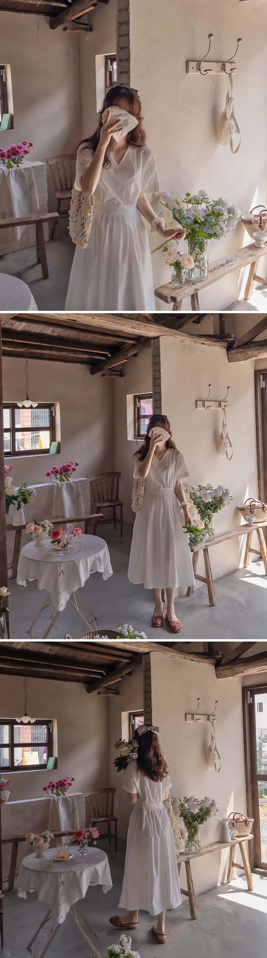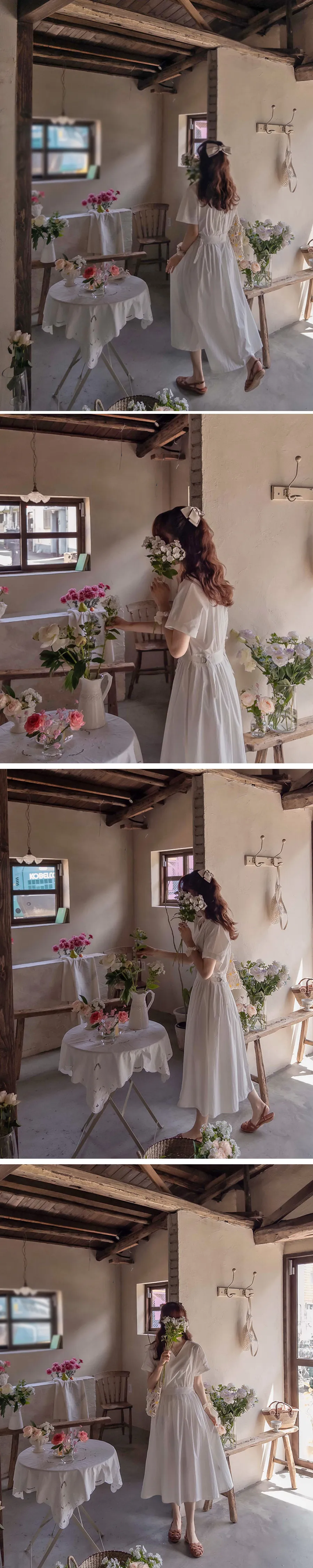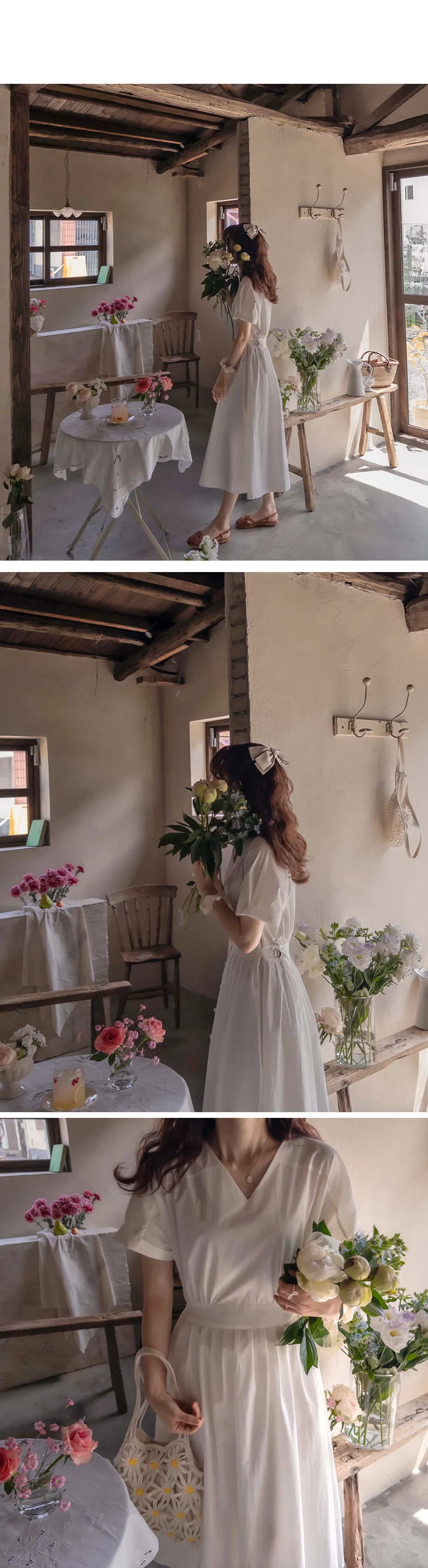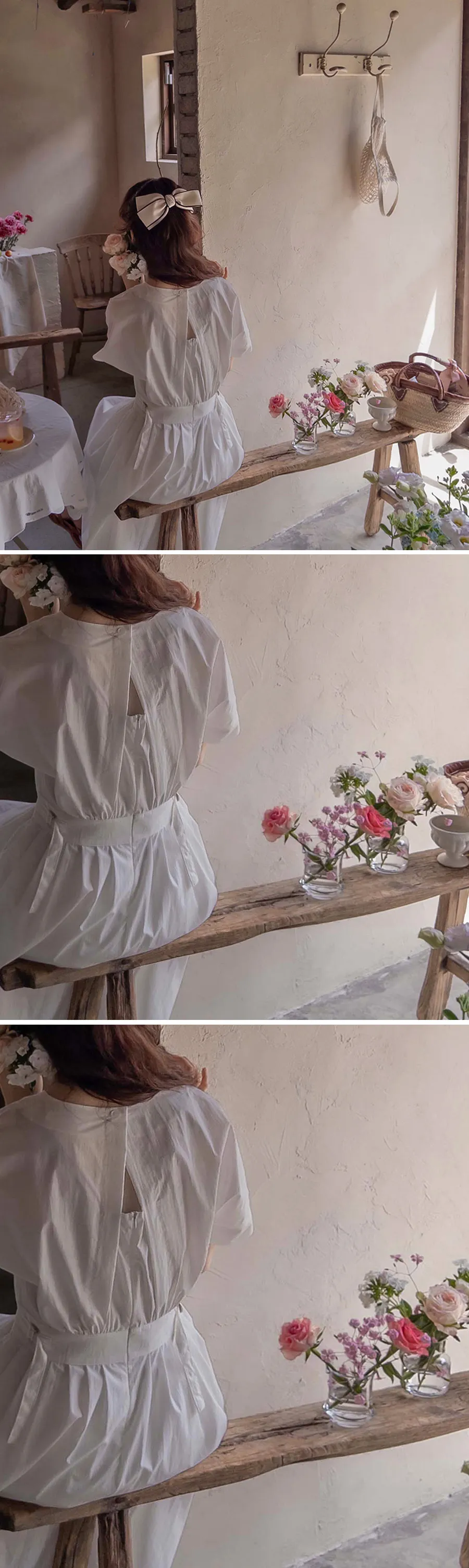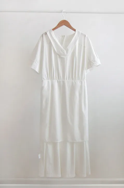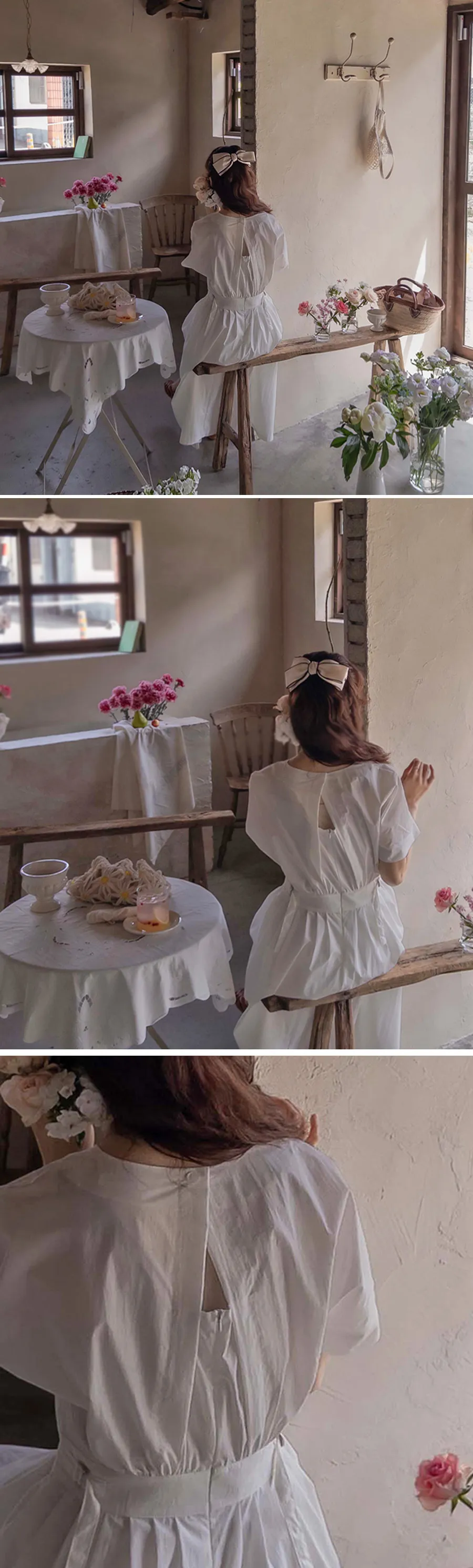 【含有35%尼龍,略沙沙的材質,適合夏天】【後背拉鍊配置】【腰部可透過扣環調整貼合身體】【後頸扣:可開閉】【背影漂亮的連身裙,優雅地穿著到仲夏] [腰部D 型環扣:可調式腰部] [腰部有細褶,打造豐盈修身效果]