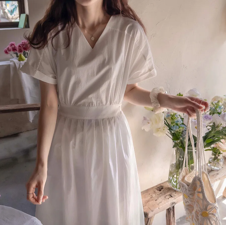 優雅後扣鏤空設計腰扣可調細摺裙擺連身裙