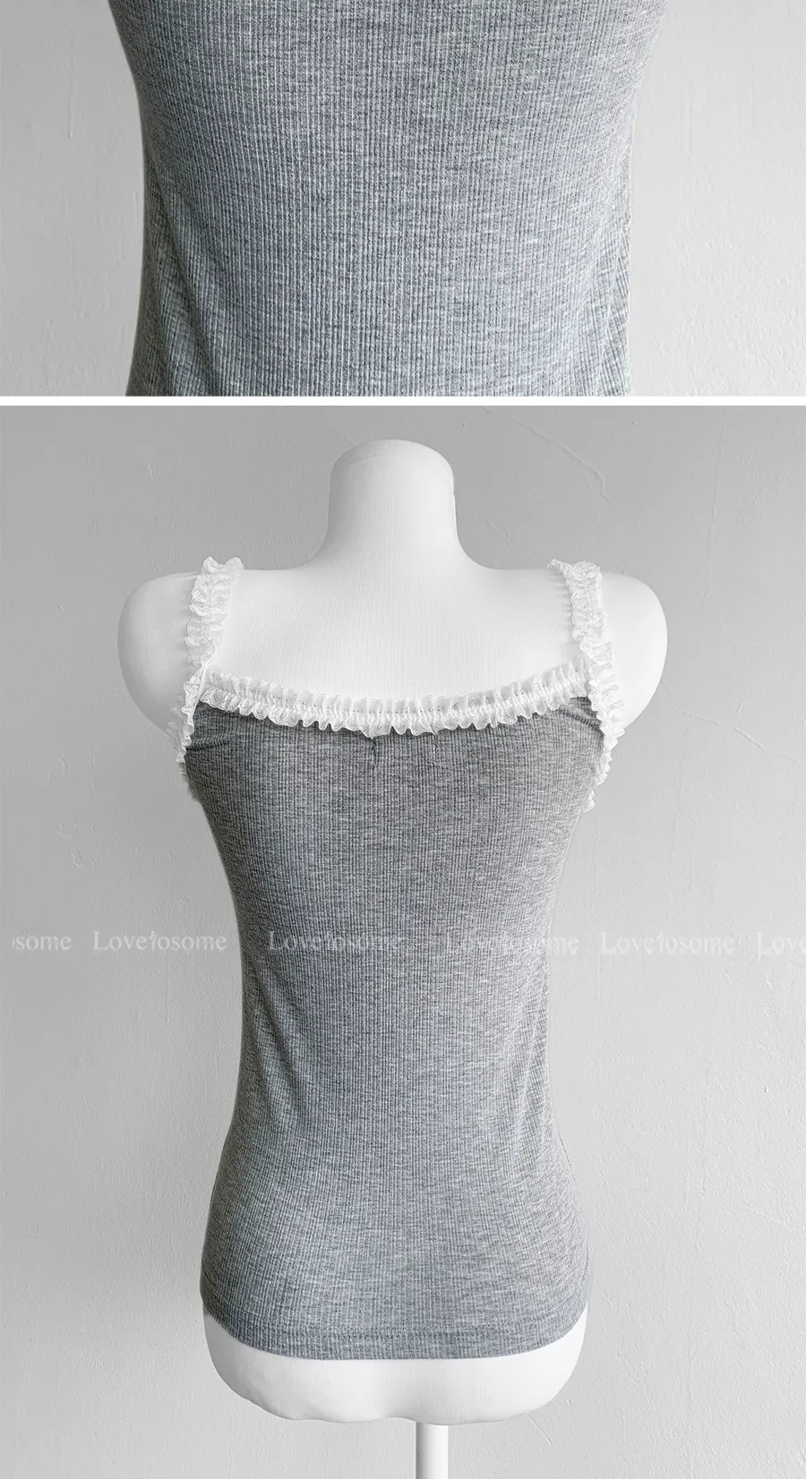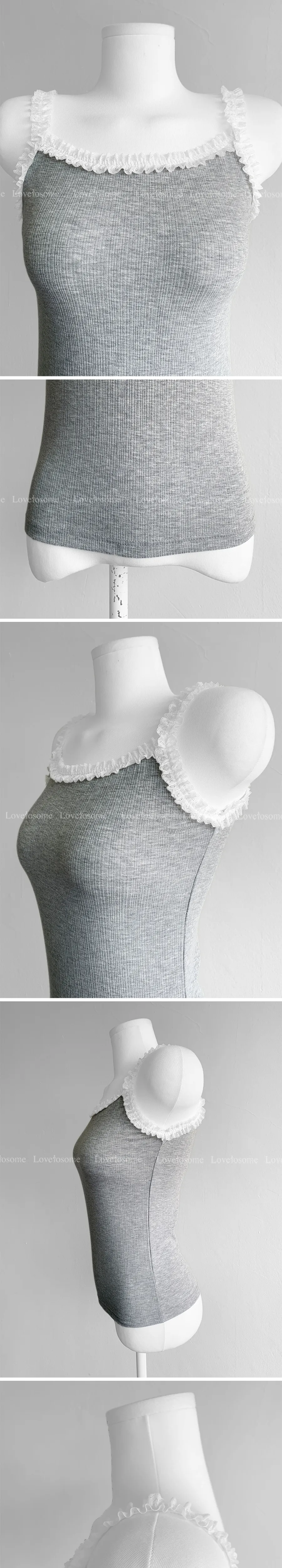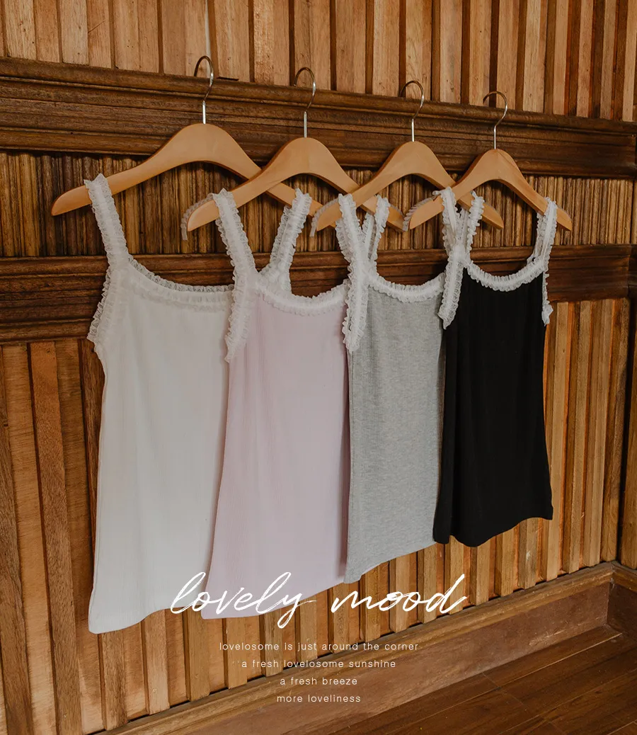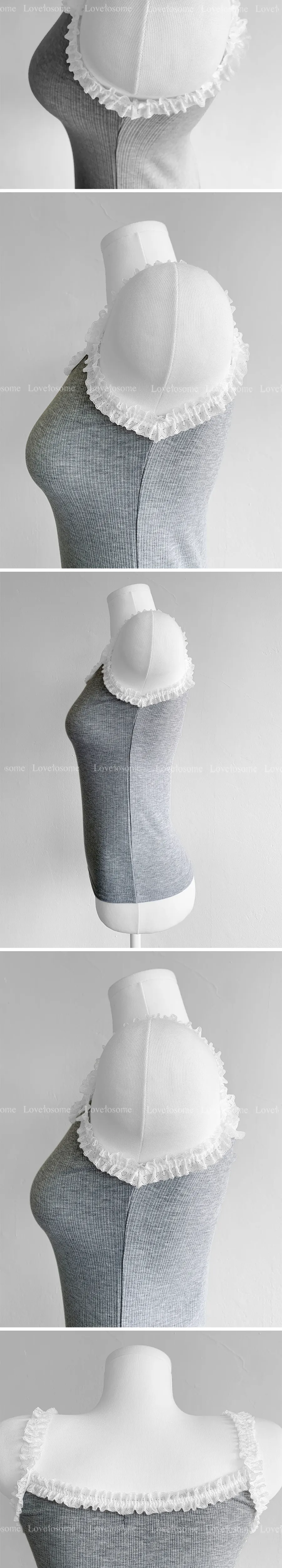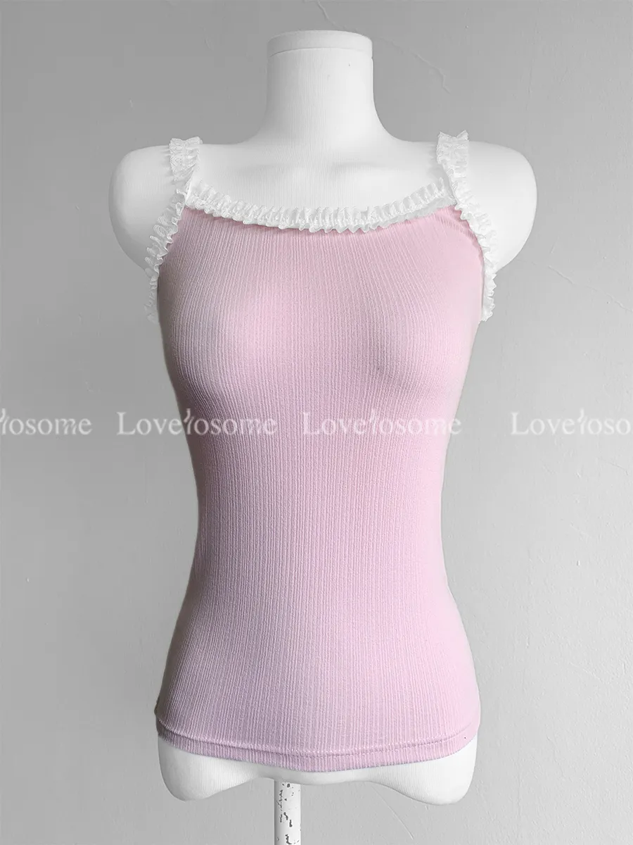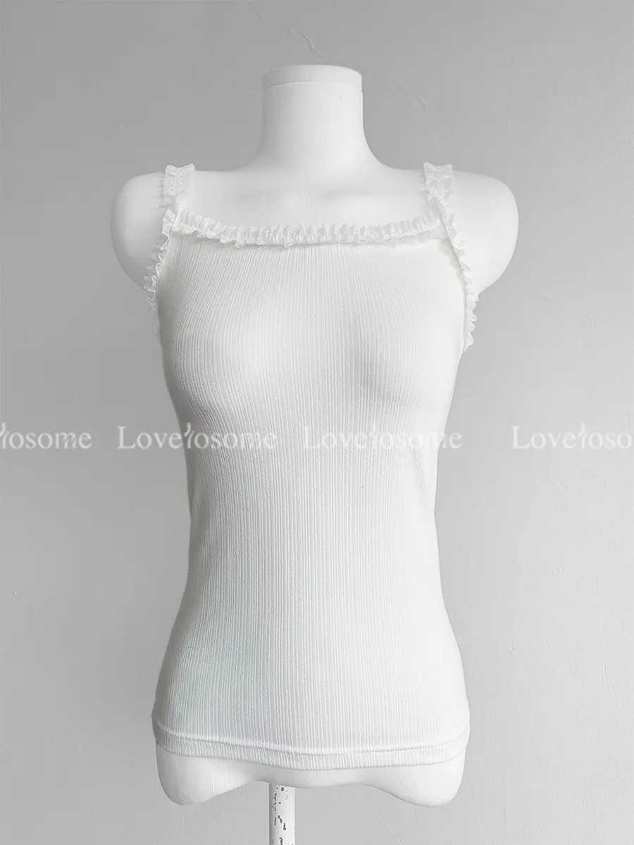 浪漫蕾絲摺邊柔軟修身無袖小背心