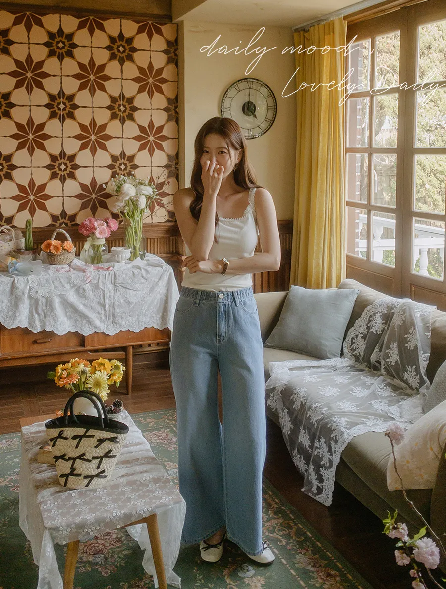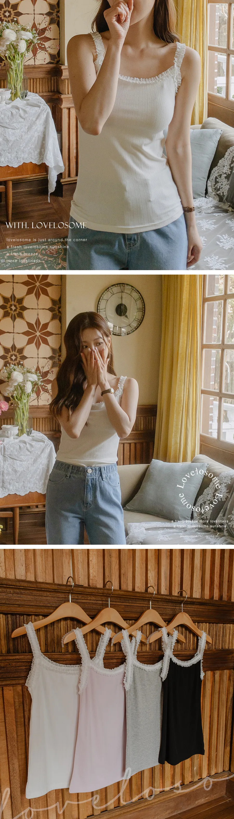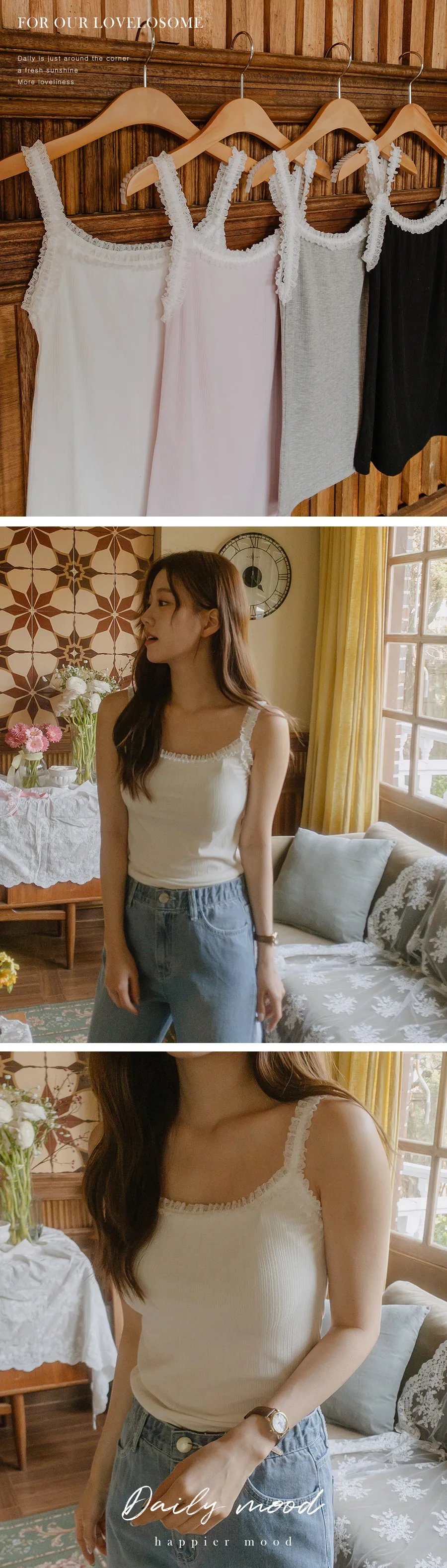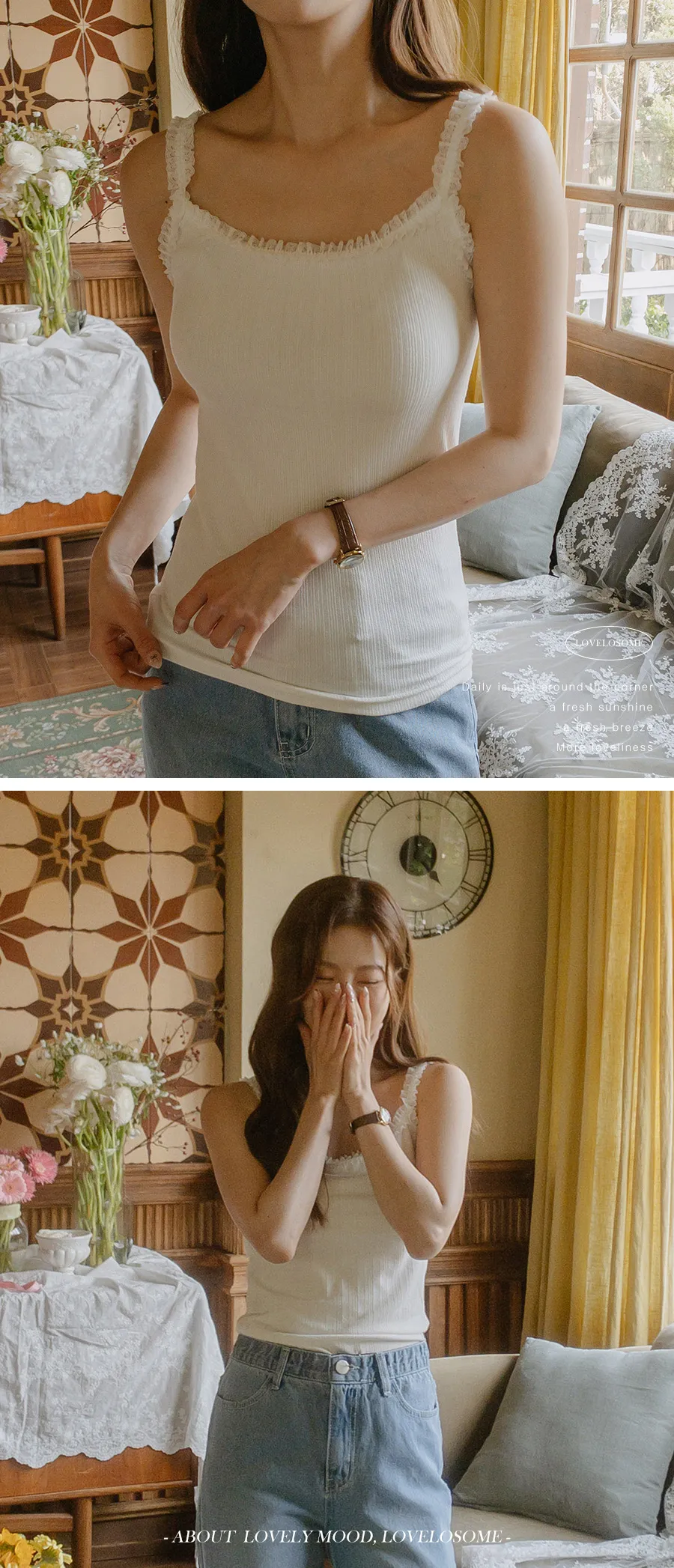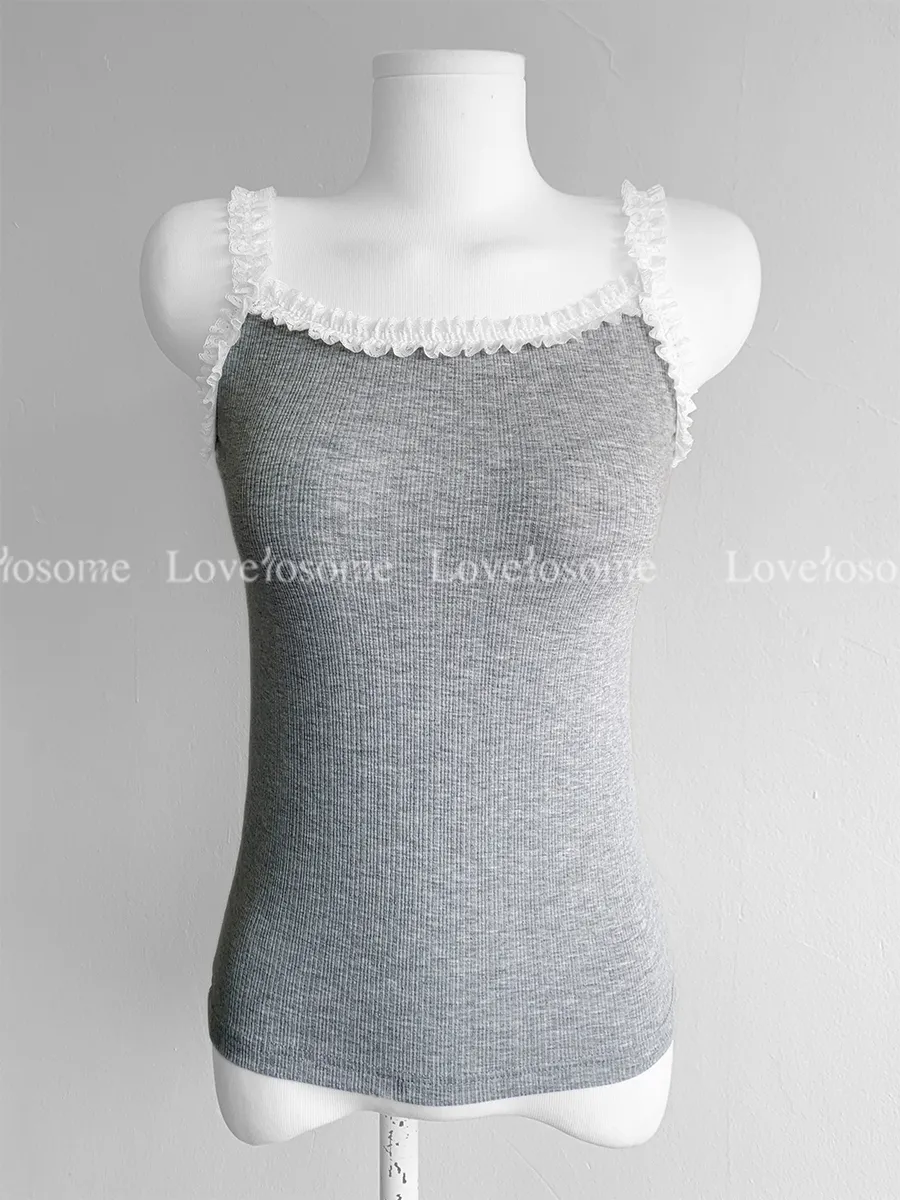 浪漫蕾絲摺邊柔軟修身無袖小背心