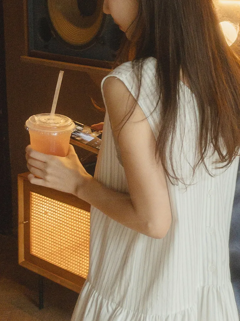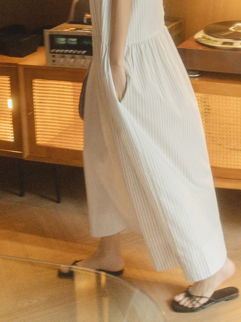 夏季度假裝扮的連身裙:) 正面或背面都可以穿,是非常值得推薦的百搭單品。 採用100%純棉製成,穿著舒適。 前線設計工整,圓領口舒適。 遮蓋了整體的身體線條,穿著舒適。 是腰線稍低的設計。 通過微妙的褶皺點保持了整體平衡。