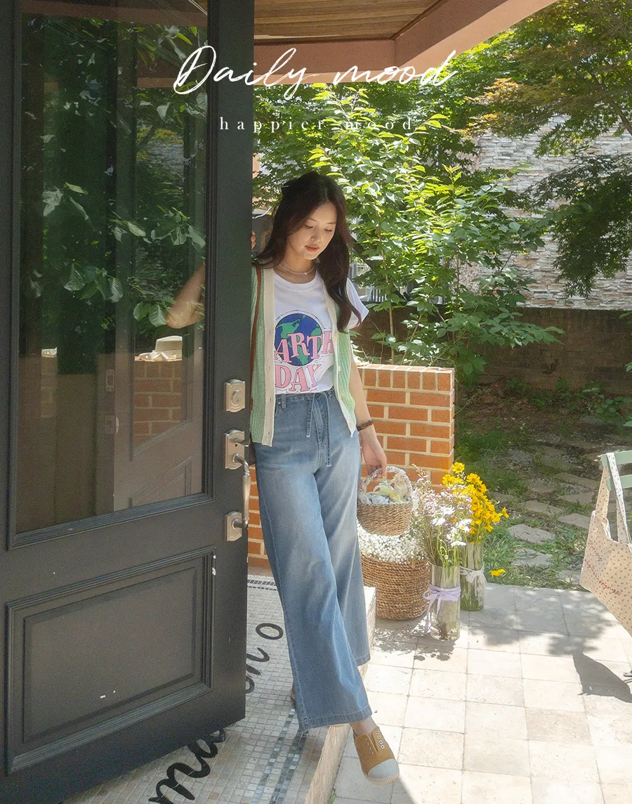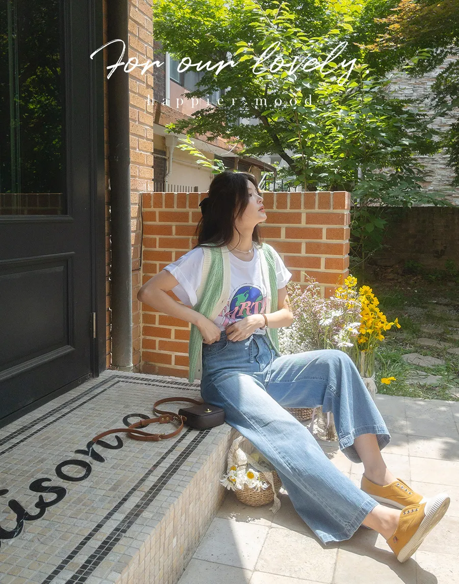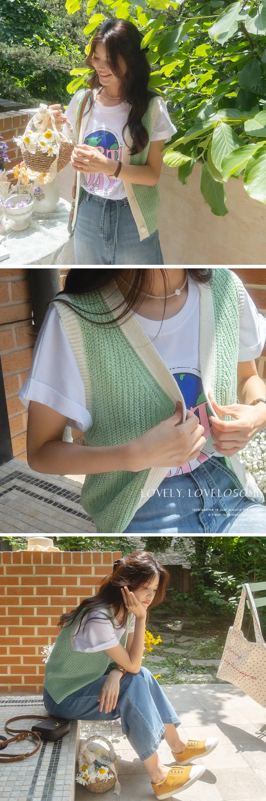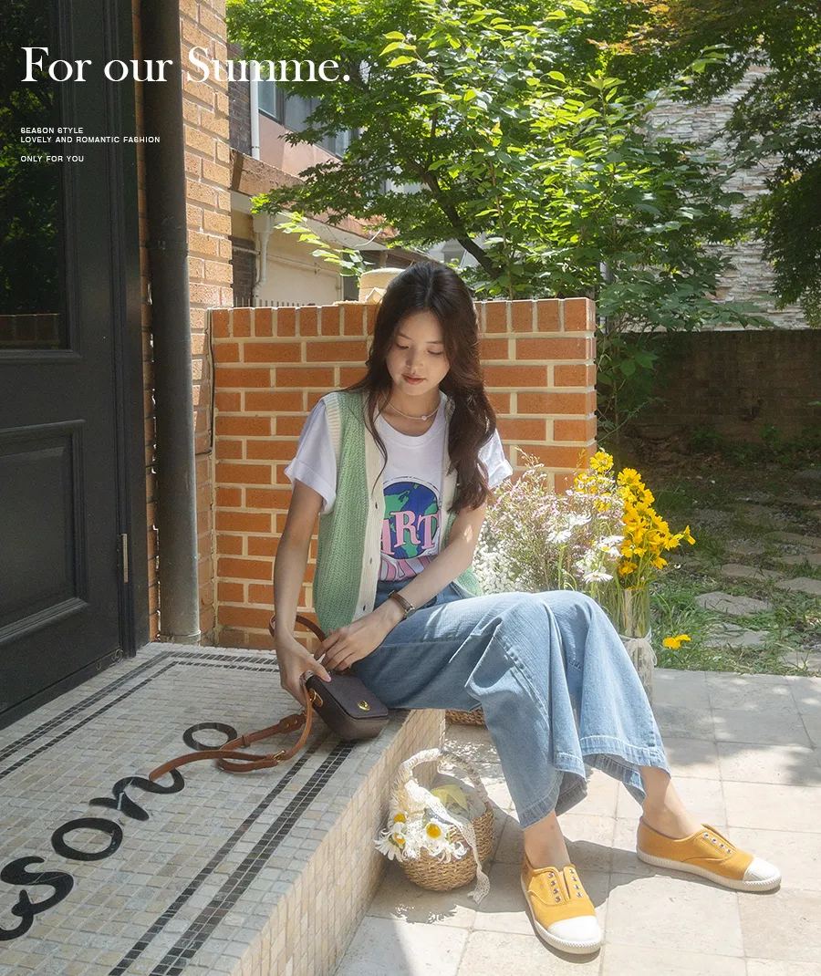 時尚氣息捲袖設計地球字母印花短袖上衣