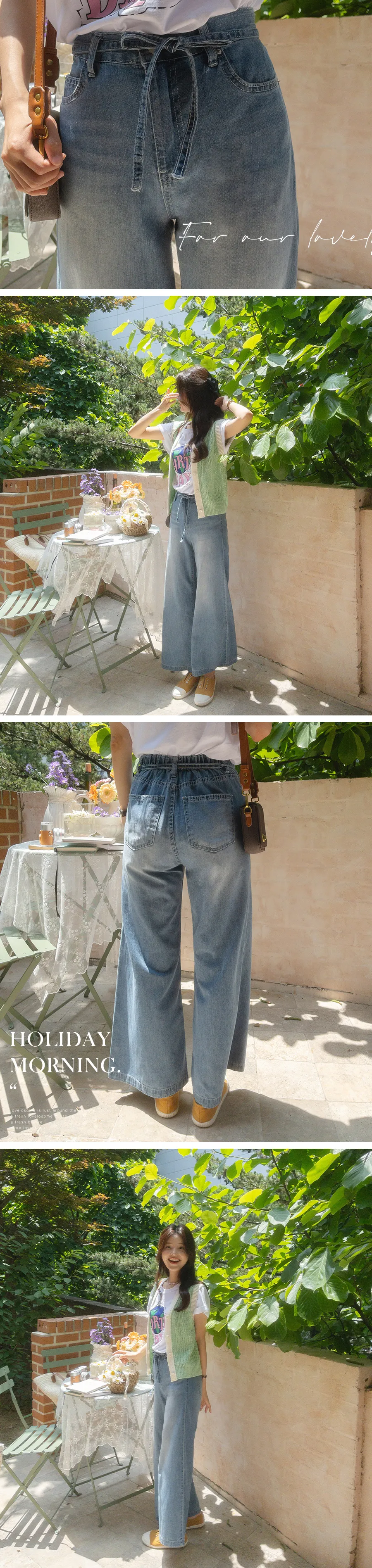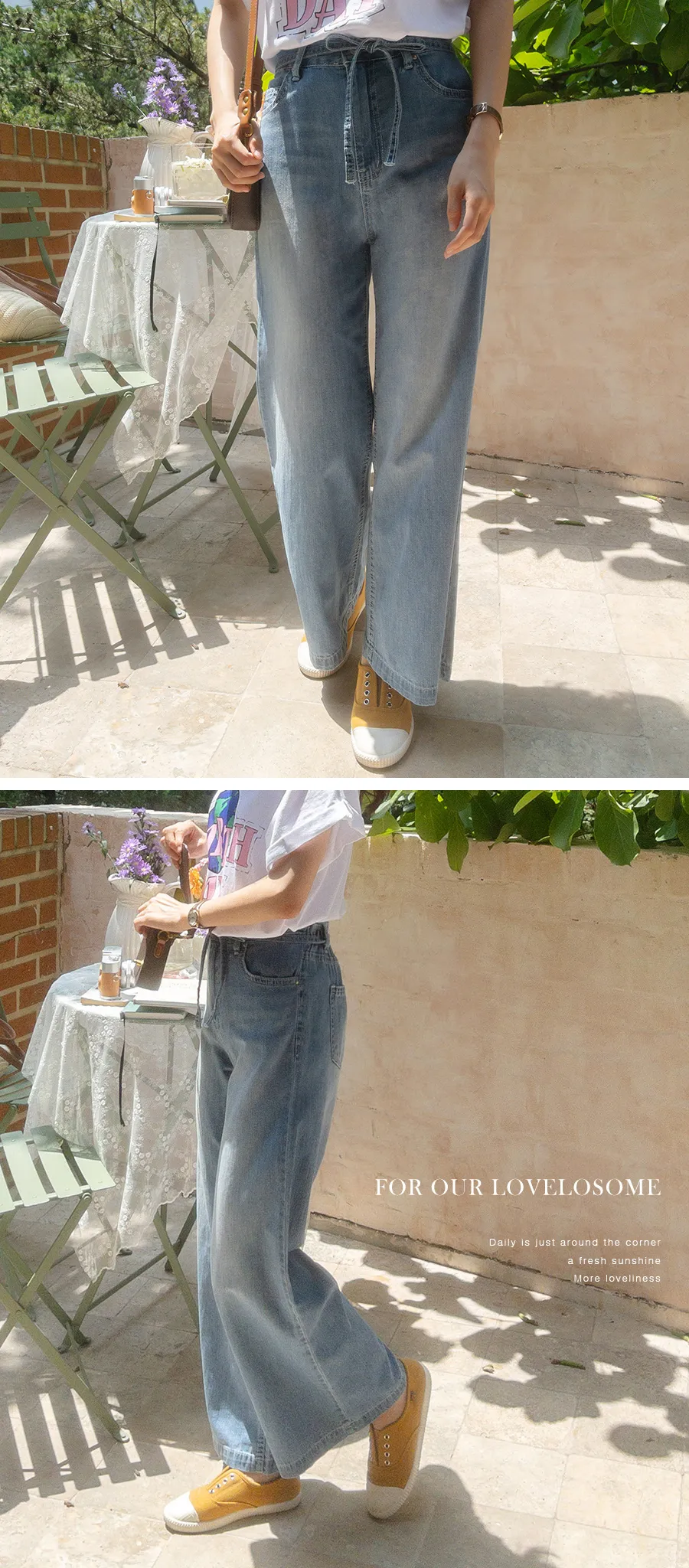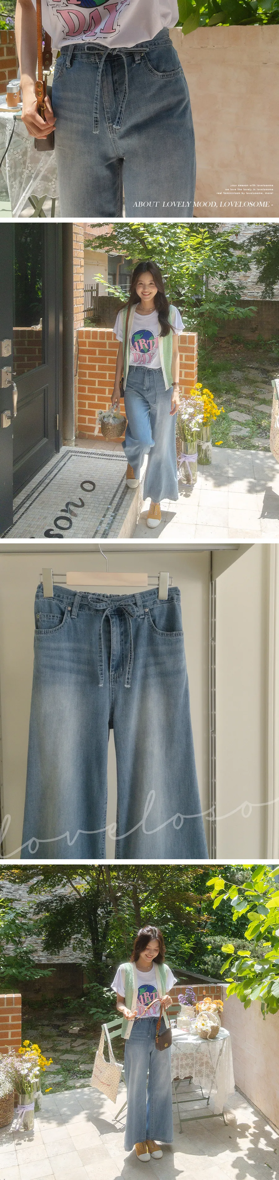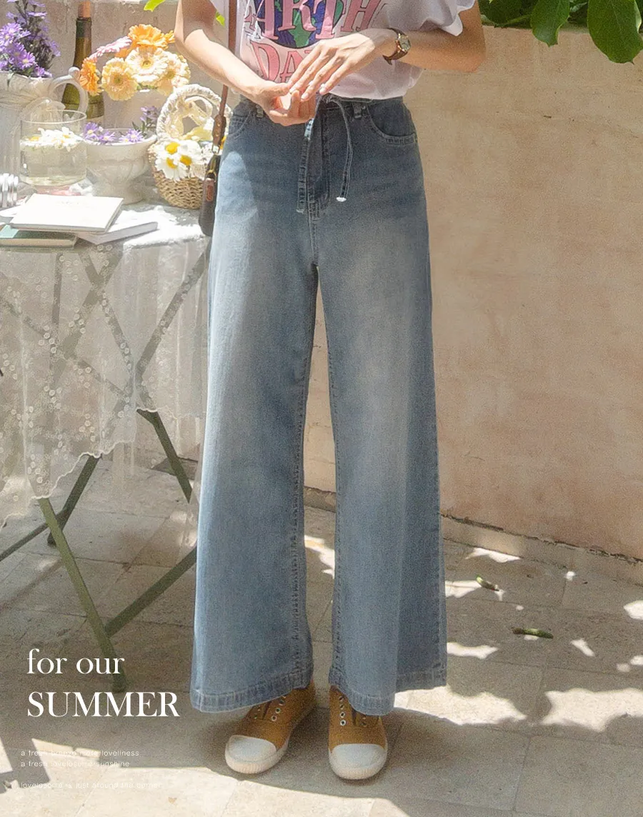 【寬大舒適】【後背飾帶設計】【涼爽材質牛仔褲】【水洗細節舒適心情~】