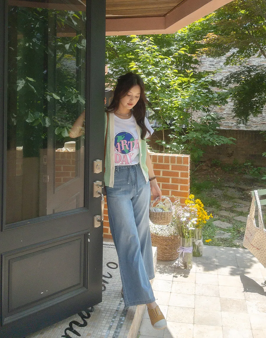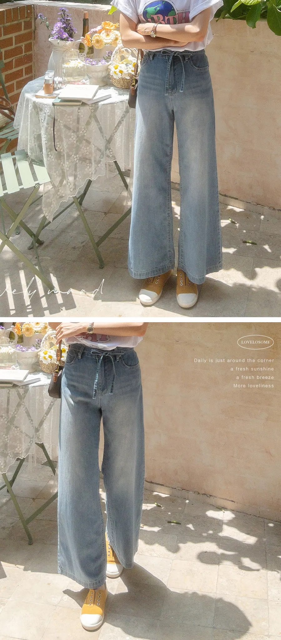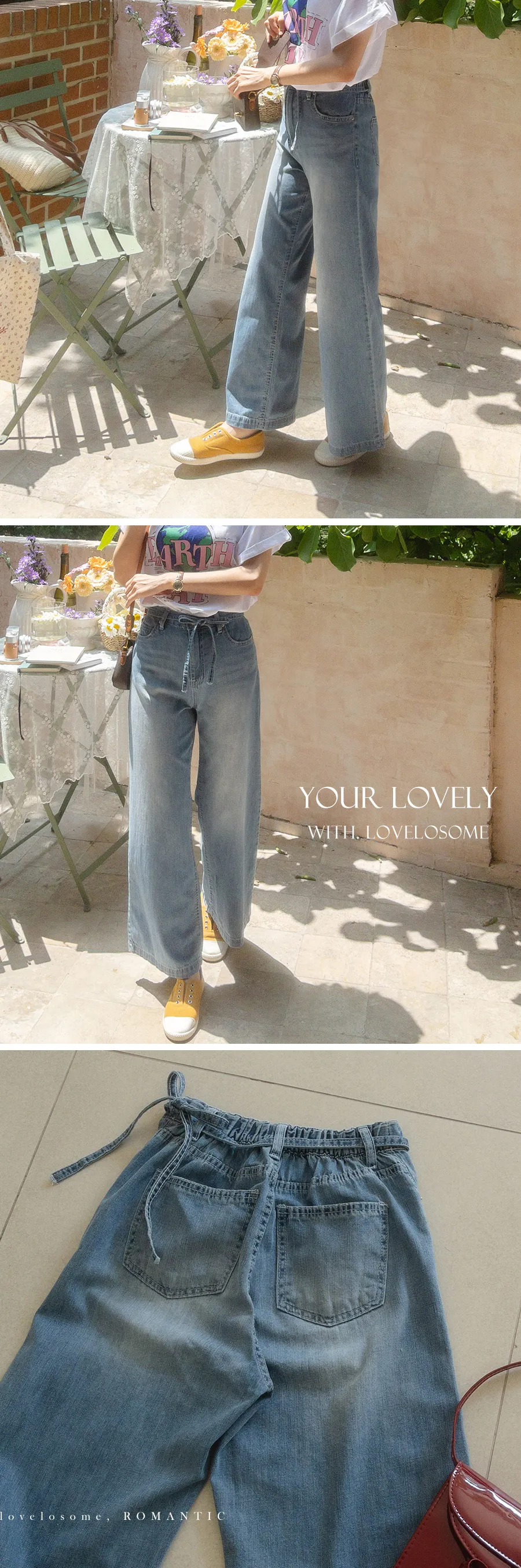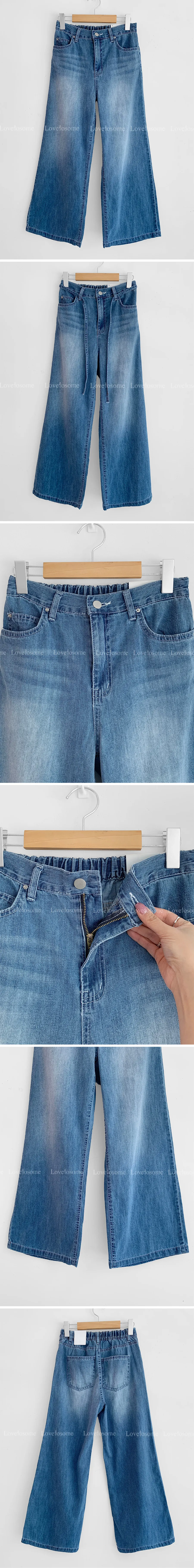 【寬大舒適】【後背飾帶設計】【涼爽材質牛仔褲】【水洗細節舒適心情~】