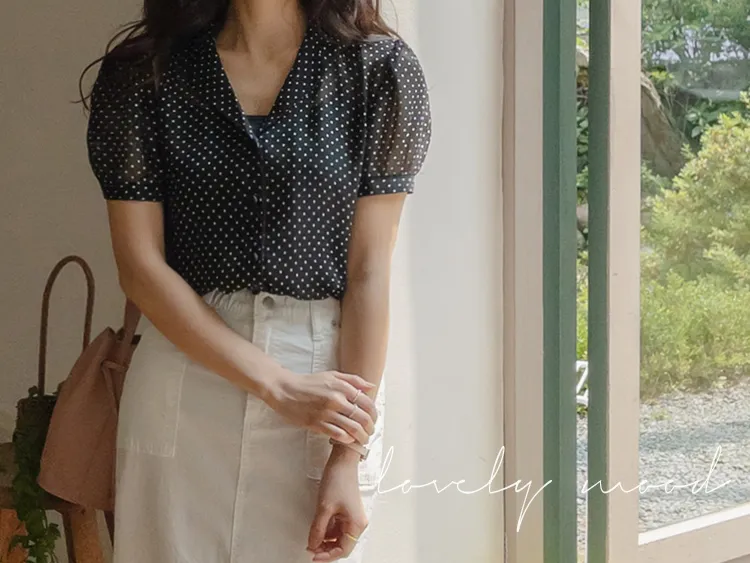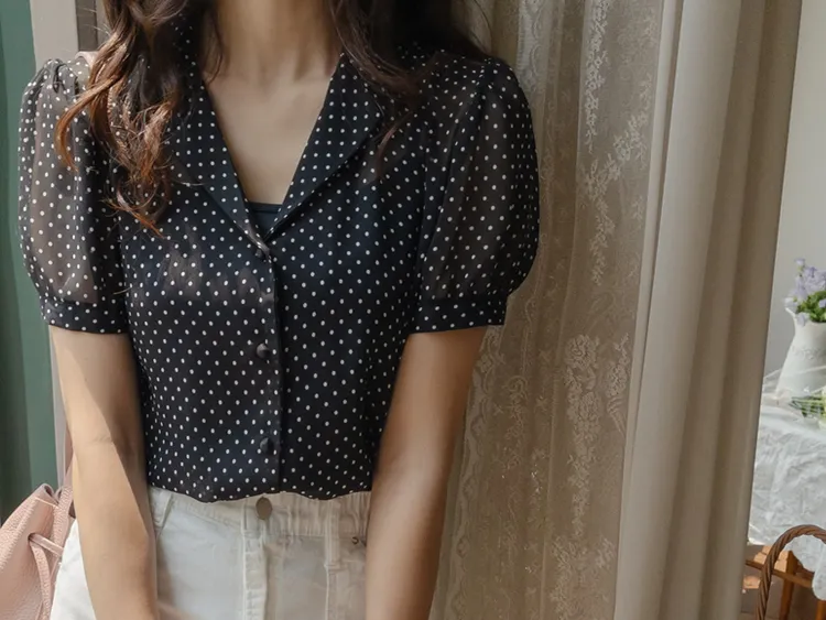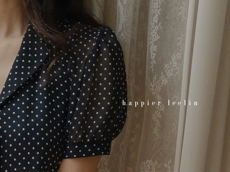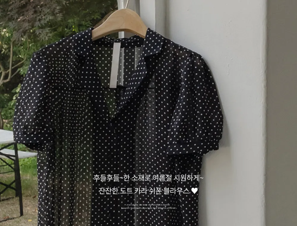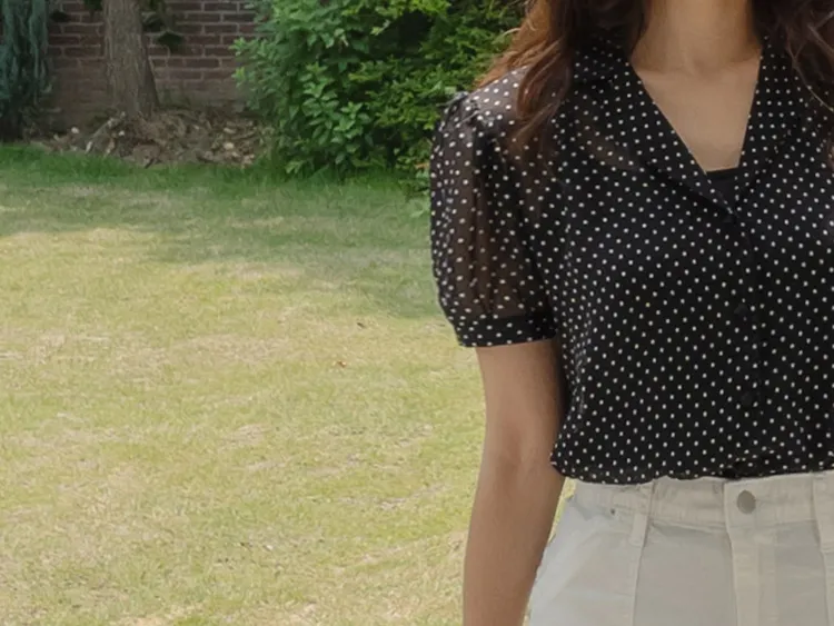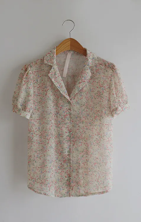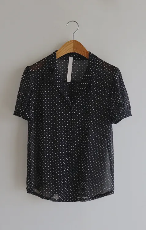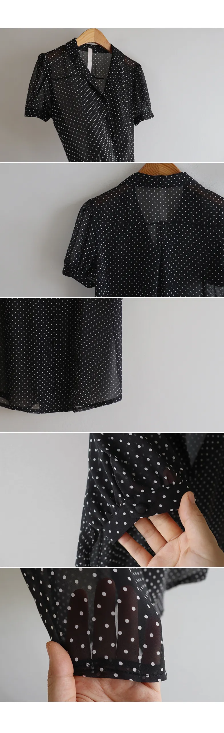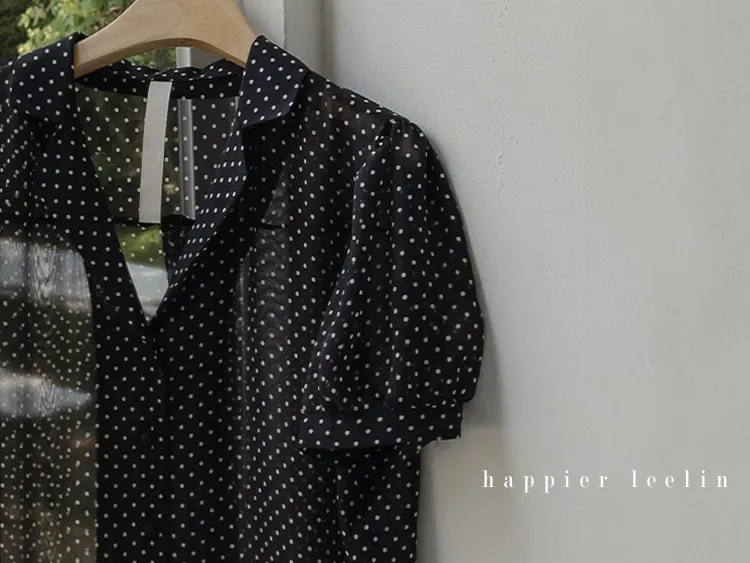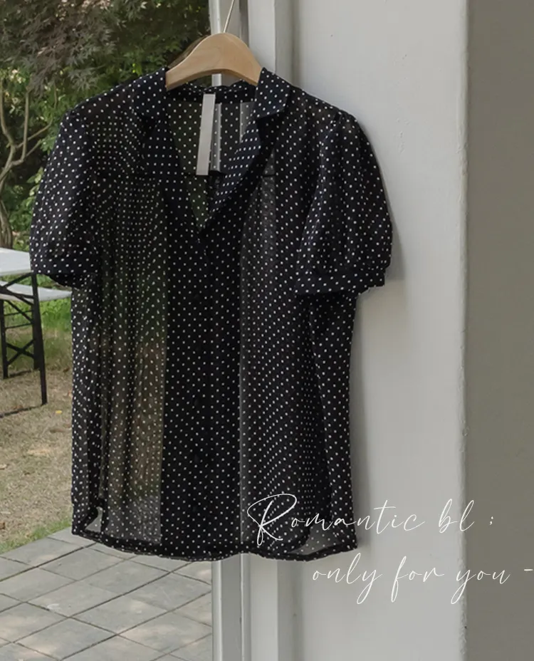 【柔軟圓點領雪紡排扣上衣♥】【蓬鬆材質,夏日清涼】【透明透視材質! 】【有兩種圓點/小花朵圖案~】】