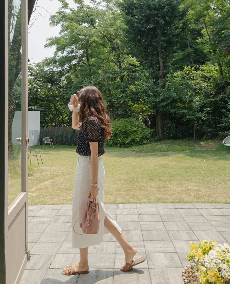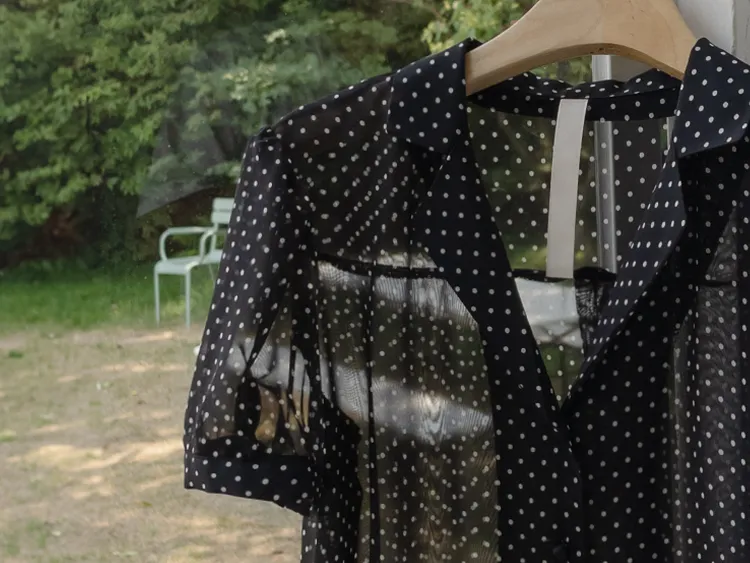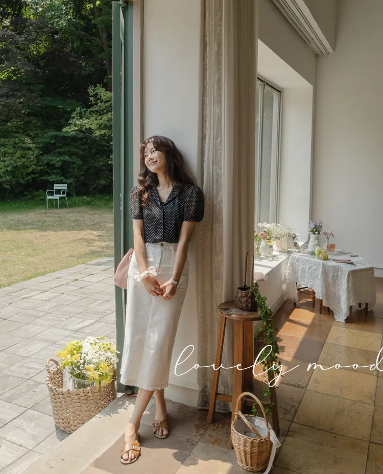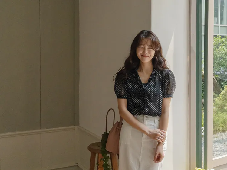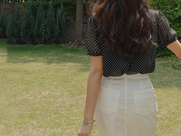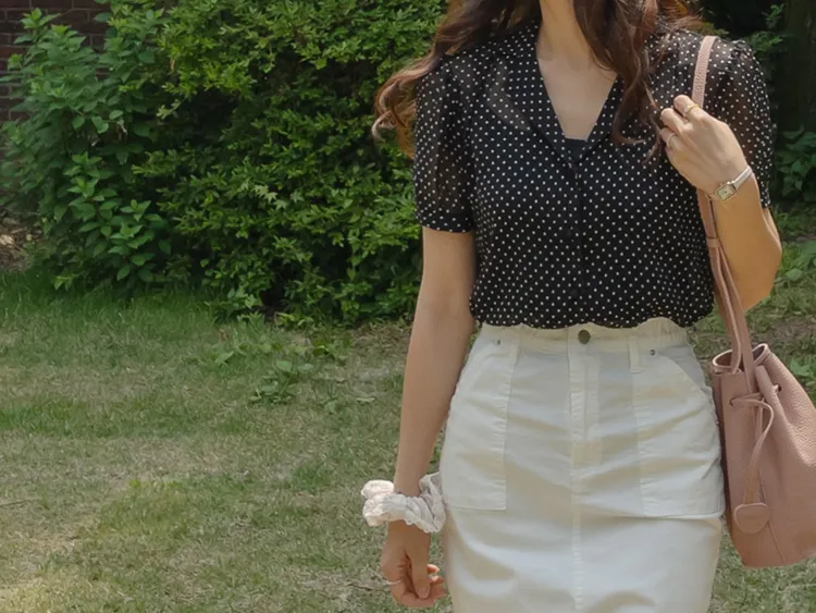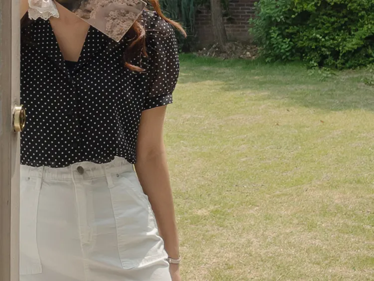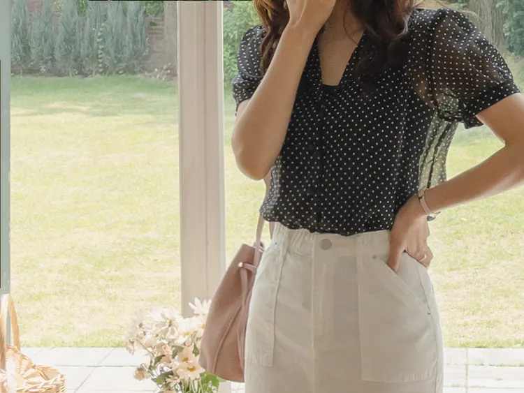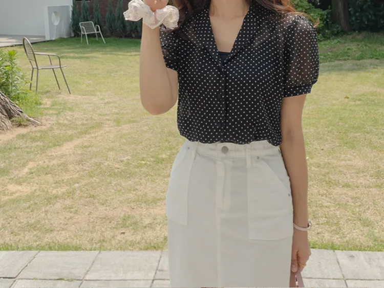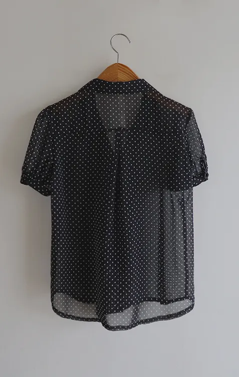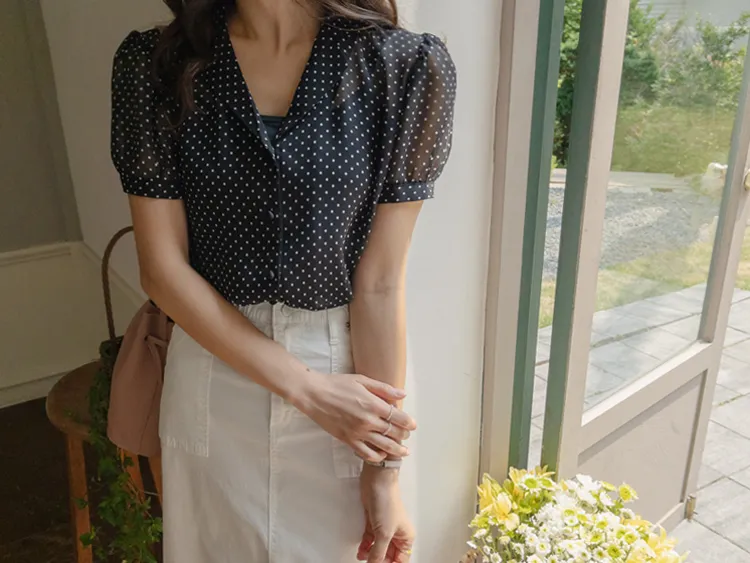 【柔軟圓點領雪紡排扣上衣♥】【蓬鬆材質,夏日清涼】【透明透視材質! 】【有兩種圓點/小花朵圖案~】】