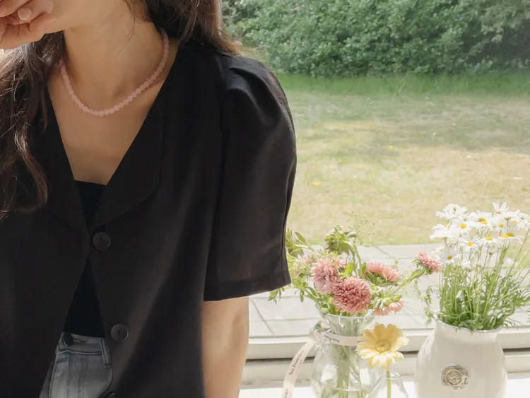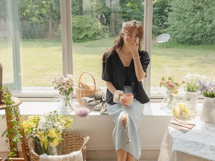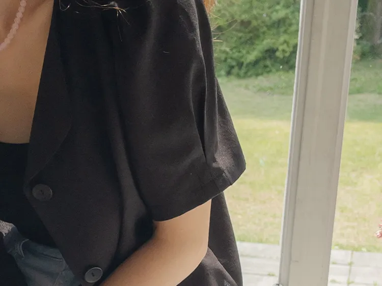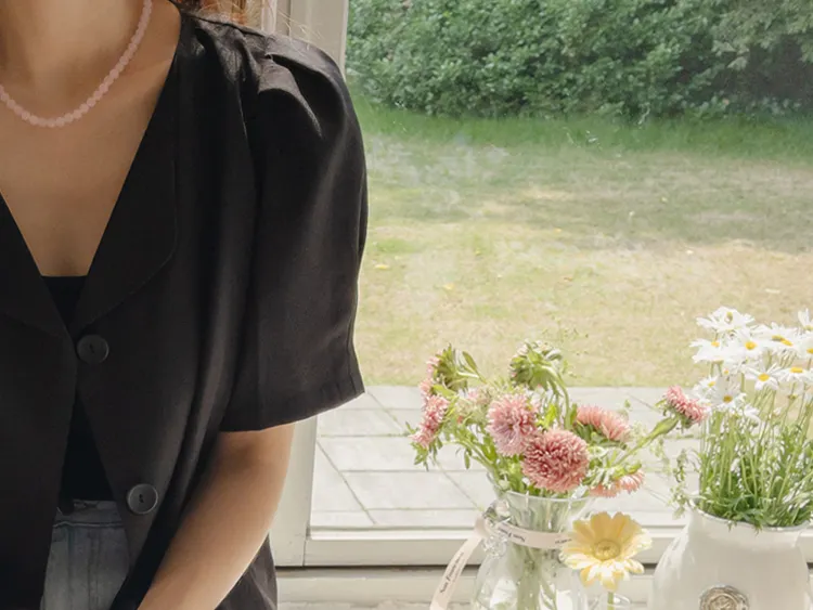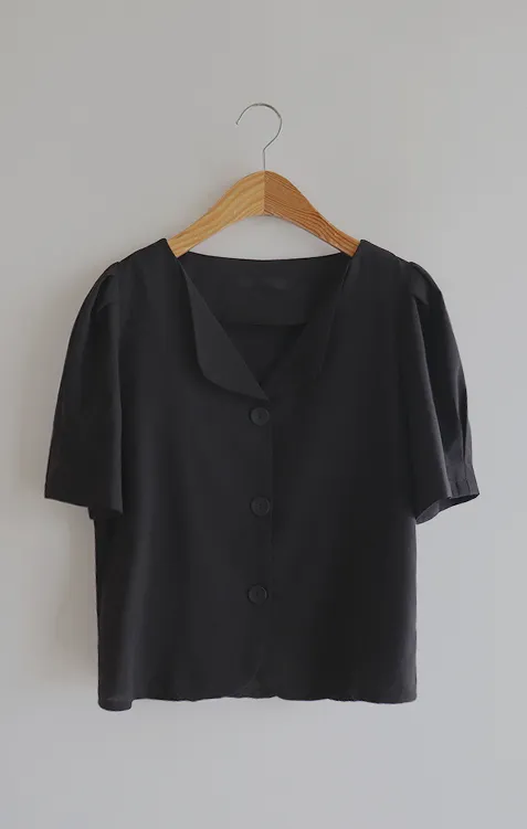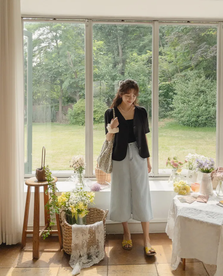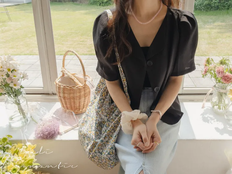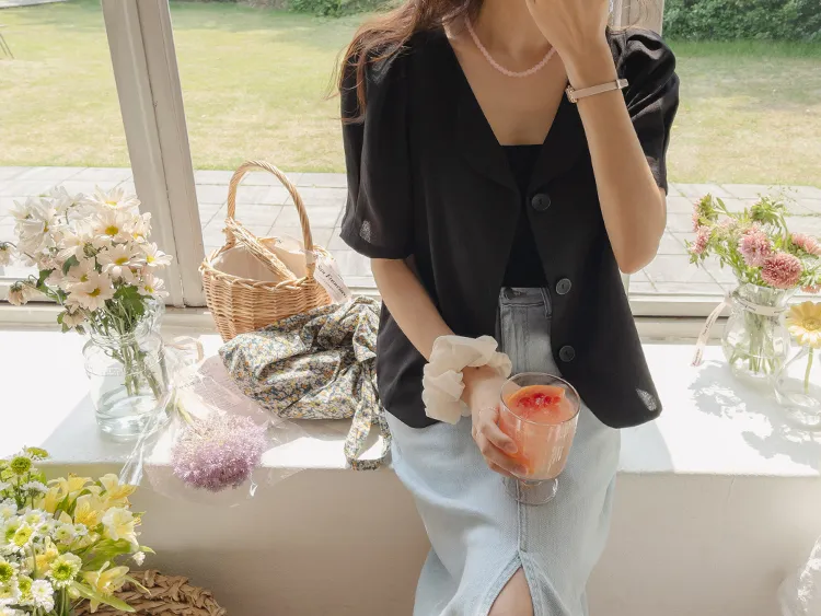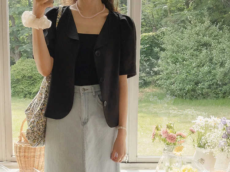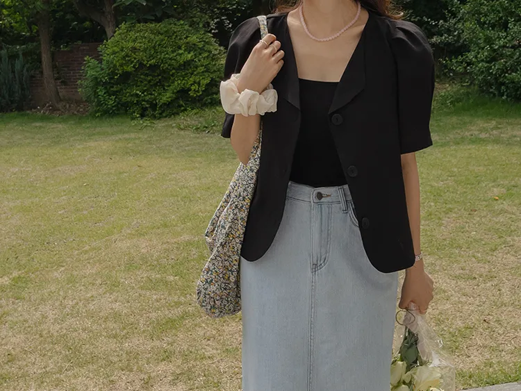 可愛優雅蓬鬆線條肩袖剪裁排扣外套上衣