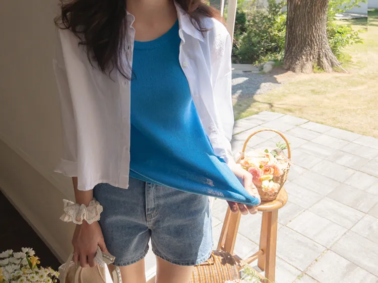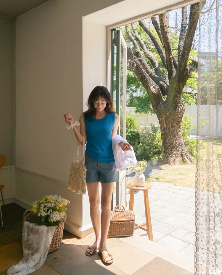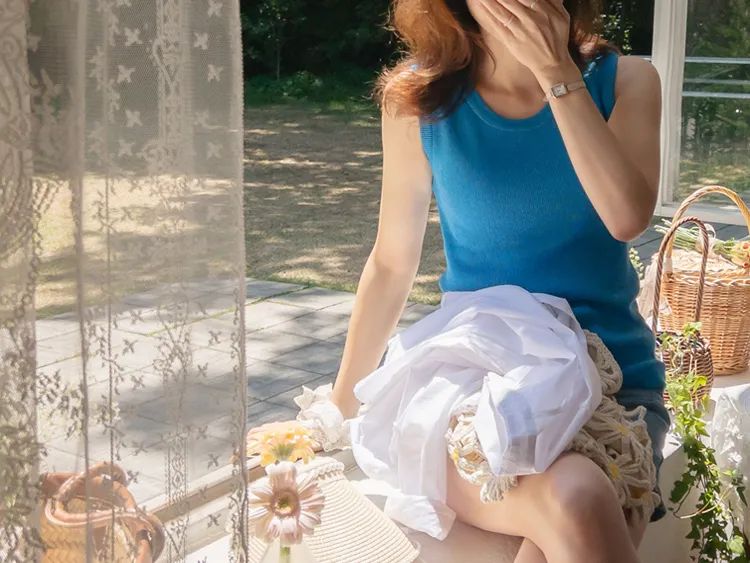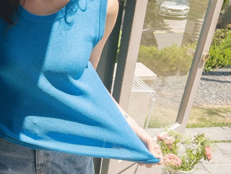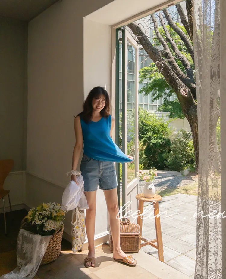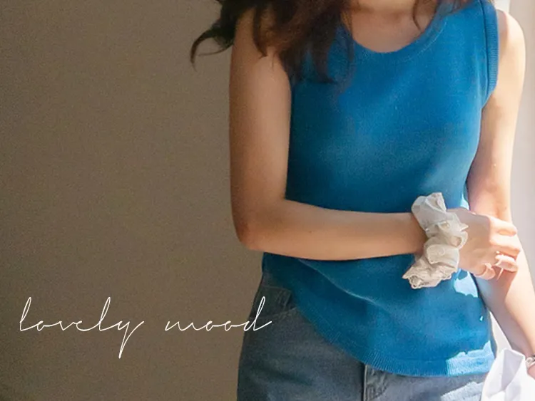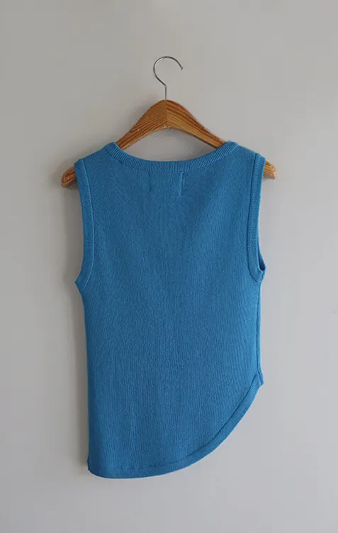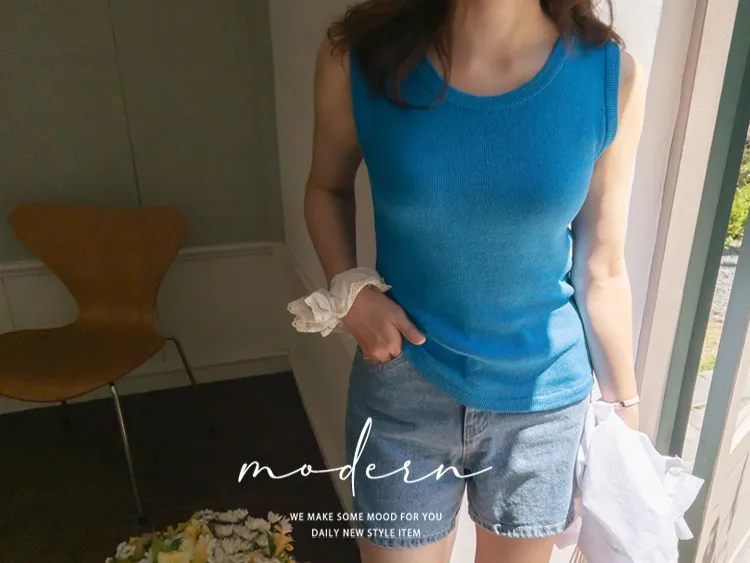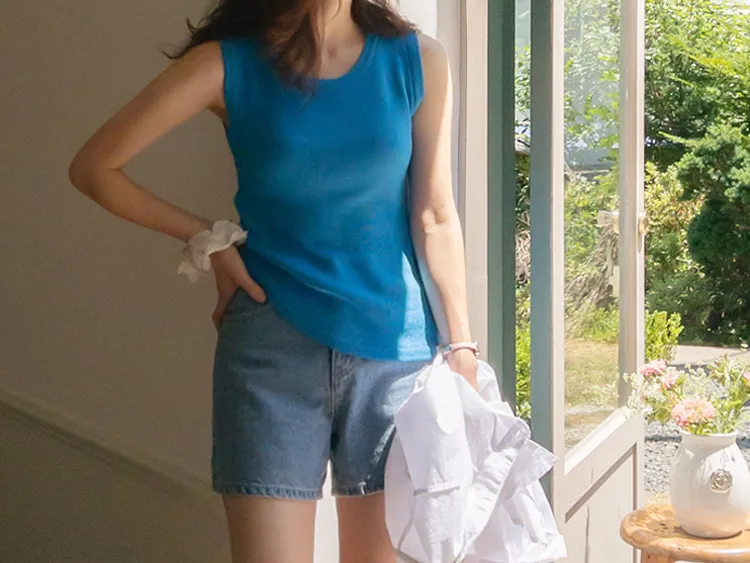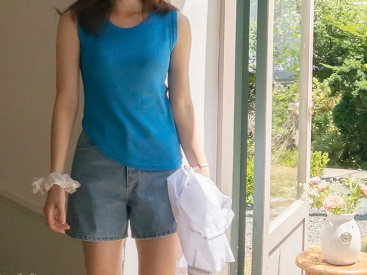 [亞麻背心,時尚的長度♥][微妙的垂直羅紋!!][身體線條看起來苗條的效果~][亞麻25%,夏天舒適涼爽-]