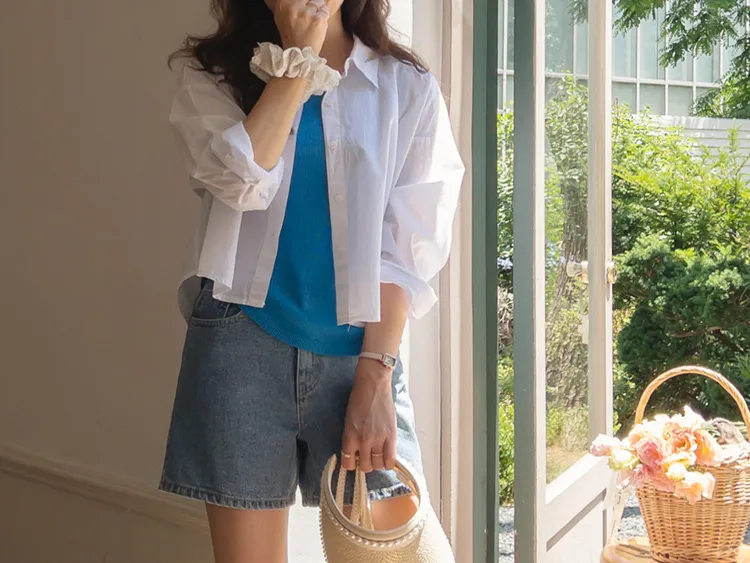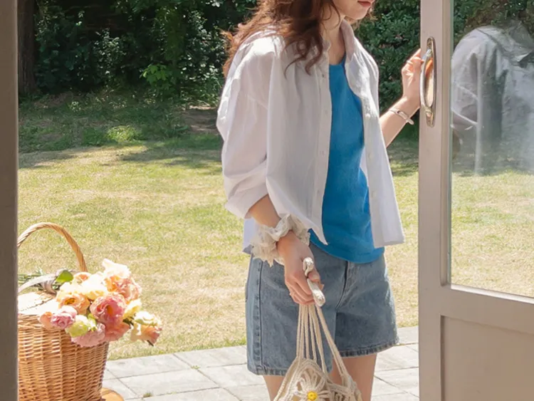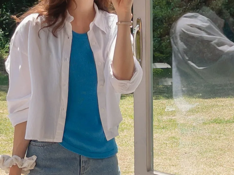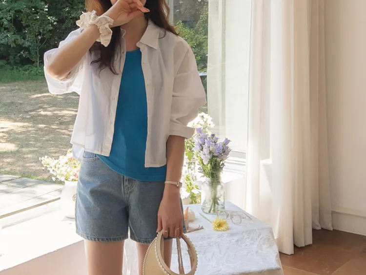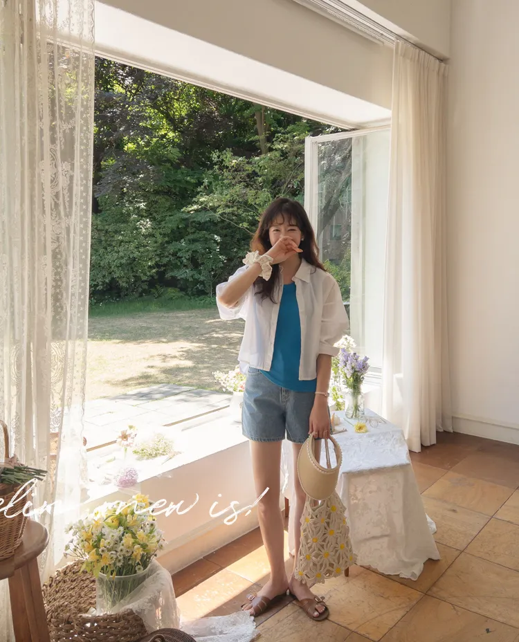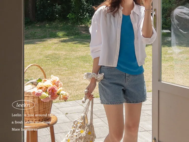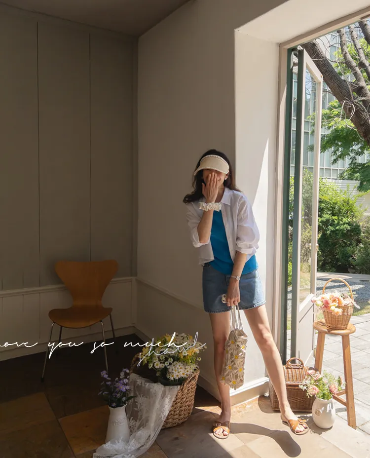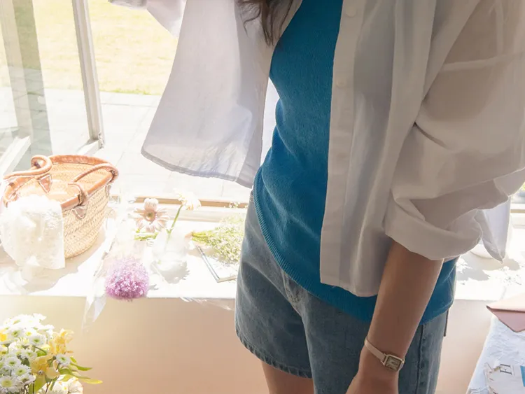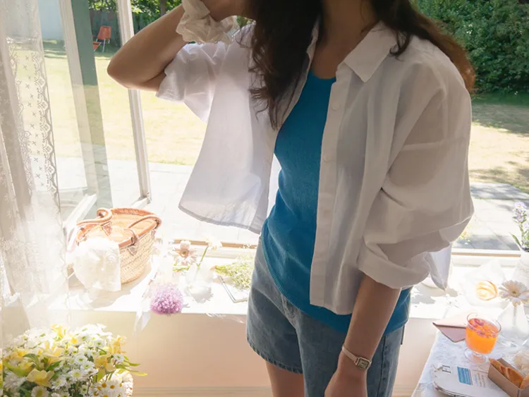 [亞麻背心,時尚的長度♥][微妙的垂直羅紋!!][身體線條看起來苗條的效果~][亞麻25%,夏天舒適涼爽-]