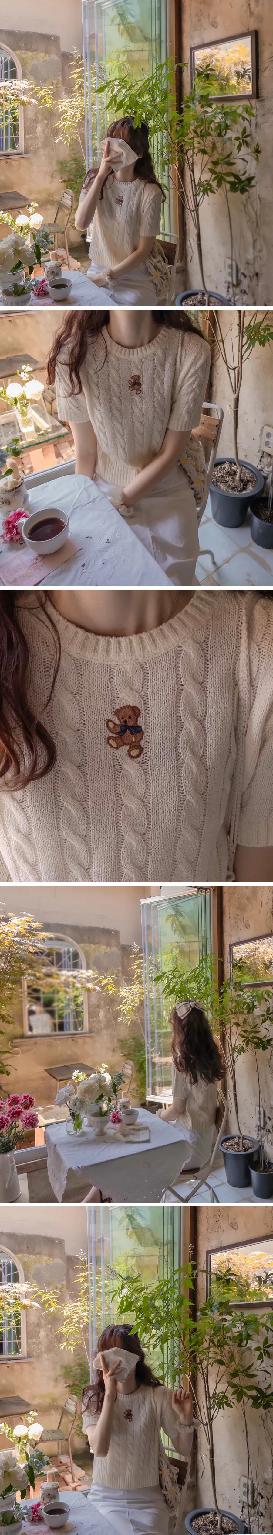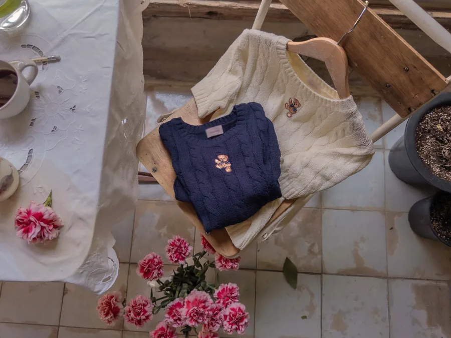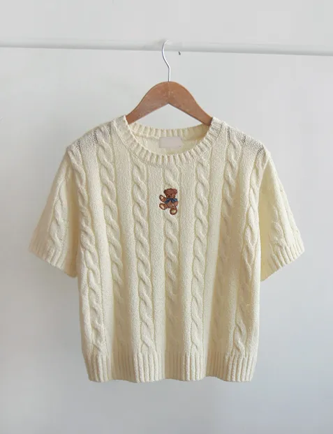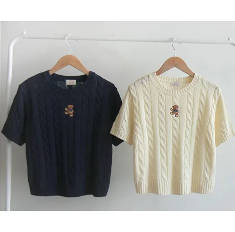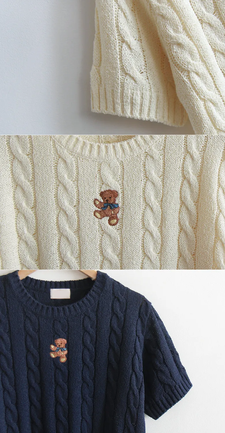[非常有吸引力的扭紋圖案設計] [可愛的小熊刺繡] [針織時尚合身] [圓領設計,優雅迷人] [推薦這款針織,顏色精緻,非常適合明亮時尚的穿著。