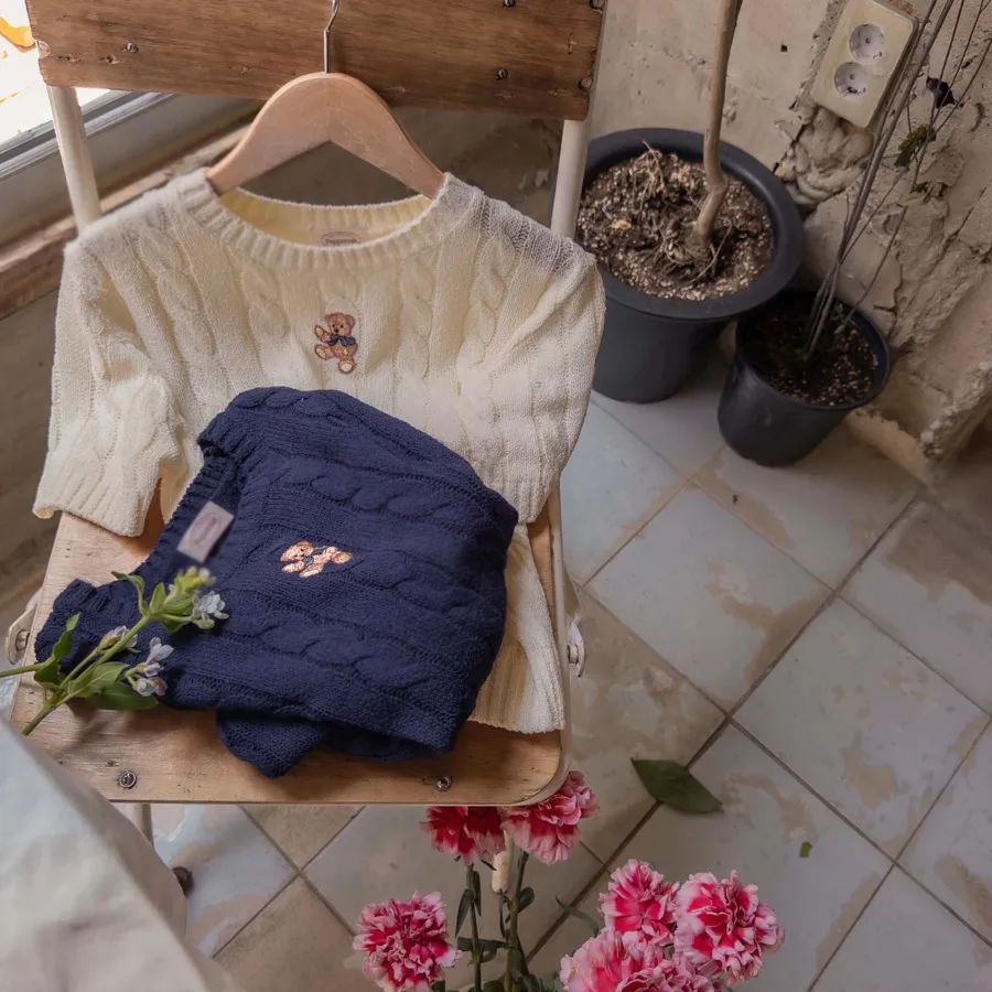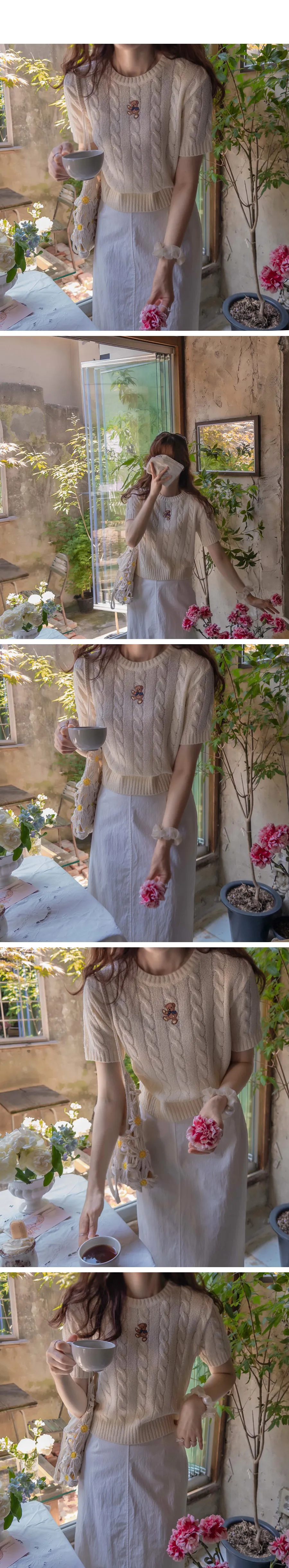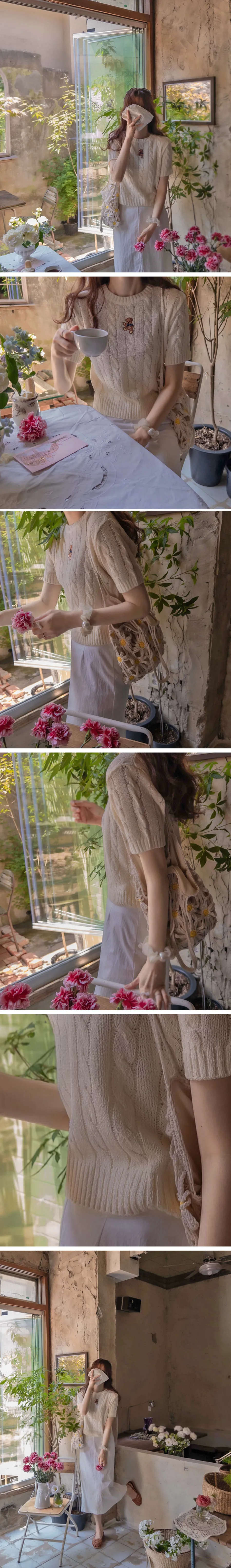 [非常有吸引力的扭紋圖案設計] [可愛的小熊刺繡] [針織時尚合身] [圓領設計,優雅迷人] [推薦這款針織,顏色精緻,非常適合明亮時尚的穿著。
