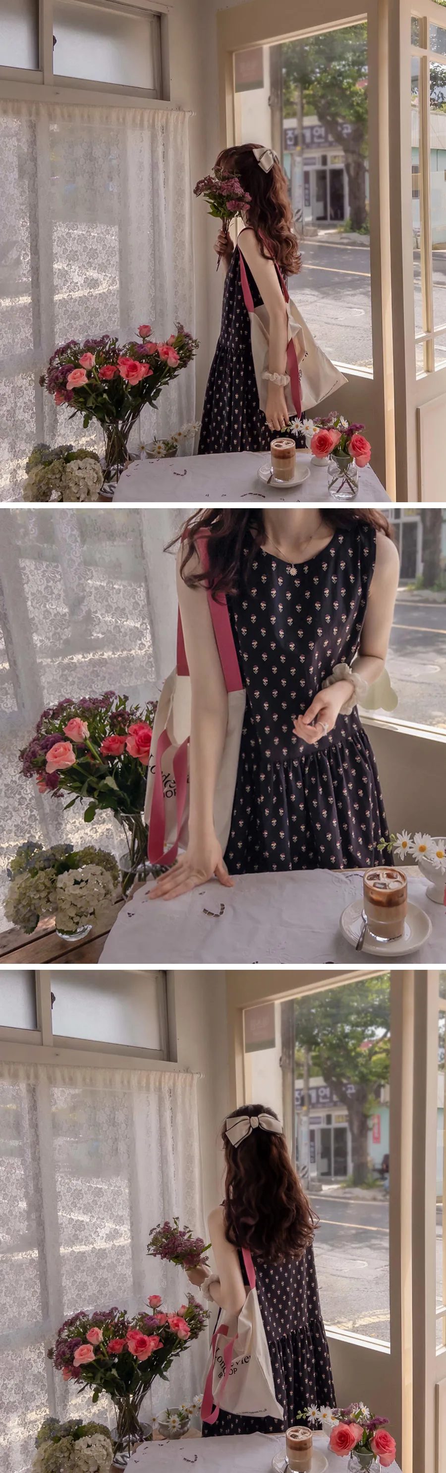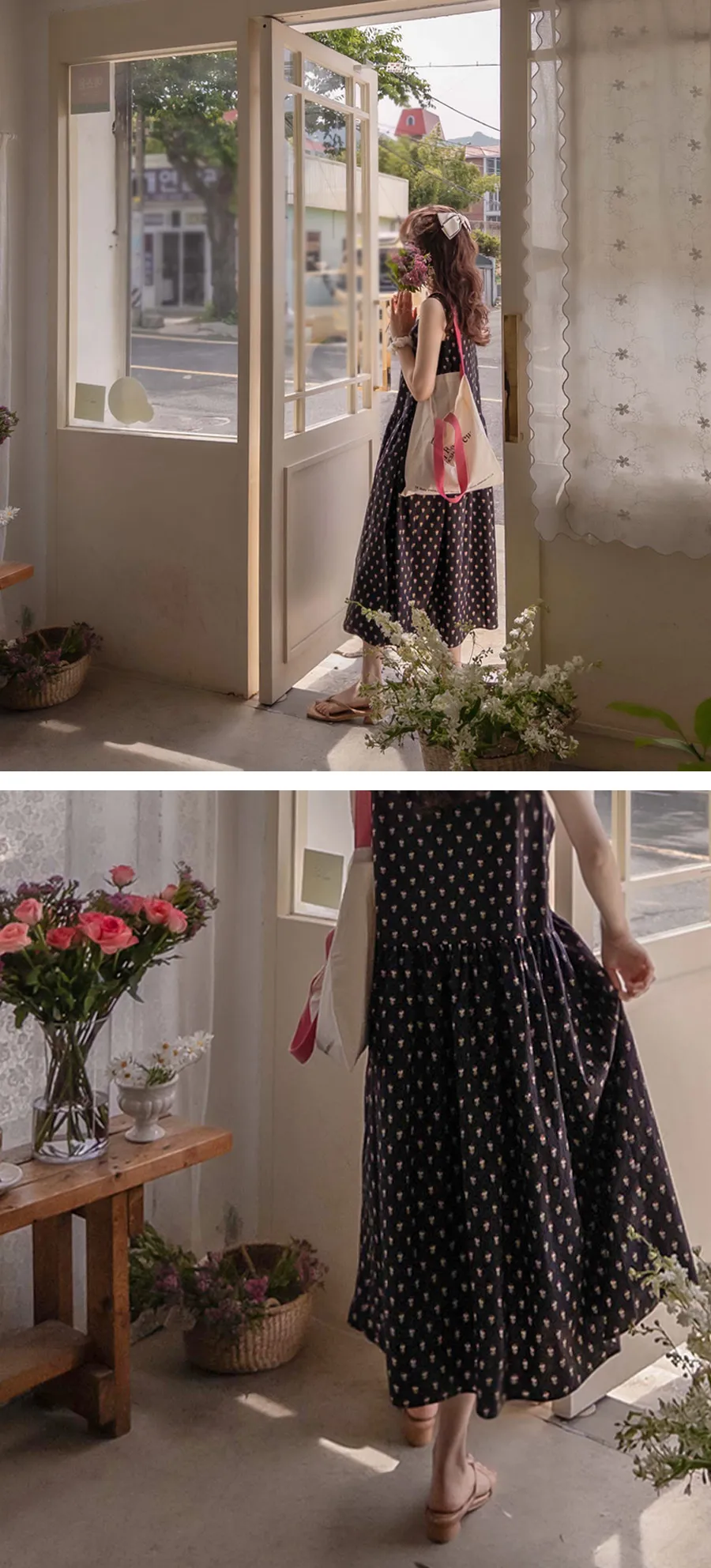 【寬鬆連身裙】【布料輕盈、富有彈性,舒適合身】【夏日花朵圖案明亮可愛】【腰部以下的剪裁打造出迷人的輪廓】【推薦作為涼爽的夏日花朵連身裙】