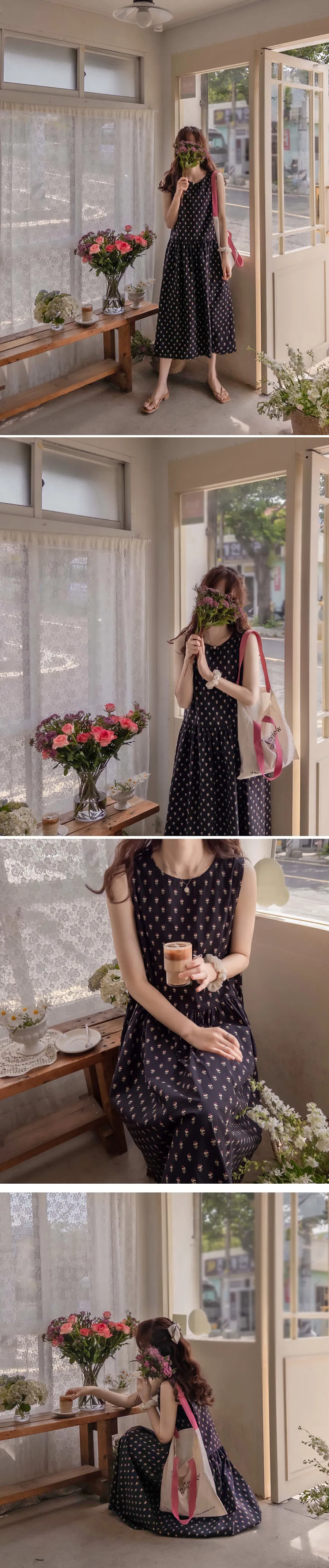 可愛夏日花朵寬鬆迷人輪廓連身裙