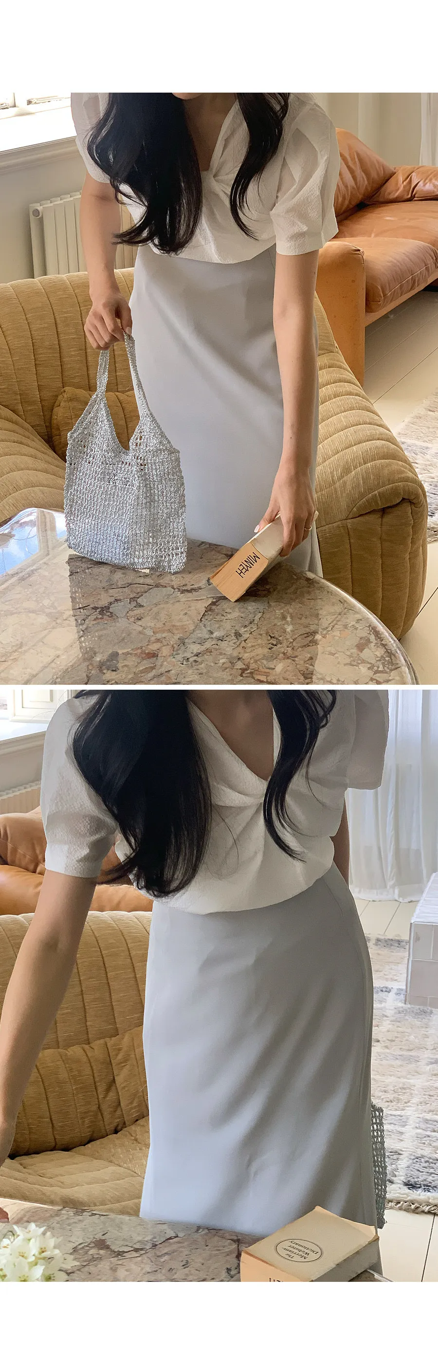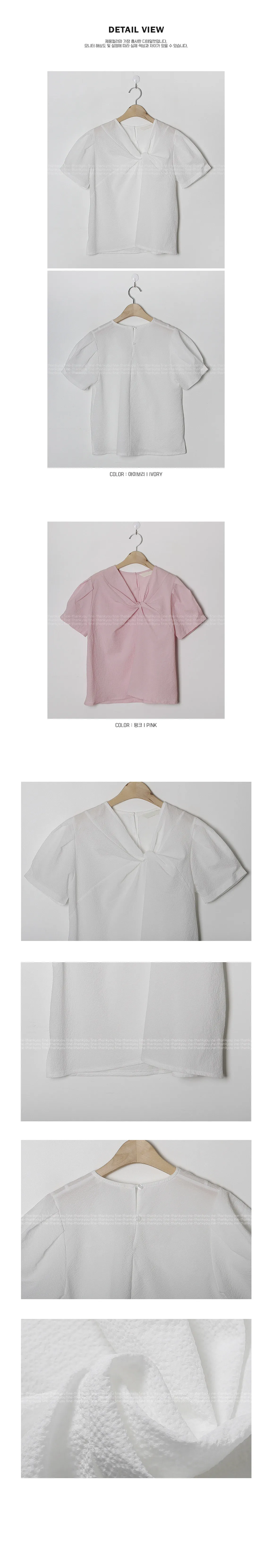 雅緻扭結設計肩線剪裁泡泡紗上衣