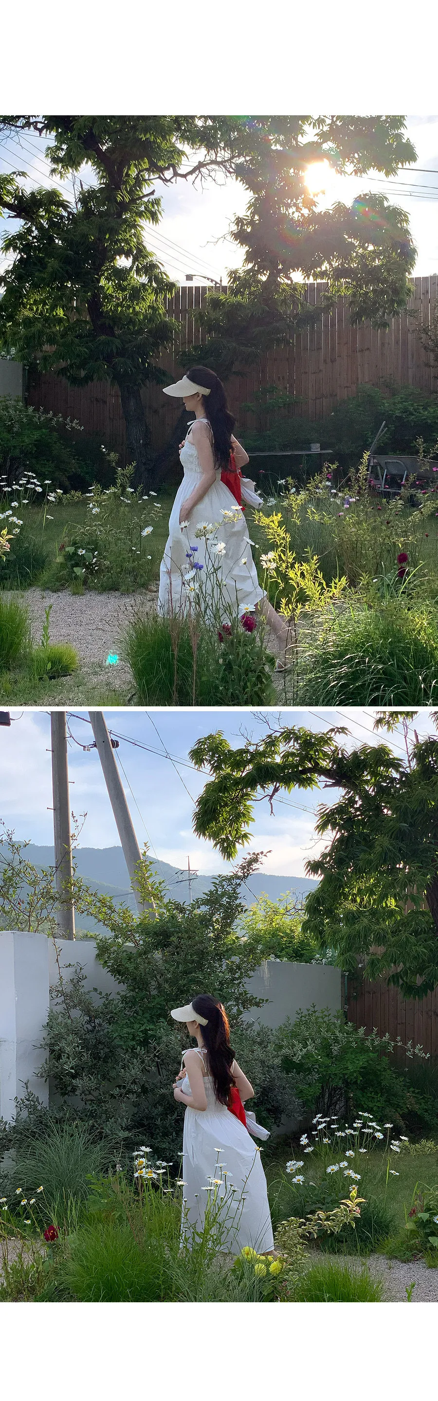 渡假風皺摺修身肩飾綁帶傘擺裙擺連身裙