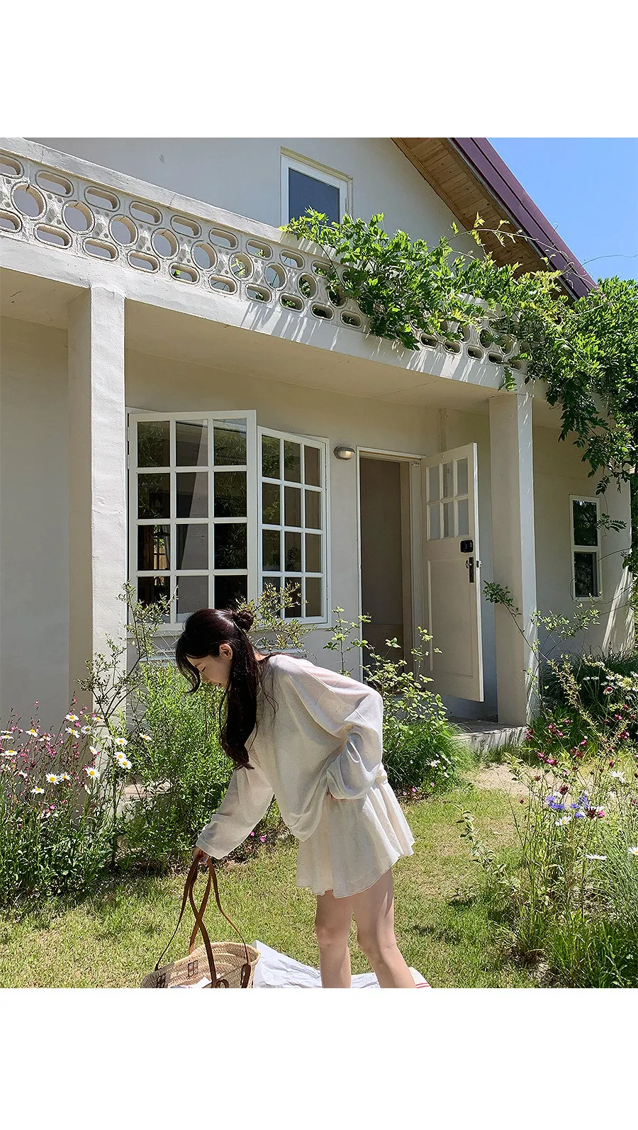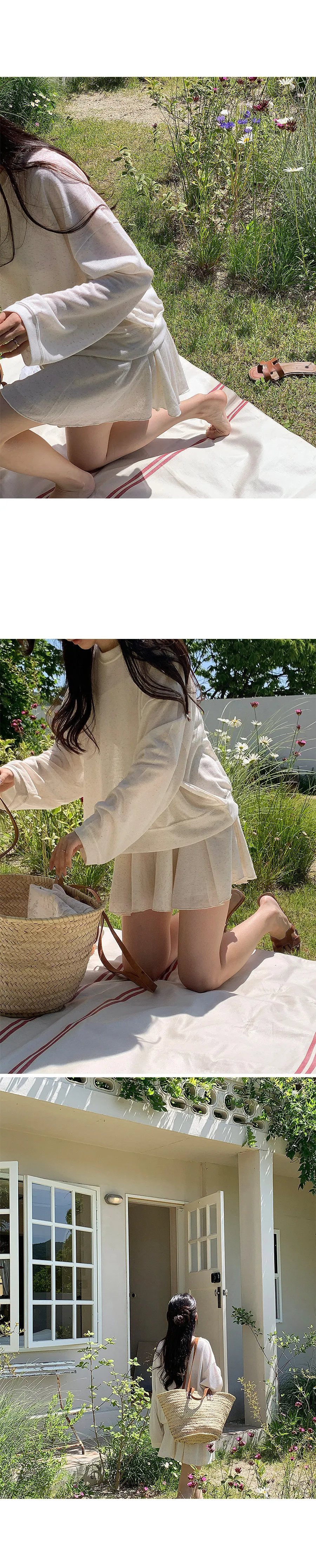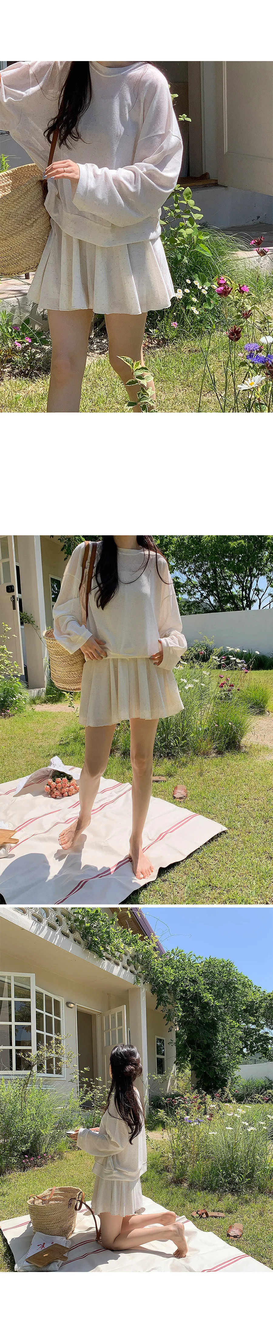 修長寬鬆版型休閒上衣和傘擺短褲的套裝