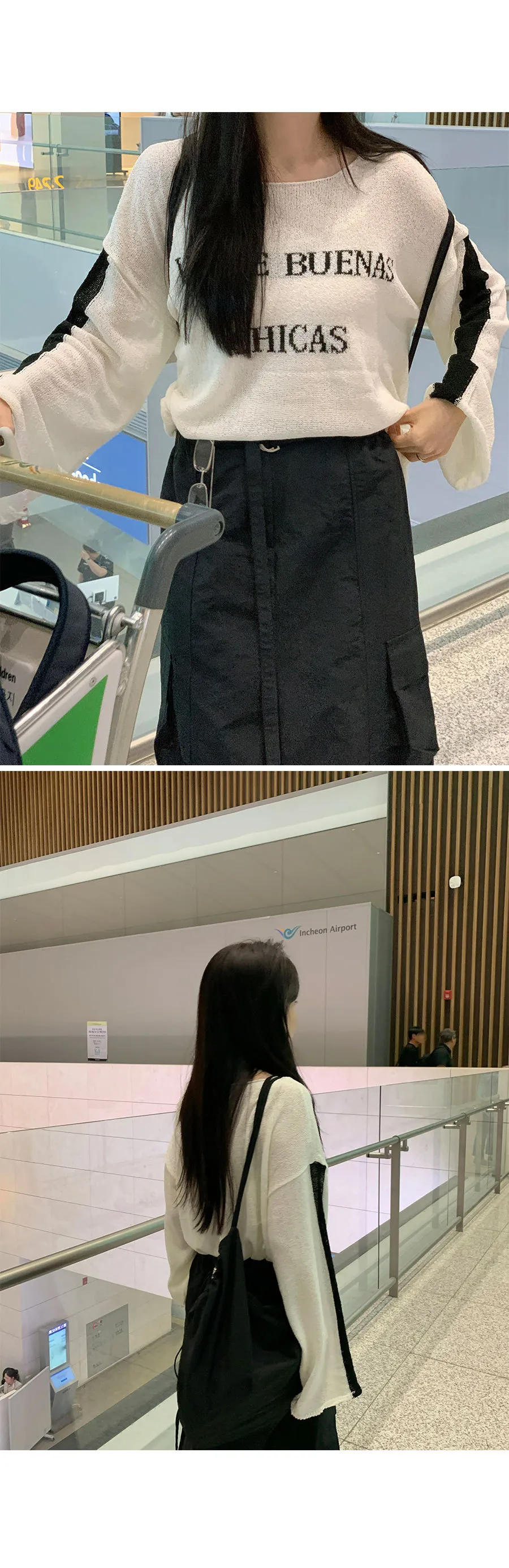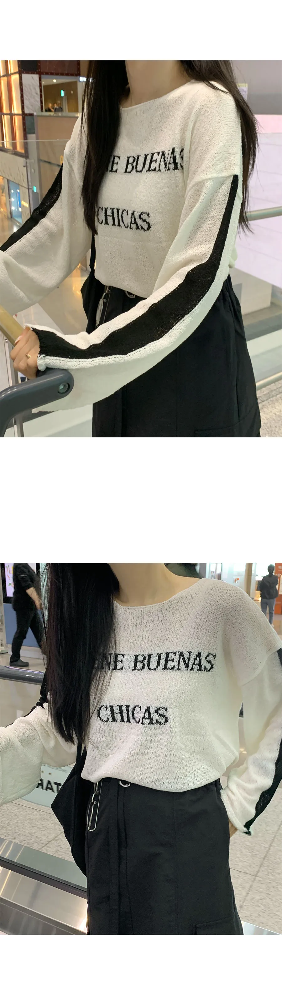 柔軟合身的夏季色彩搭配針織上衣:)袖子上有時尚的字母和色彩搭配的點,非常適合時尚享受!