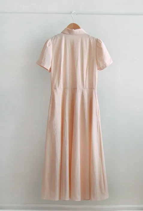迷人氛圍腰線針摺肩線剪裁排扣連身裙