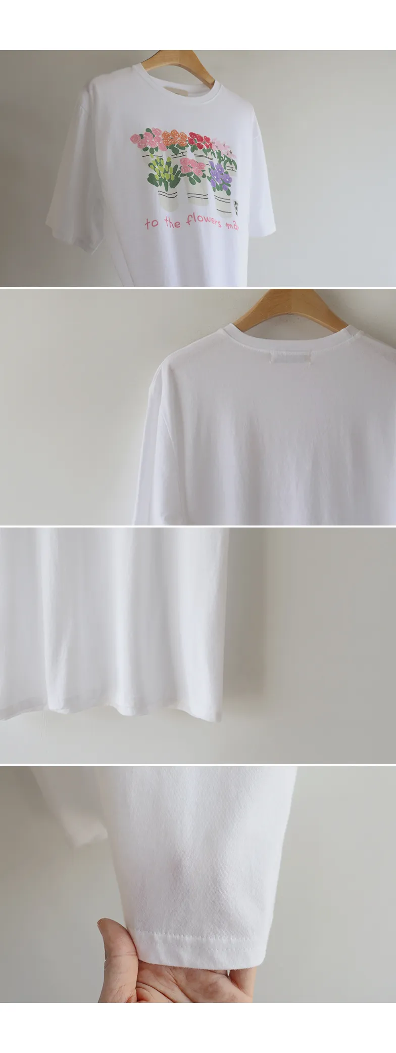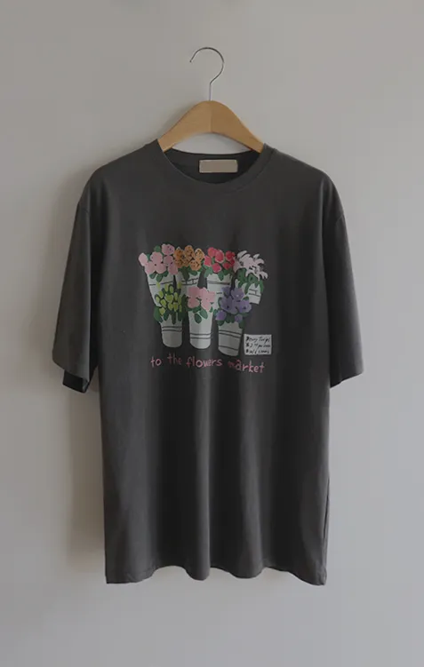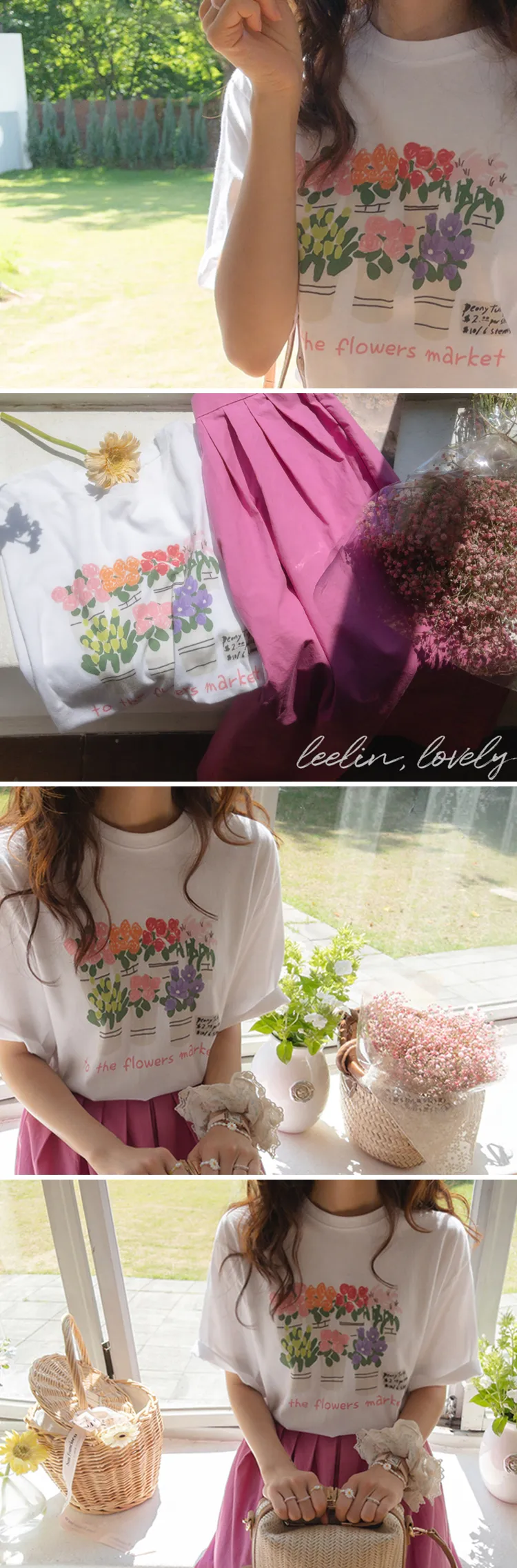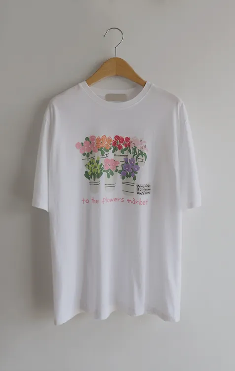 [引人注目的花束印花T♥] [柔軟的棉質面料,穿著舒適〜]