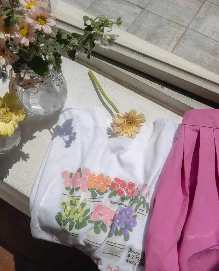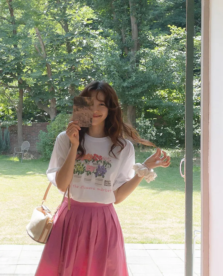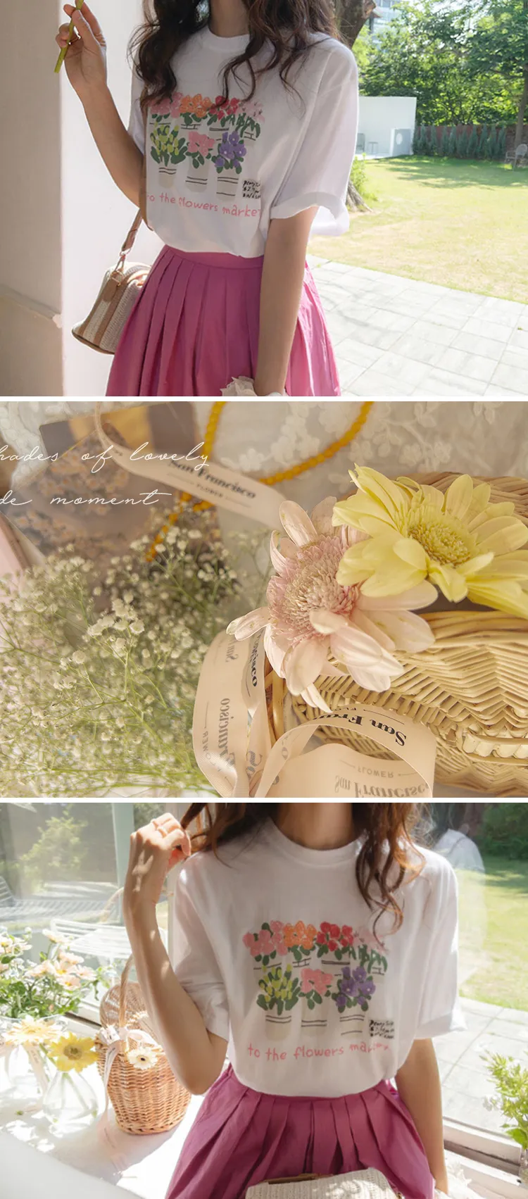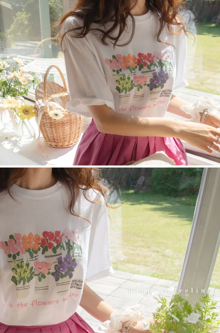 [引人注目的花束印花T♥] [柔軟的棉質面料,穿著舒適〜]