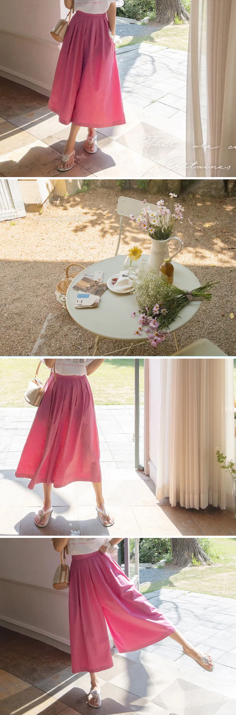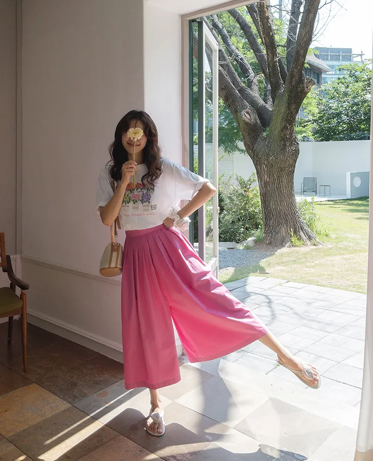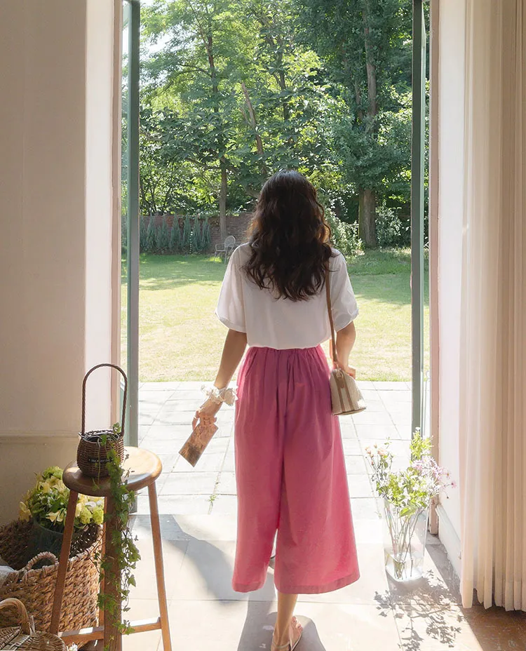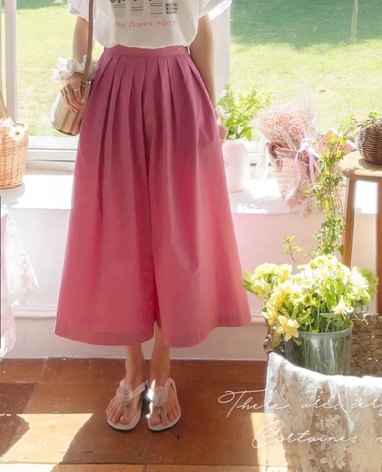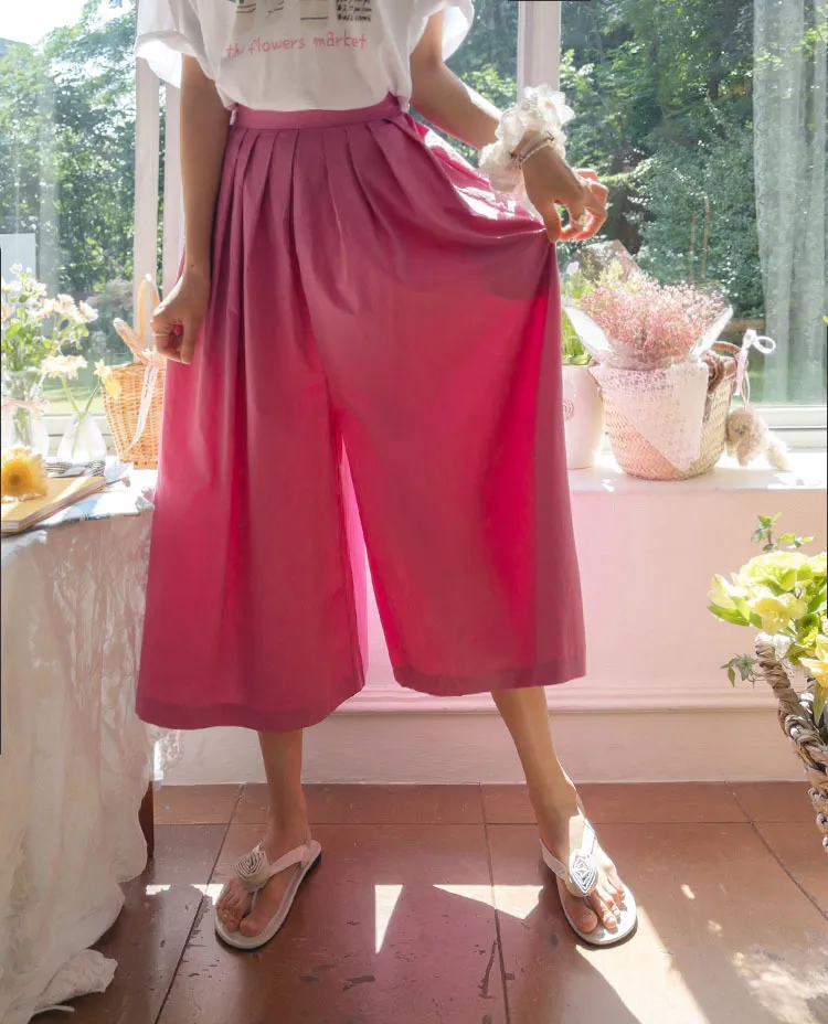 【漂亮的針摺裙褲♥】【質地柔軟】【寬版舒適,夏日涼爽】【背部綁帶,舒適穩定】