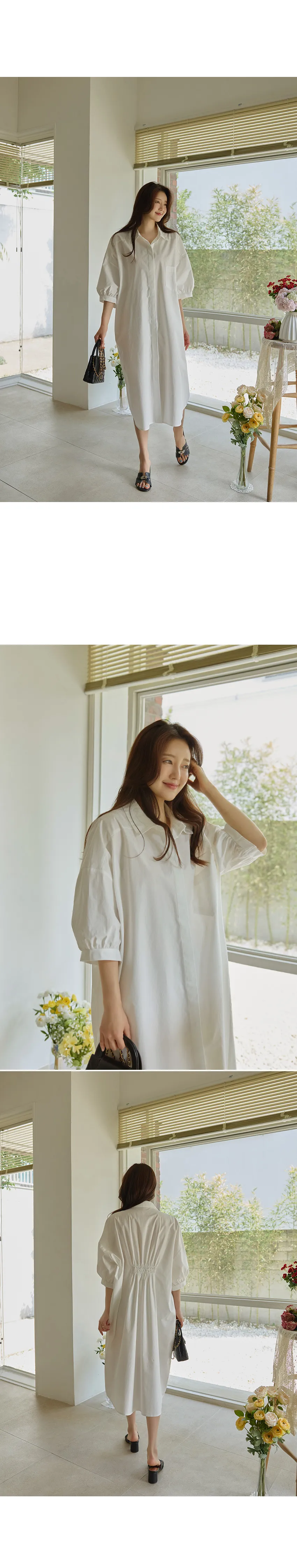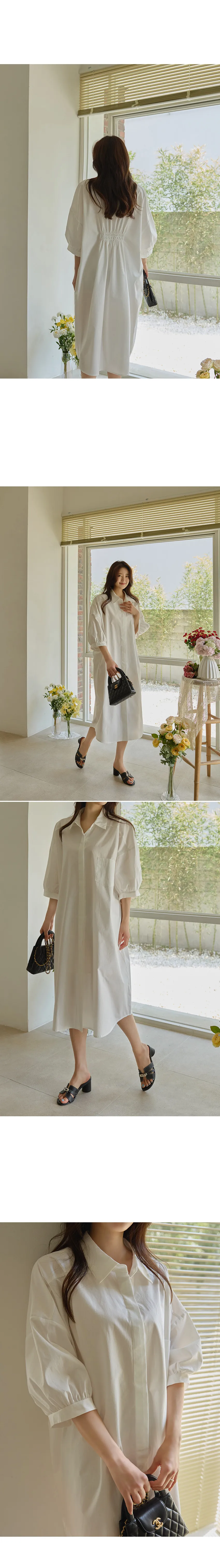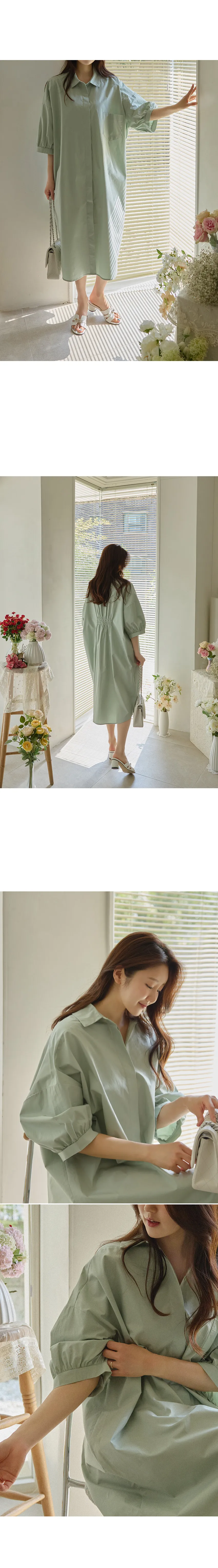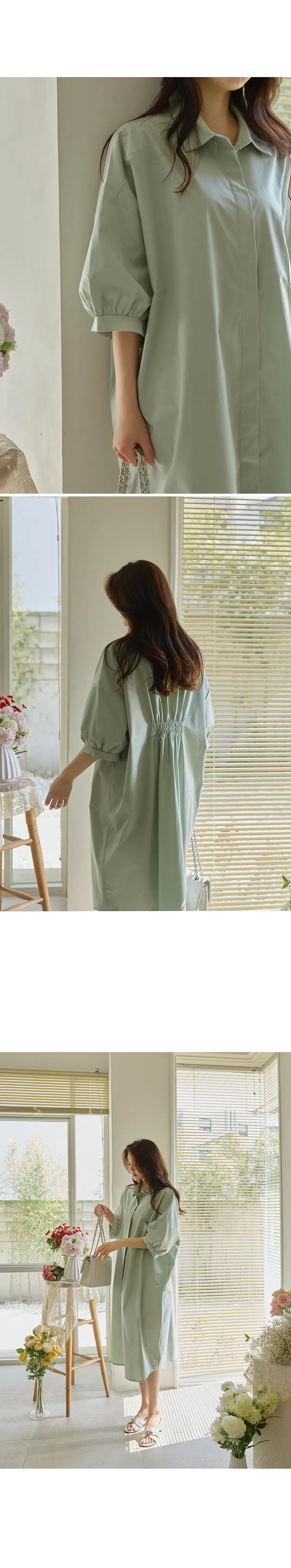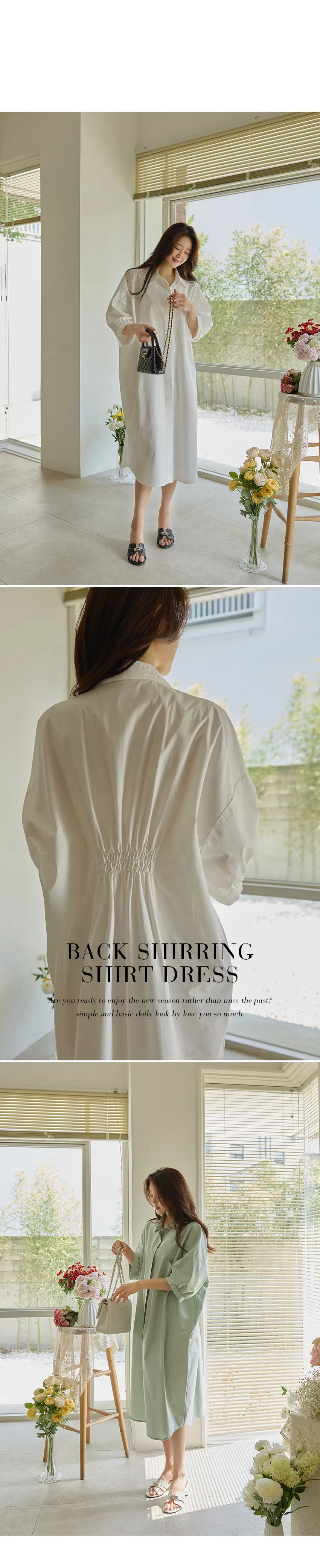 襯衫式連身裙,背面有抽褶細節。 領子時尚又休閒的感覺, 慵懶的設計自然垂落,沒有肩線 ,整體寬鬆版型提供舒適的貼合感。長度寬鬆,覆蓋膝蓋。下擺兩側圓形,自然氛圍:)