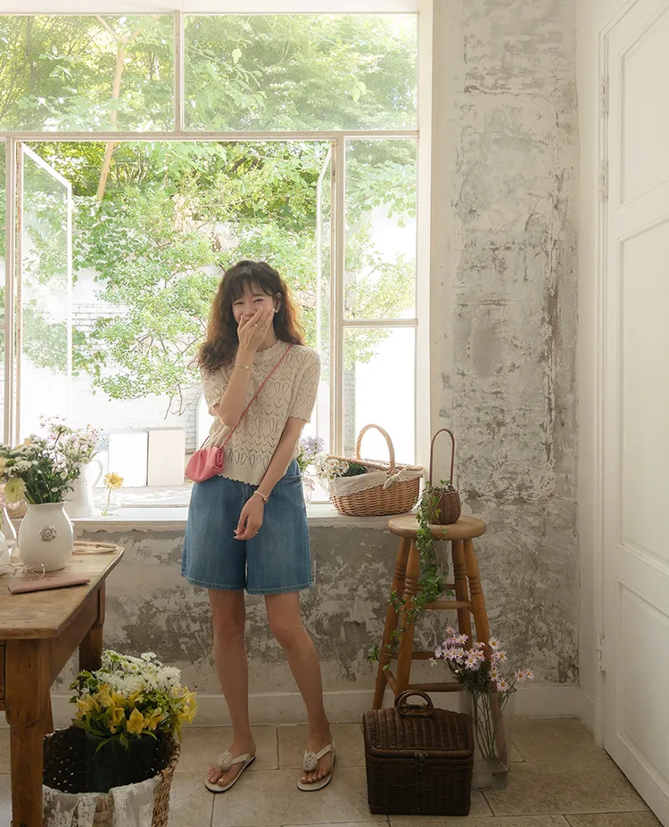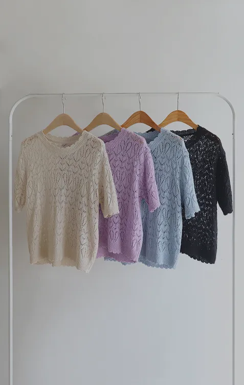 [鏤空編織,即使在夏天也能舒適穿著的針織品♡][寬鬆版型,涼爽舒適! ][伸展,穿著更舒適][有4種不同顏色可供選擇]