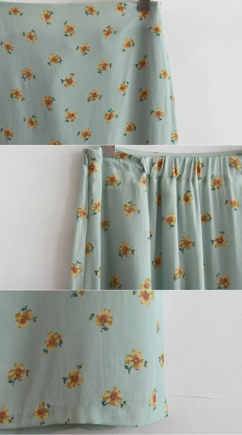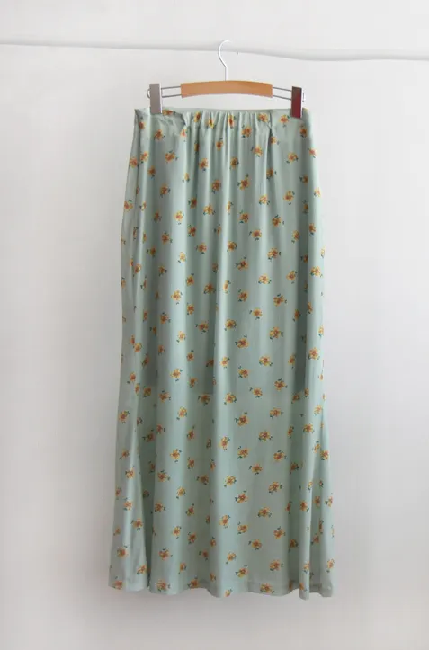 [襯裡:聚酯纖維][腰部飾帶][側拉鍊配置][非常可愛的設計,由帶有花朵圖案的面料製成][涼爽的人造絲製成的夏季裙][邊緣貼合,穿著時尚] 【協調性好推薦作為時尚合身的裙子】