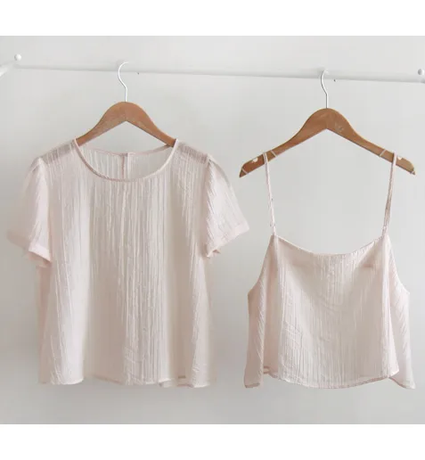 [上衣和無袖套裝:可分開] [可調節肩帶的無袖上衣] [含有天絲的涼爽柔軟材料] [作為套裝項目時尚而獨特的設計] [具有時尚線條的套裝,靈活可愛]