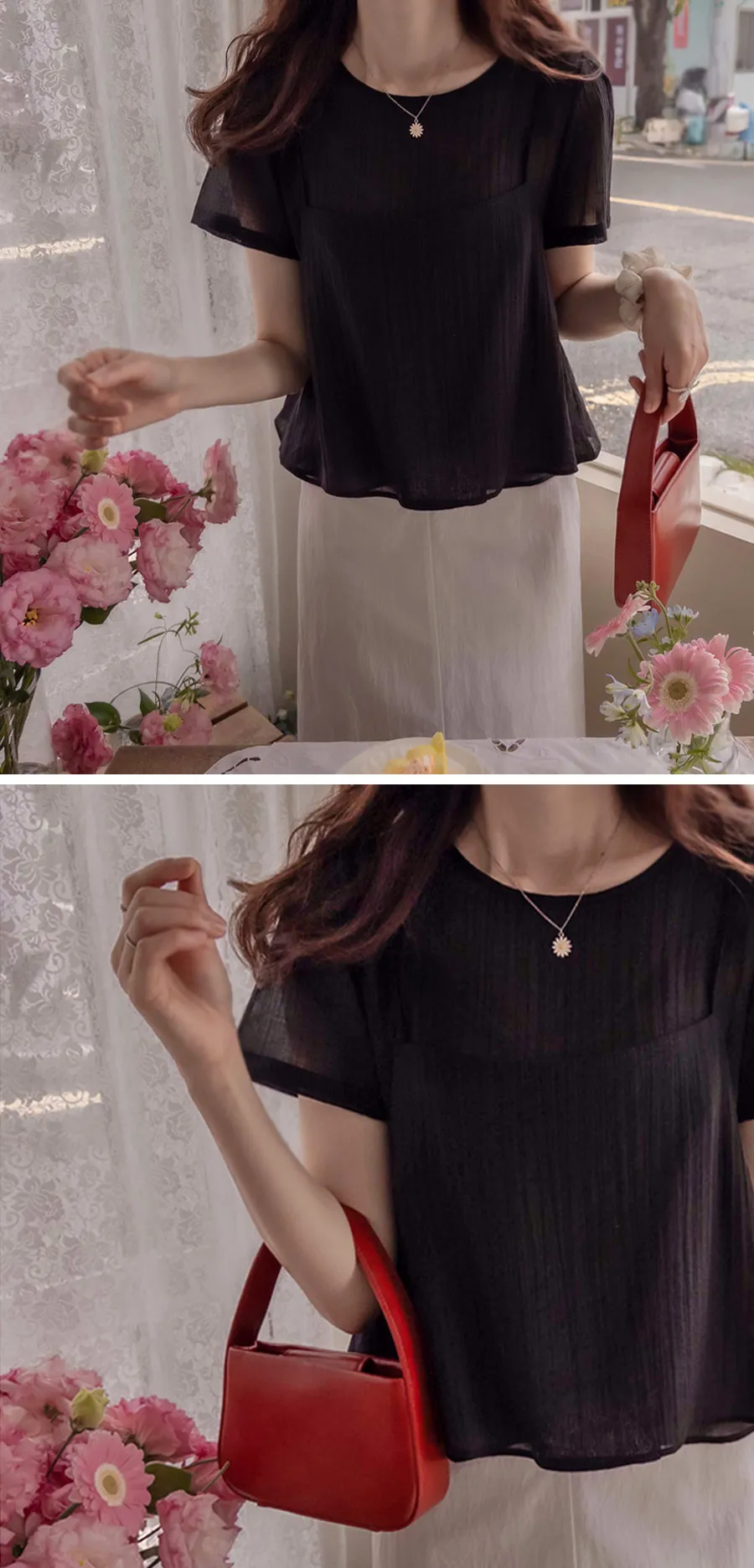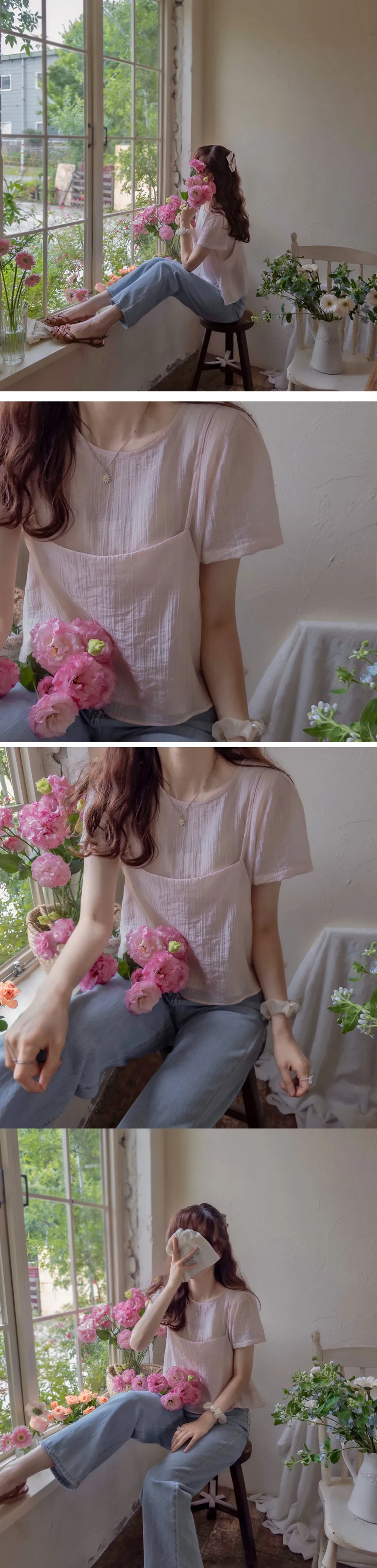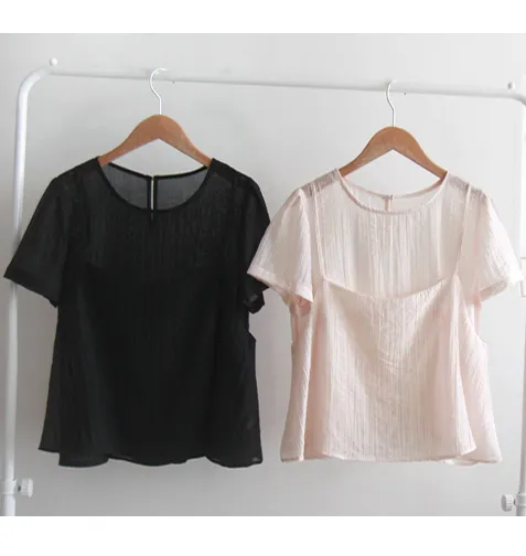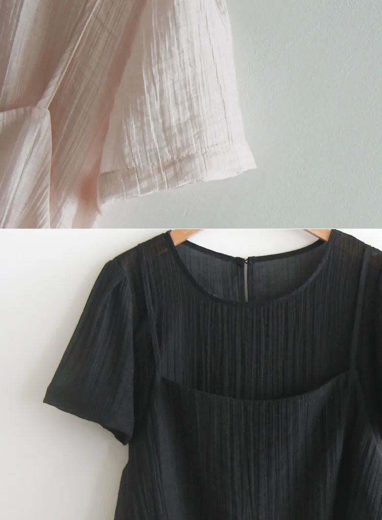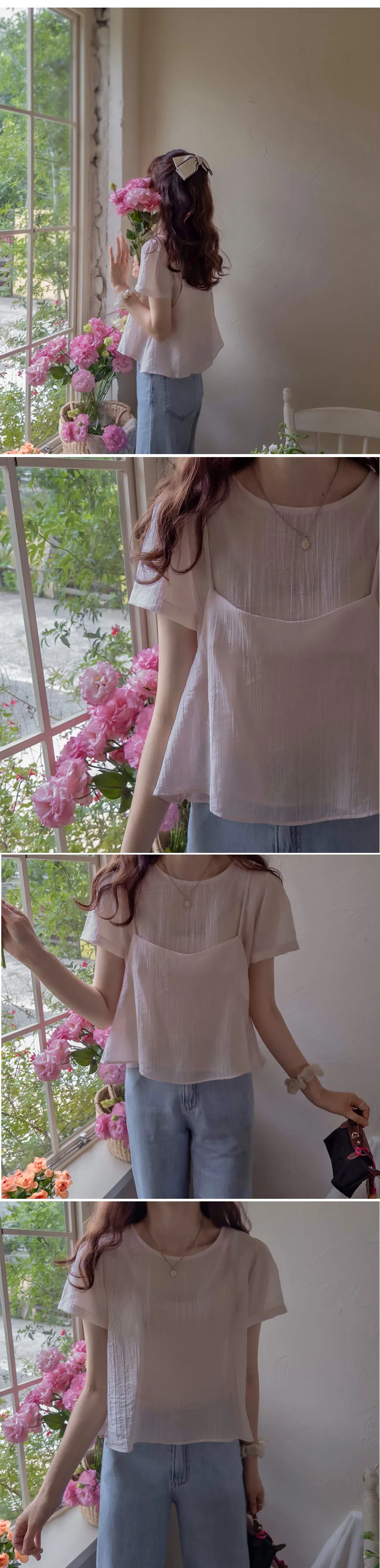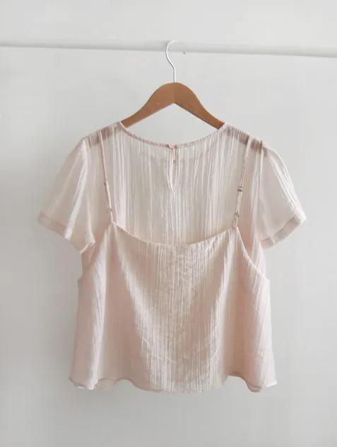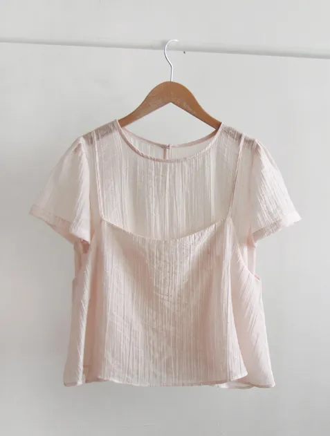 夏季層次線條絲質上衣的套裝