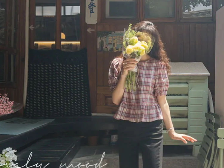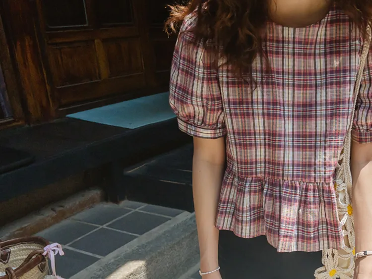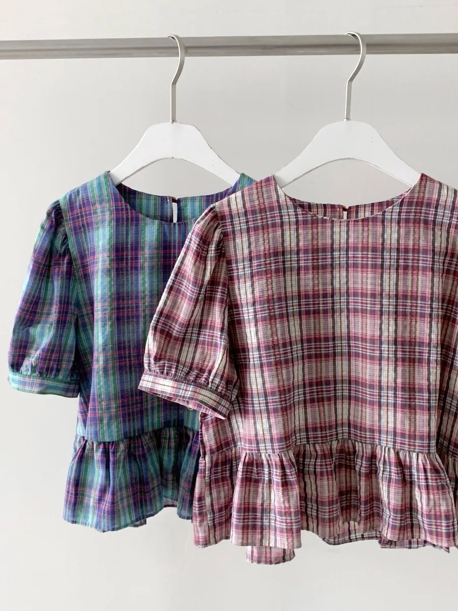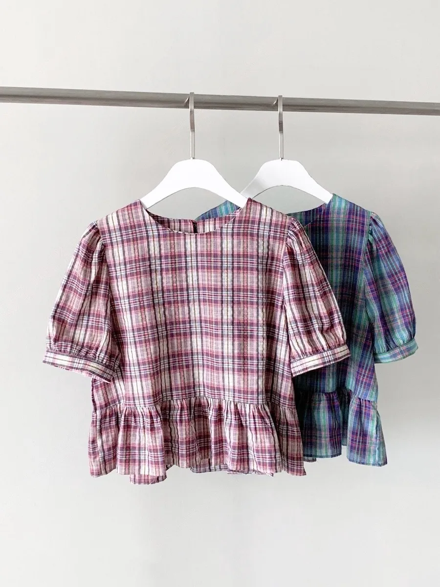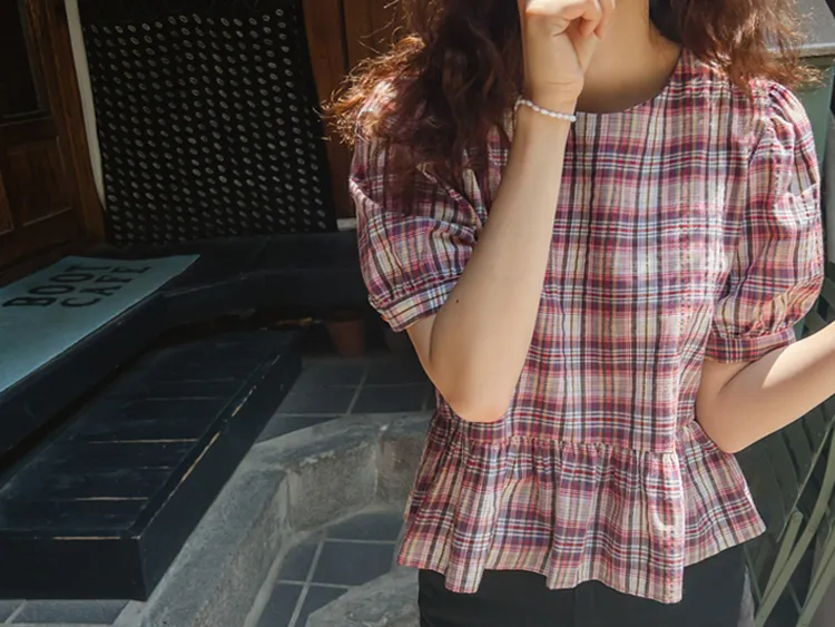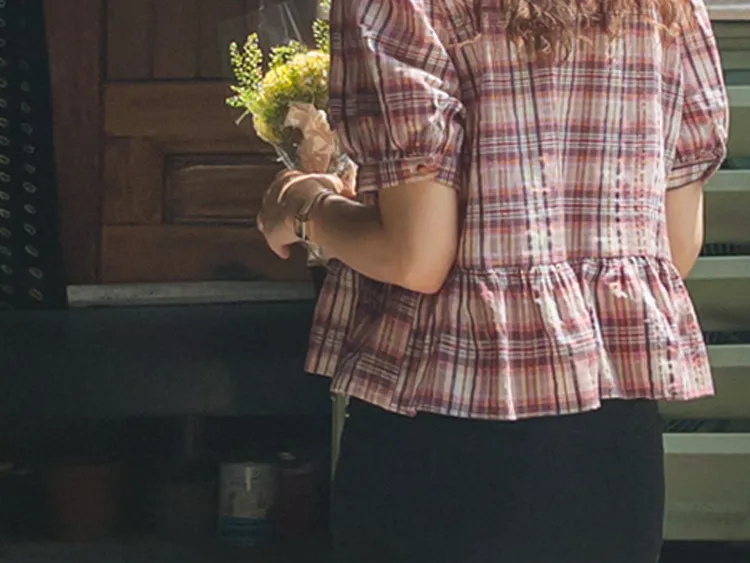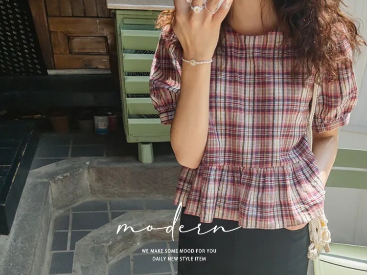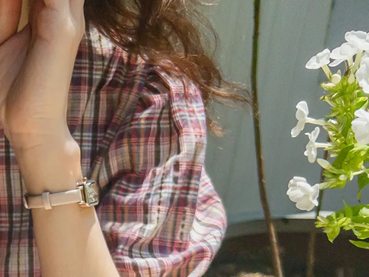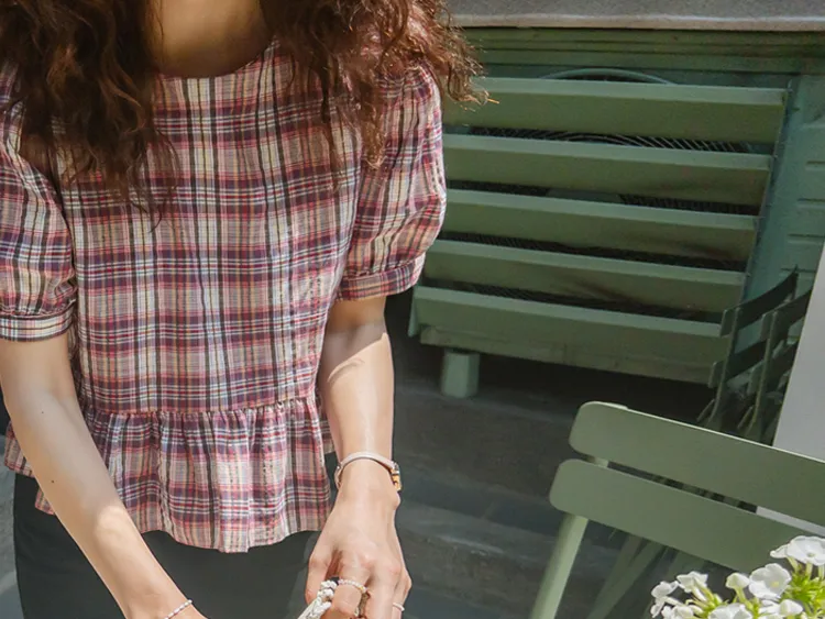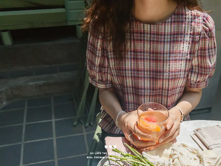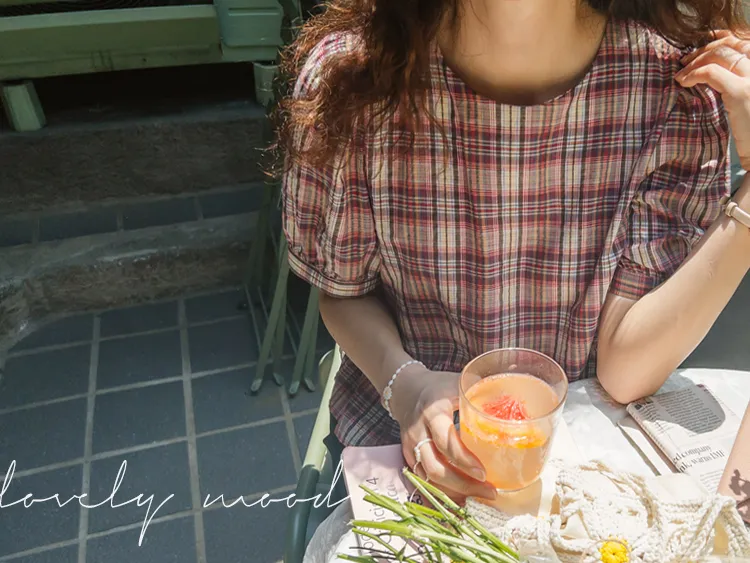 [經典可愛的心情格紋上衣♥][平靜與憂鬱色彩的格紋組合][木質紐扣的奢華點~][薄款啞光質感,酷感UP! ]