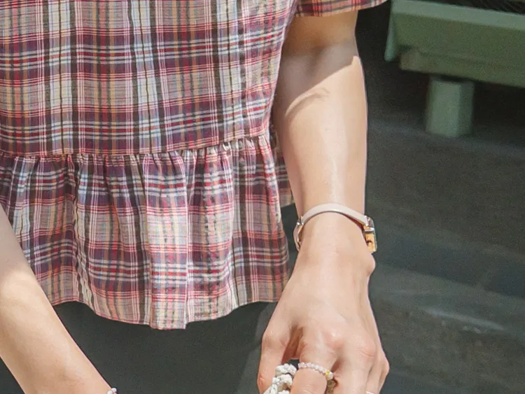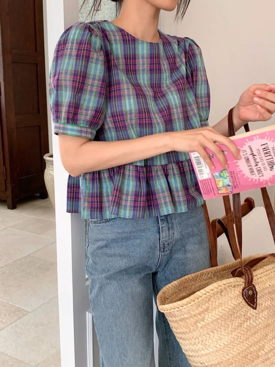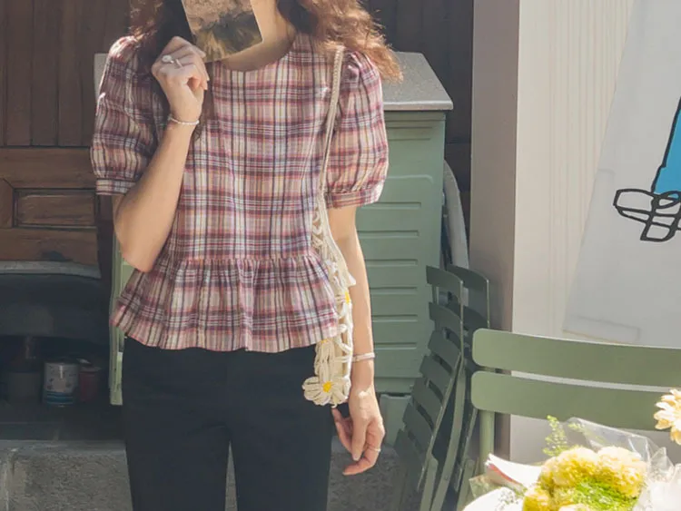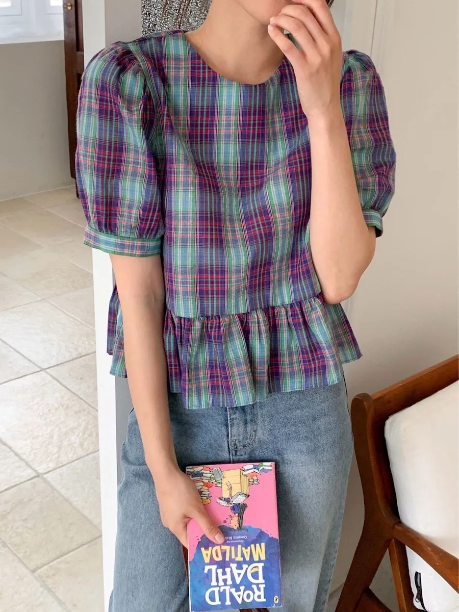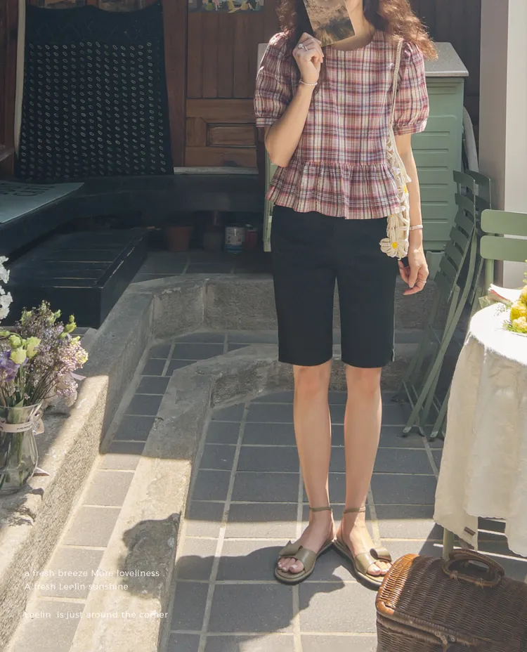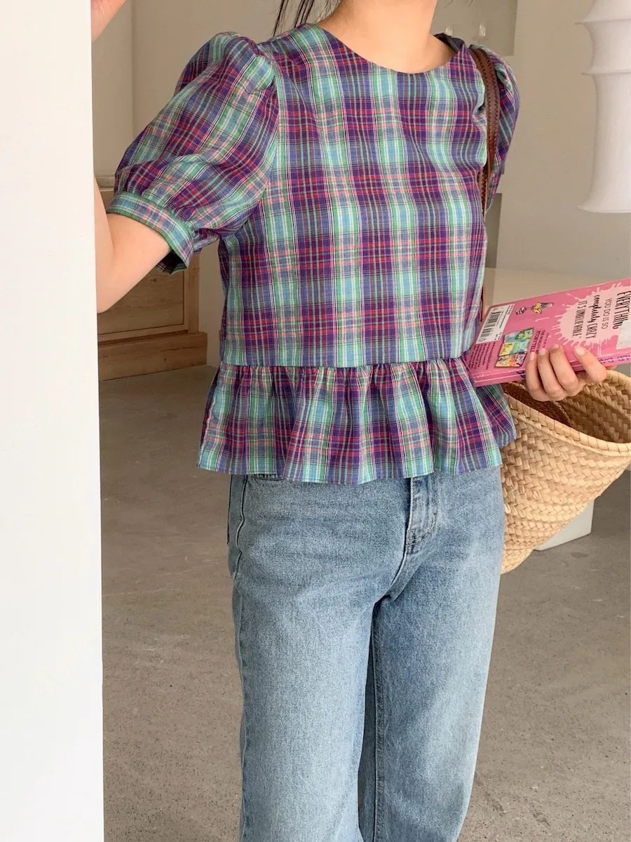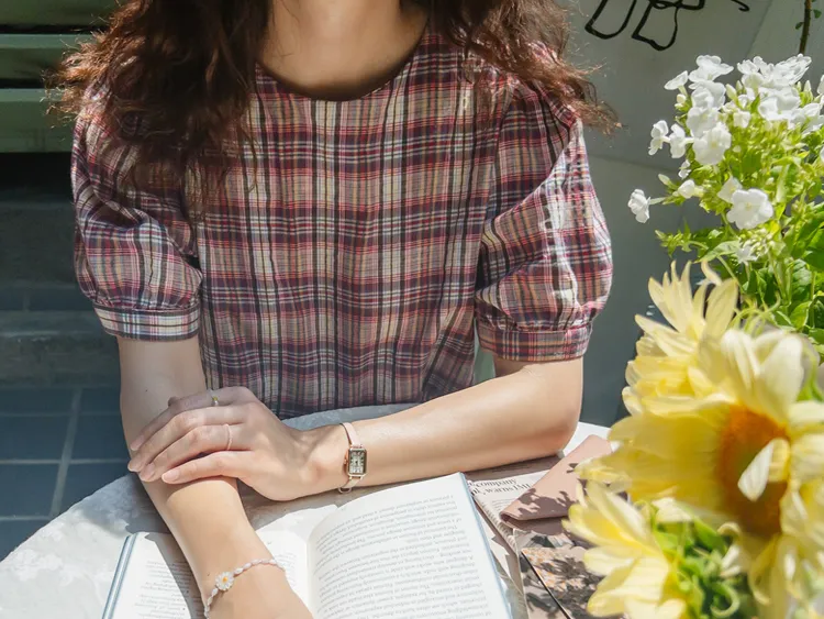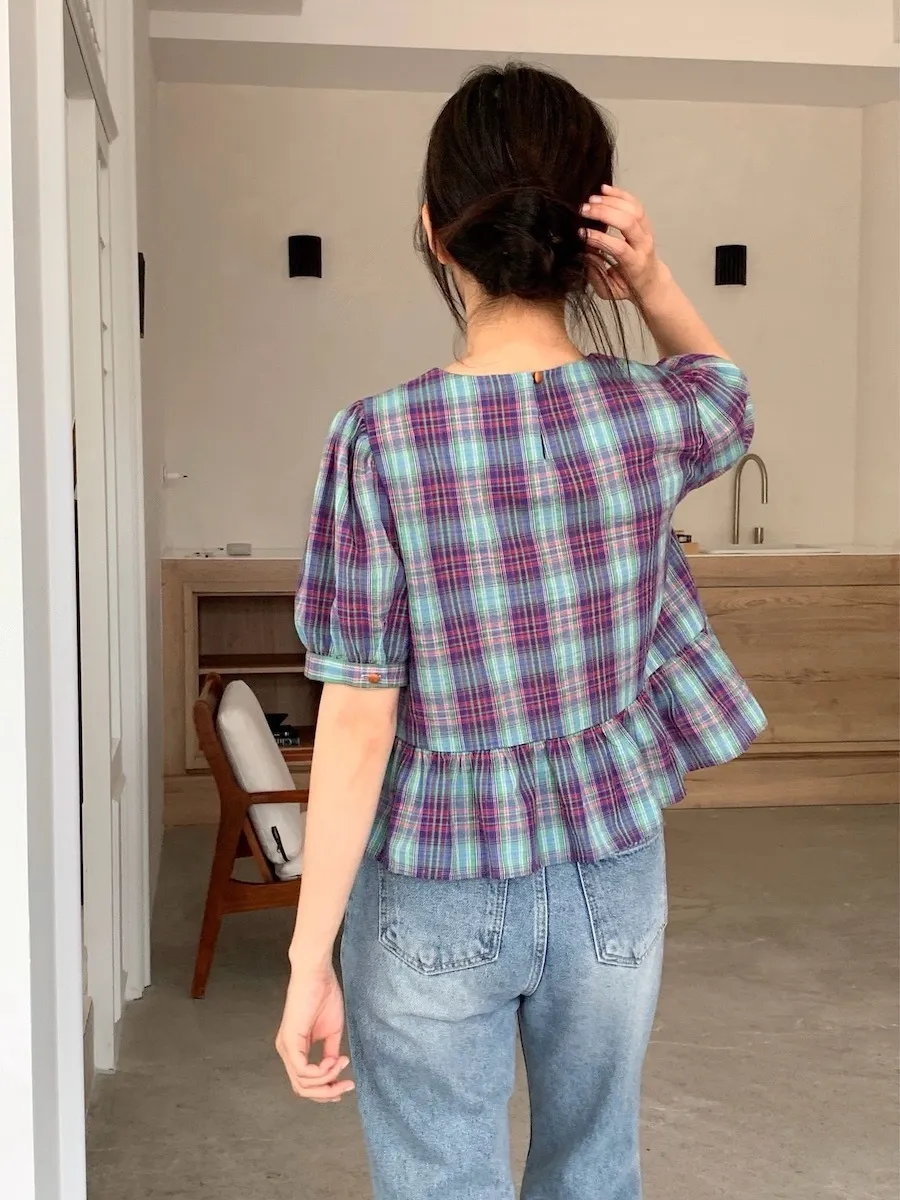 [經典可愛的心情格紋上衣♥][平靜與憂鬱色彩的格紋組合][木質紐扣的奢華點~][薄款啞光質感,酷感UP! ]