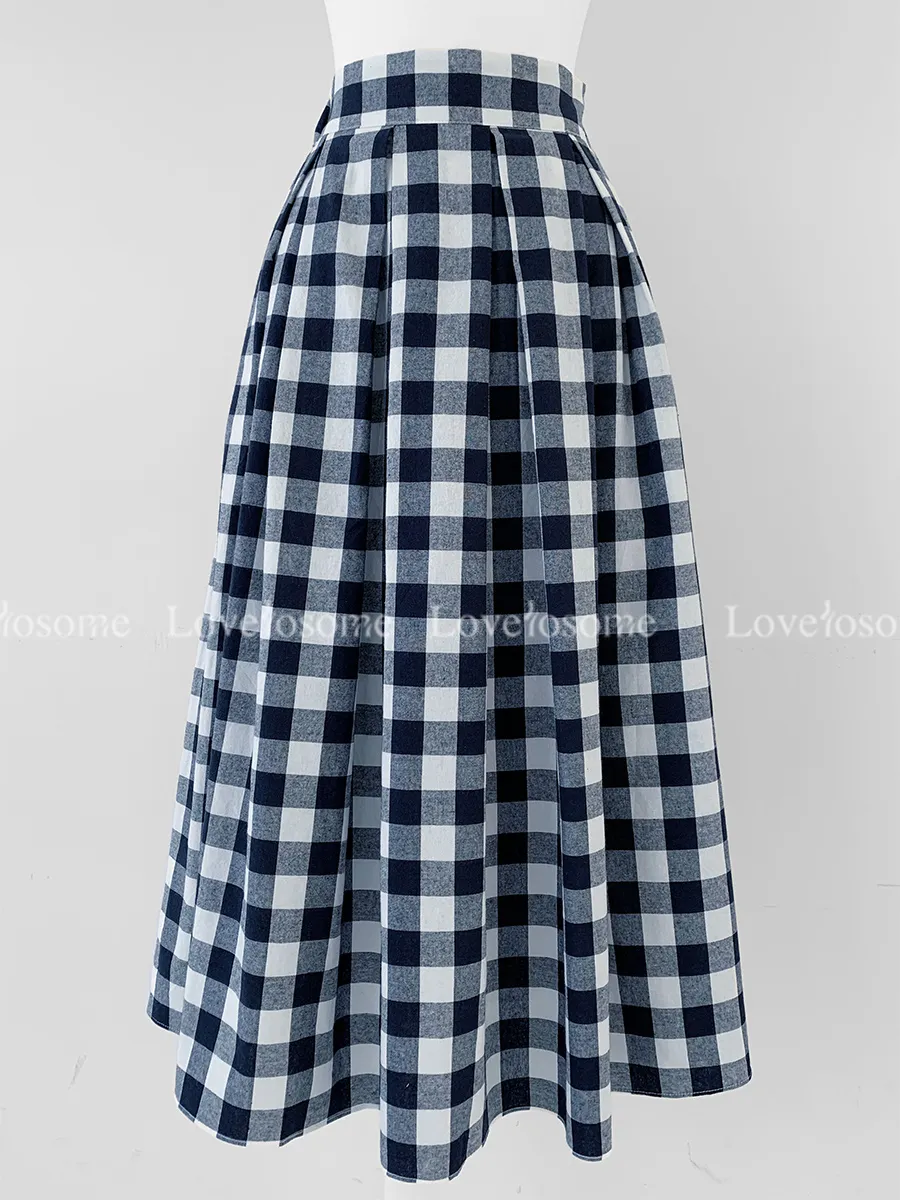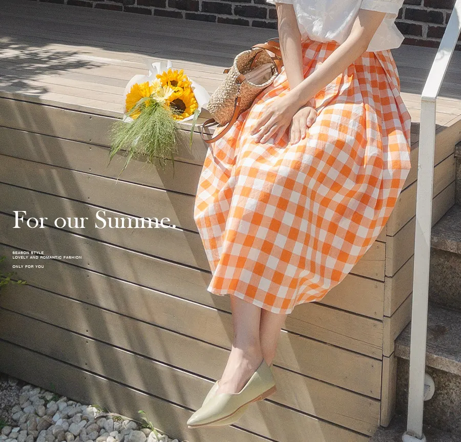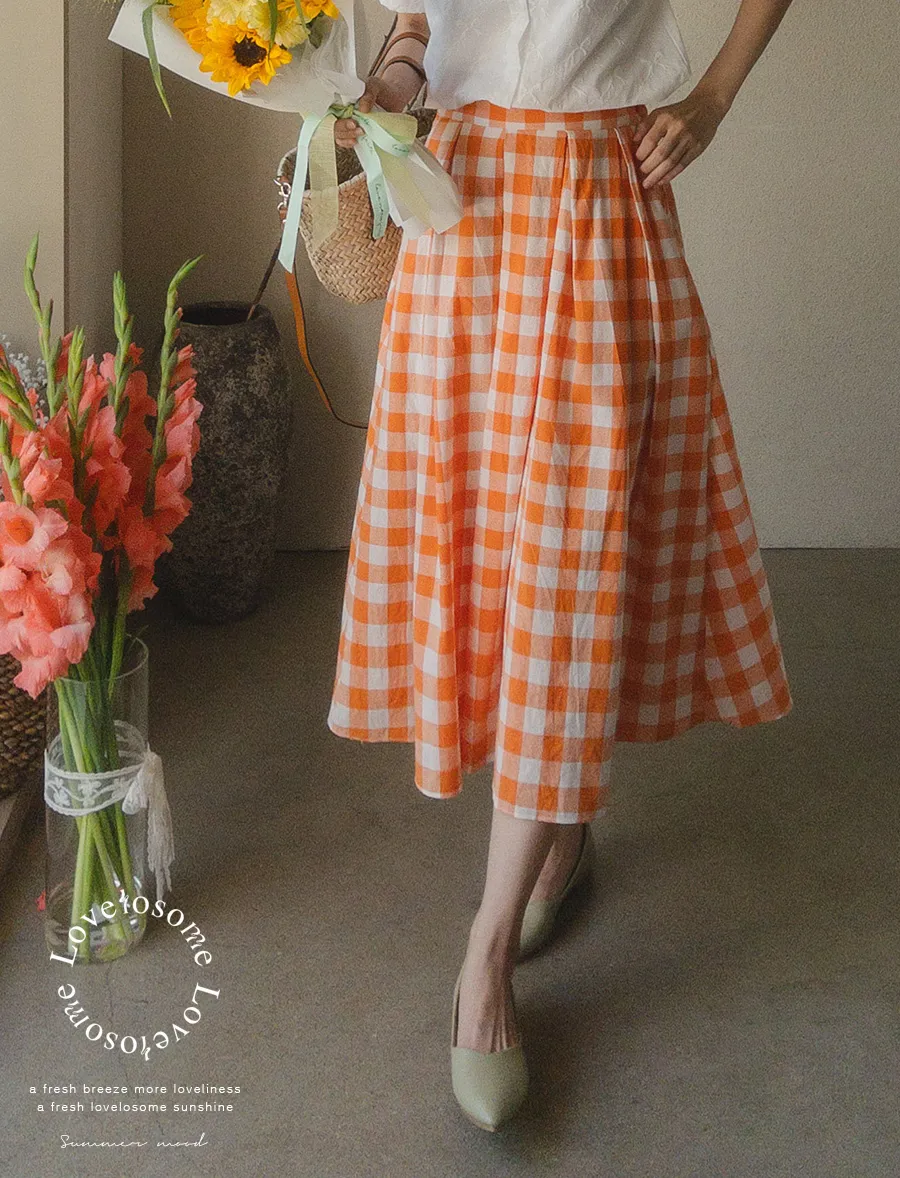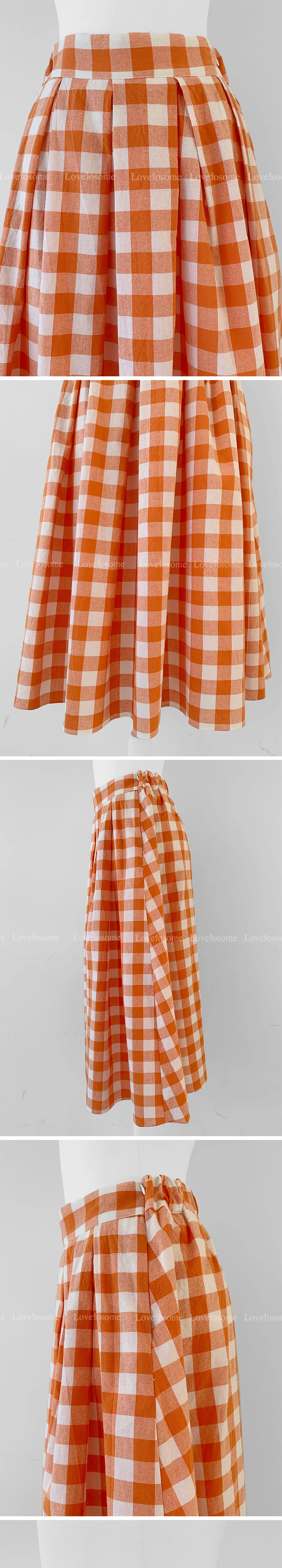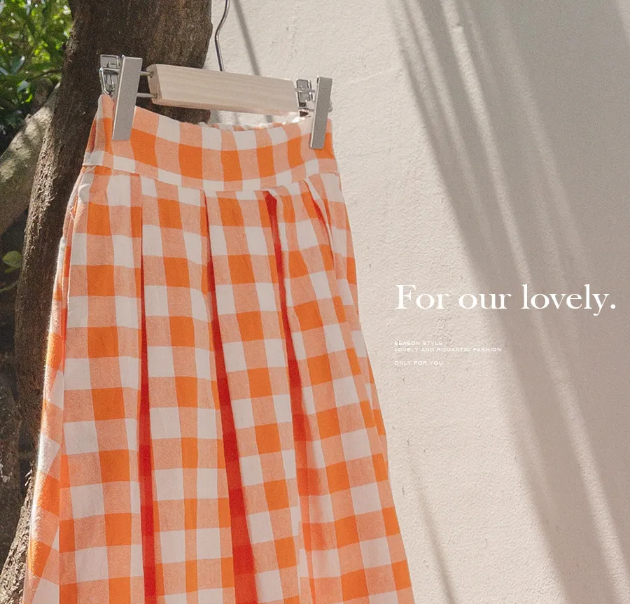 百搭線條摺線格紋中長裙