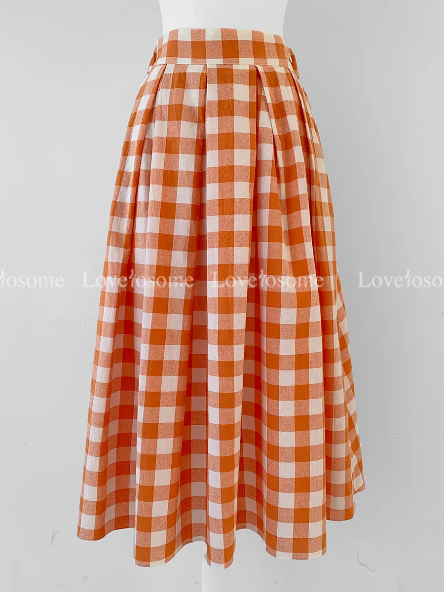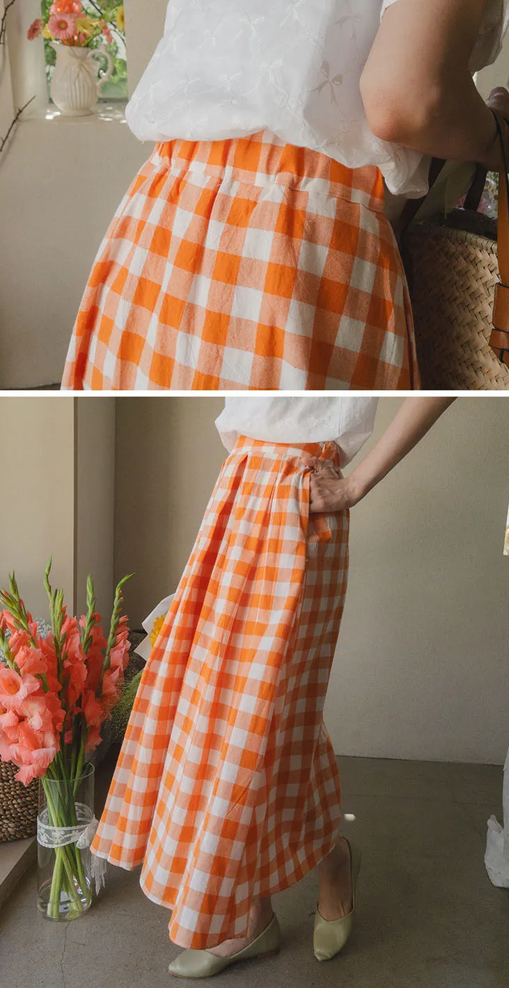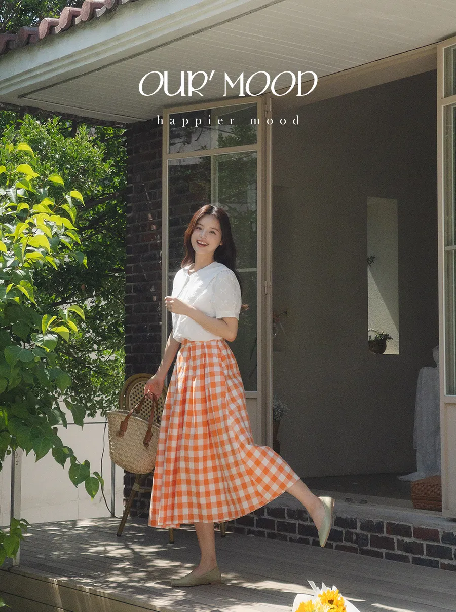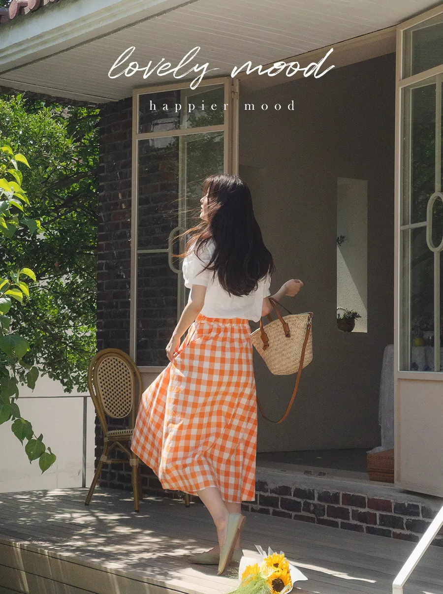 百搭線條摺線格紋中長裙