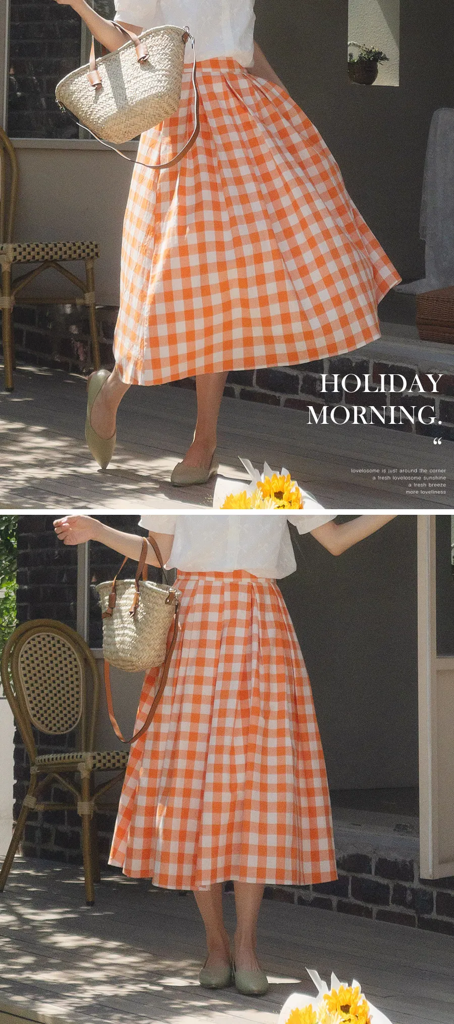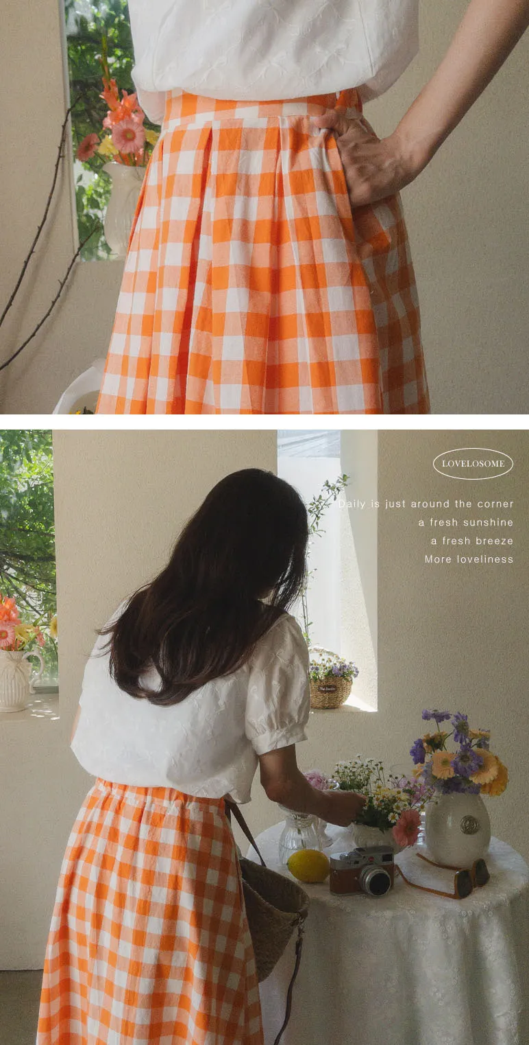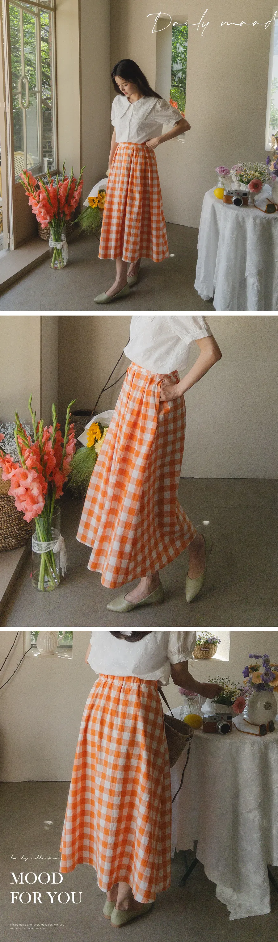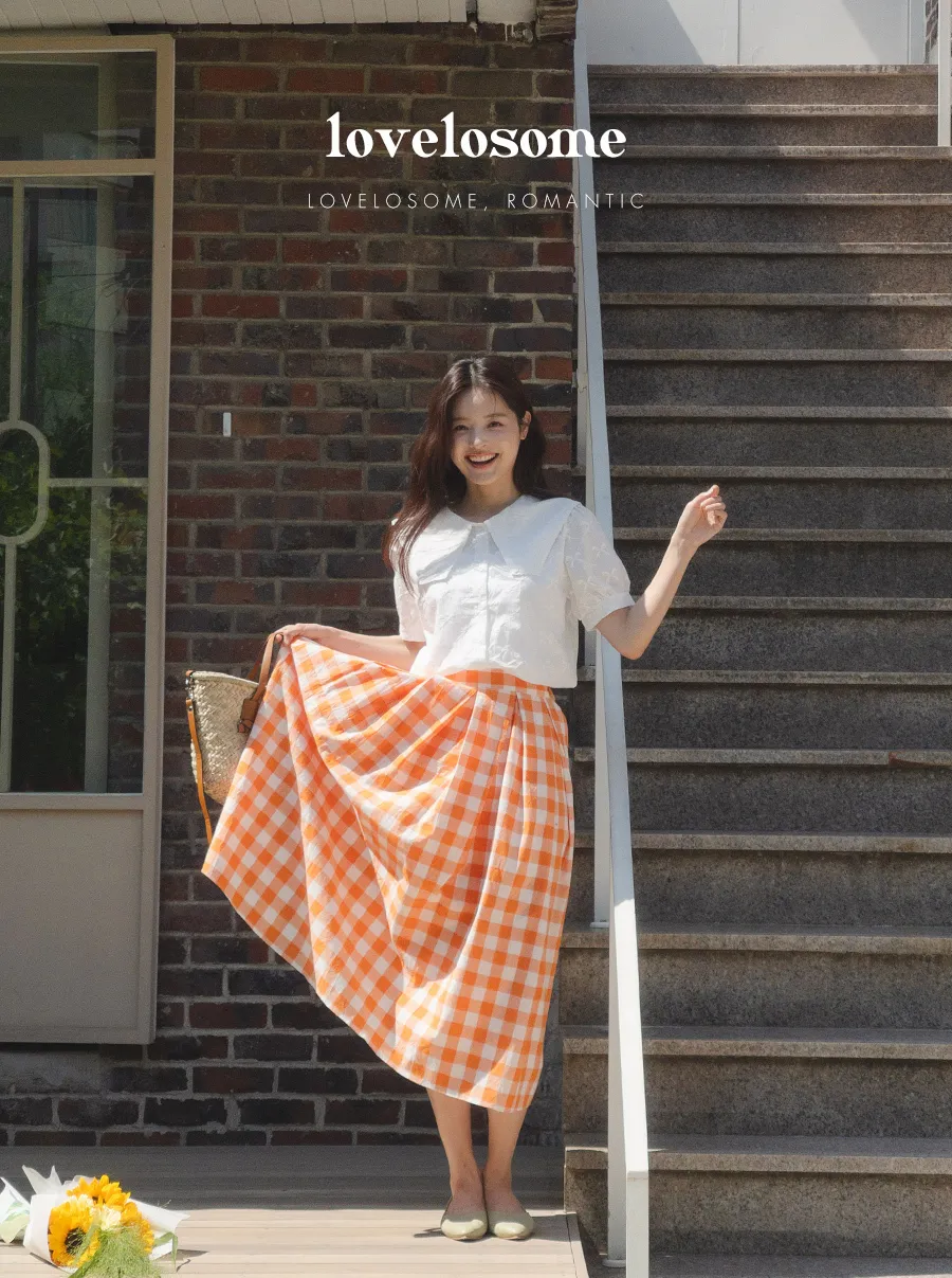 百搭線條摺線格紋中長裙