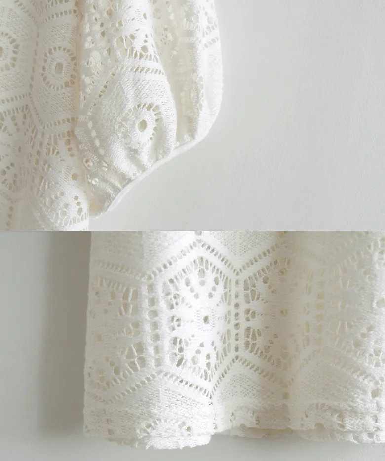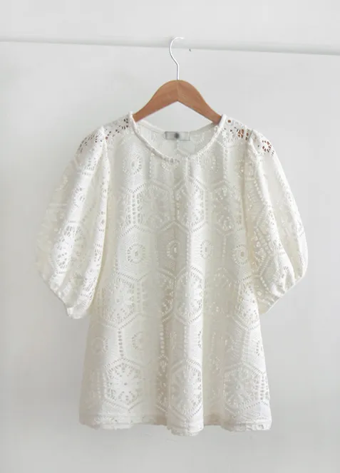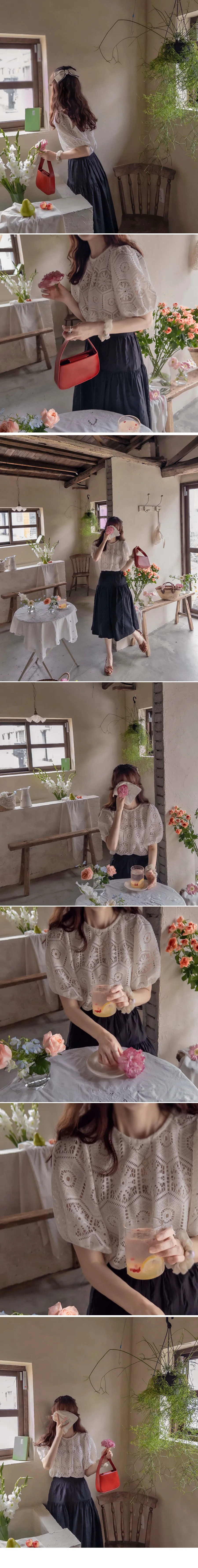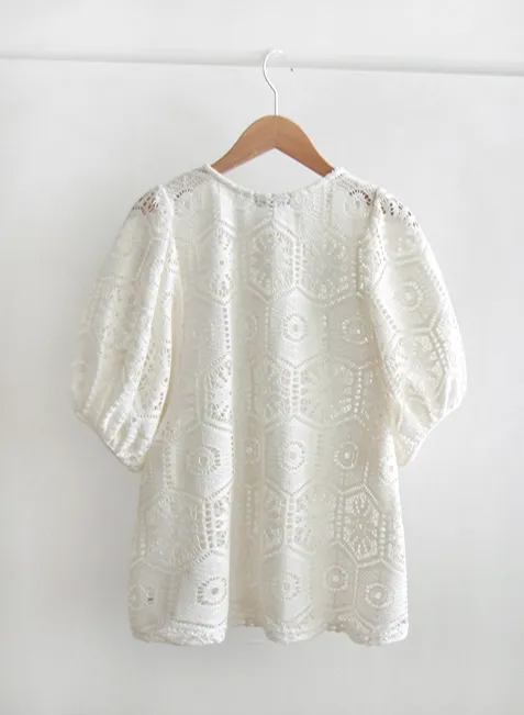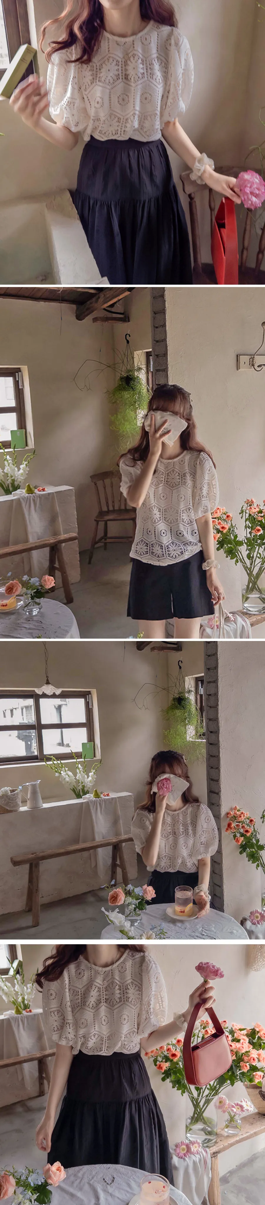 【花朵圖案蕾絲的時尚單品】【肩部剪裁的泡泡袖也很漂亮】【色彩鮮豔、優雅魅力】【蕾絲成分,穿起來可愛】【