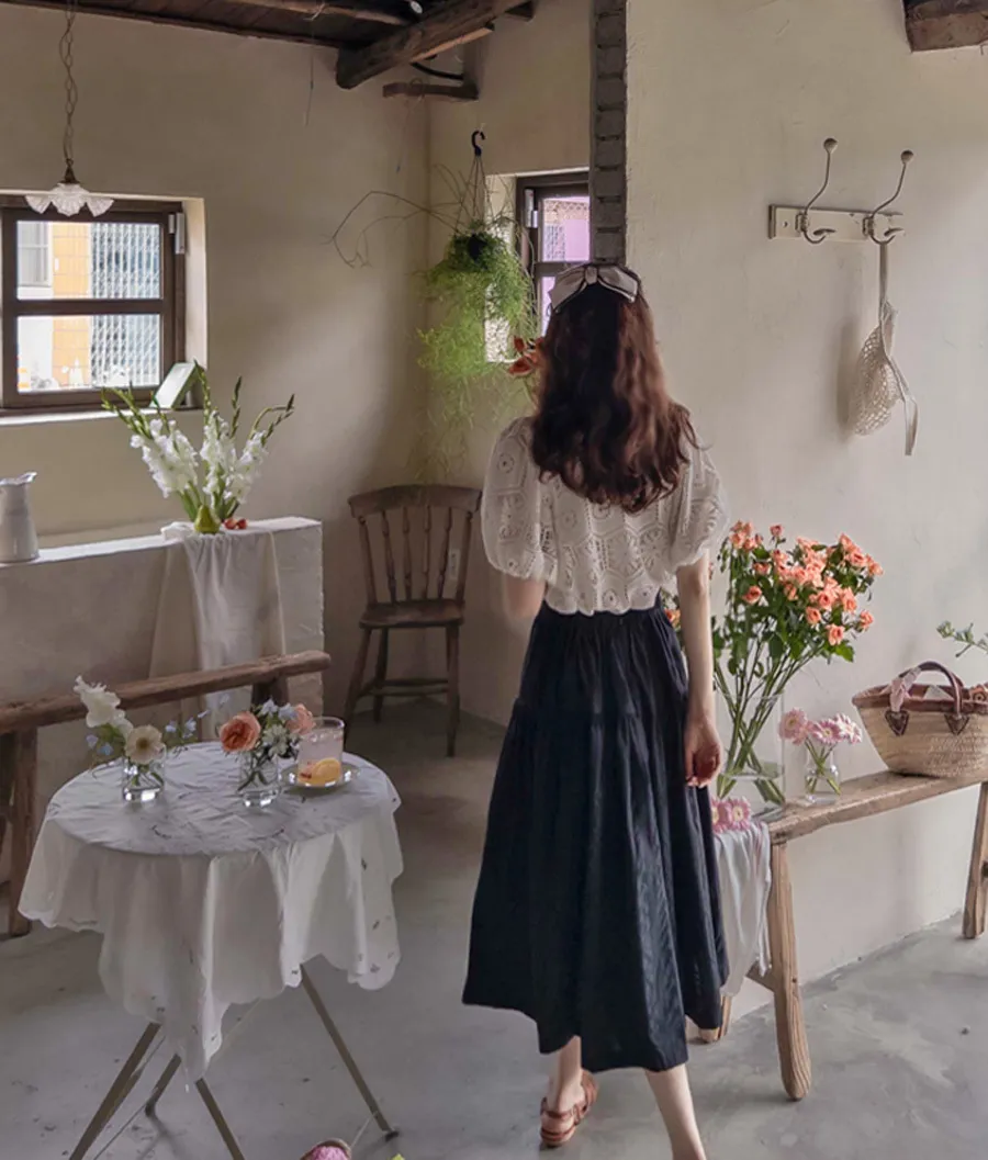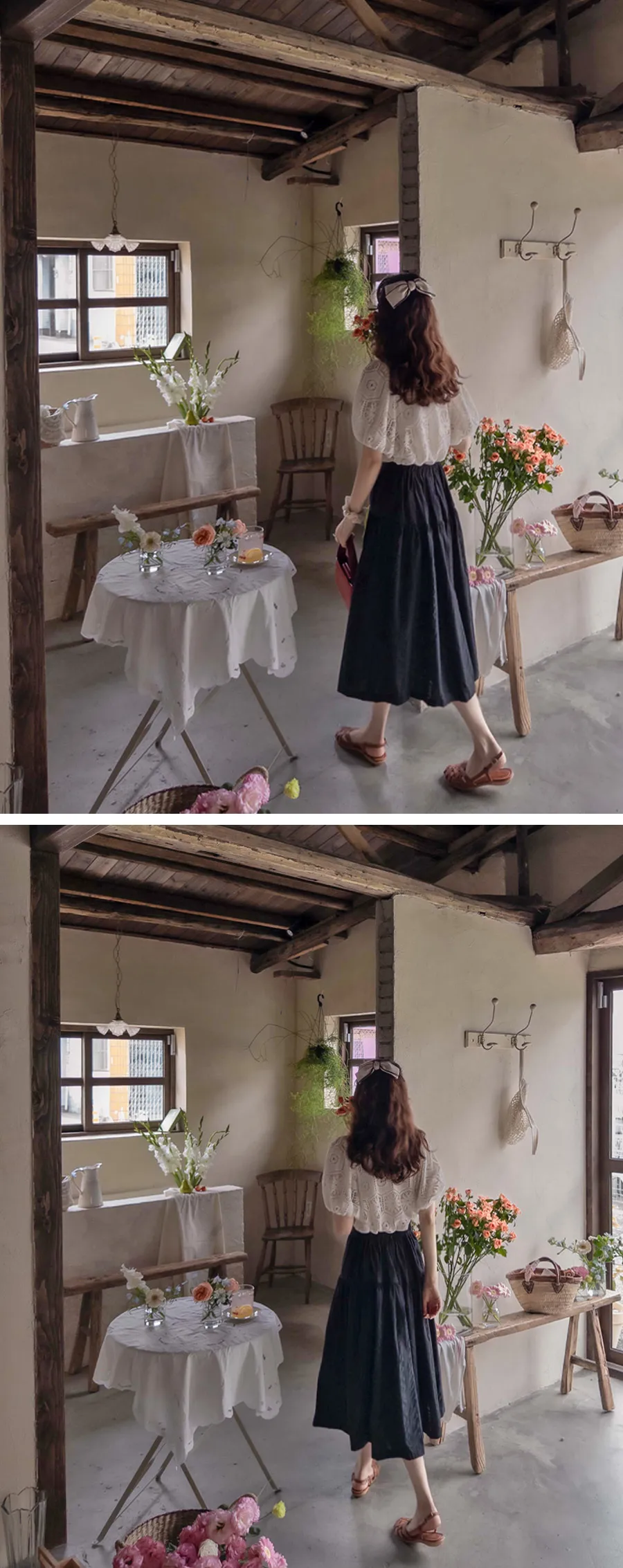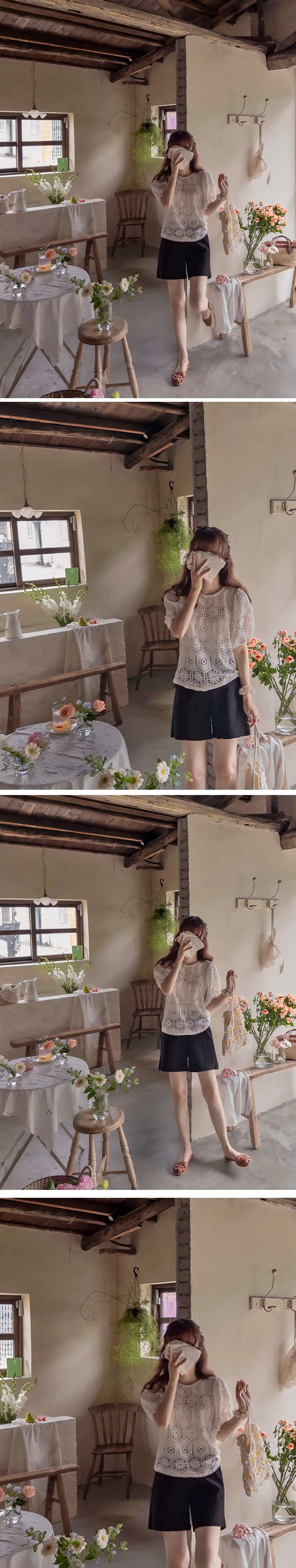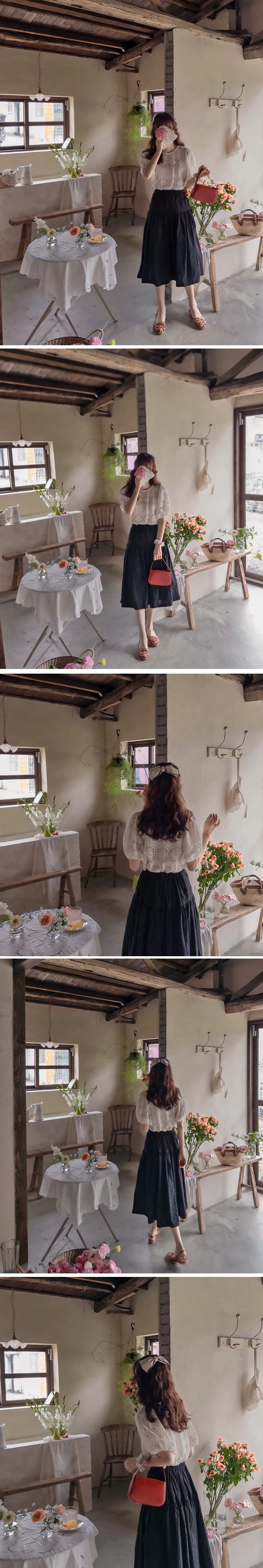 【花朵圖案蕾絲的時尚單品】【肩部剪裁的泡泡袖也很漂亮】【色彩鮮豔、優雅魅力】【蕾絲成分,穿起來可愛】【