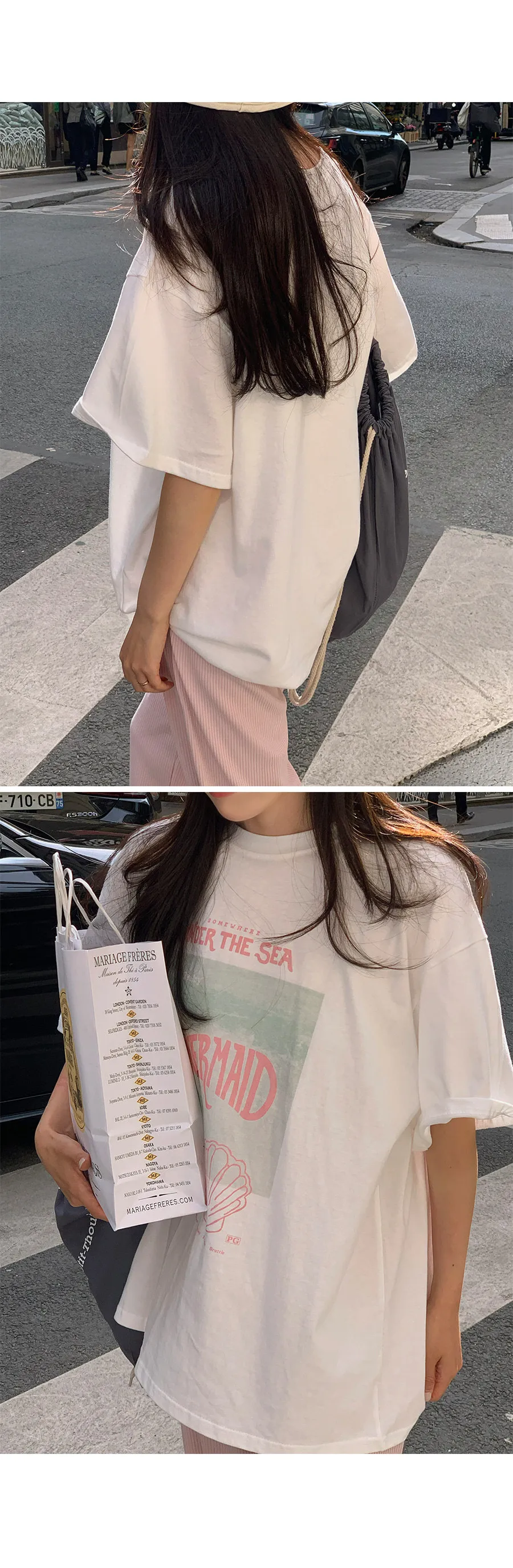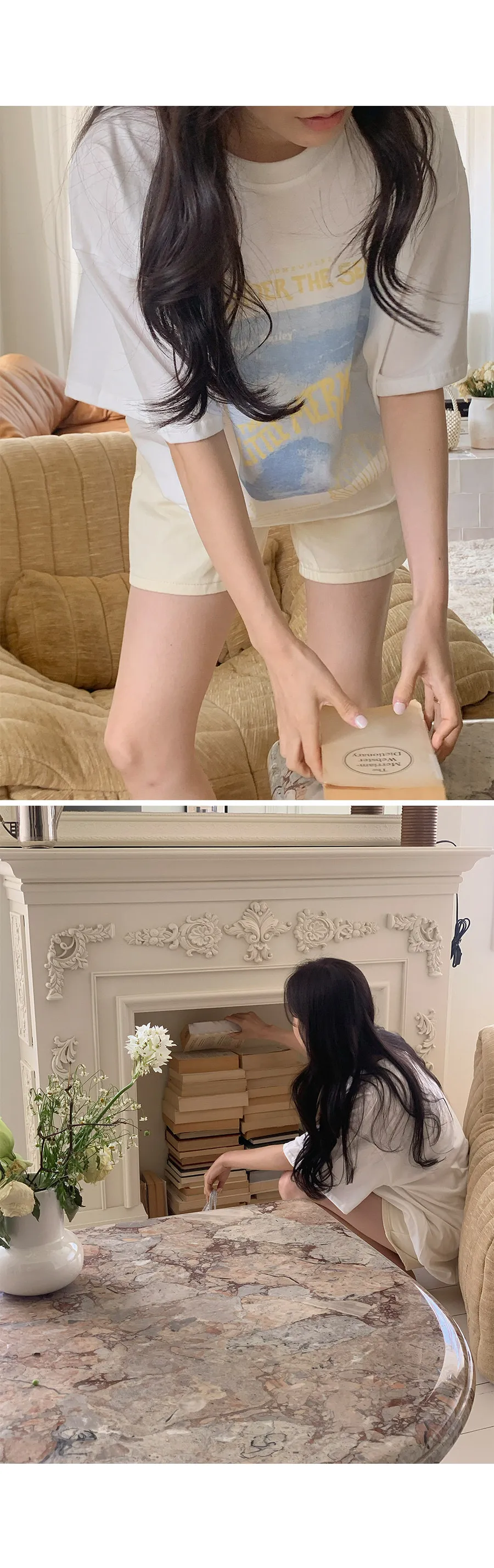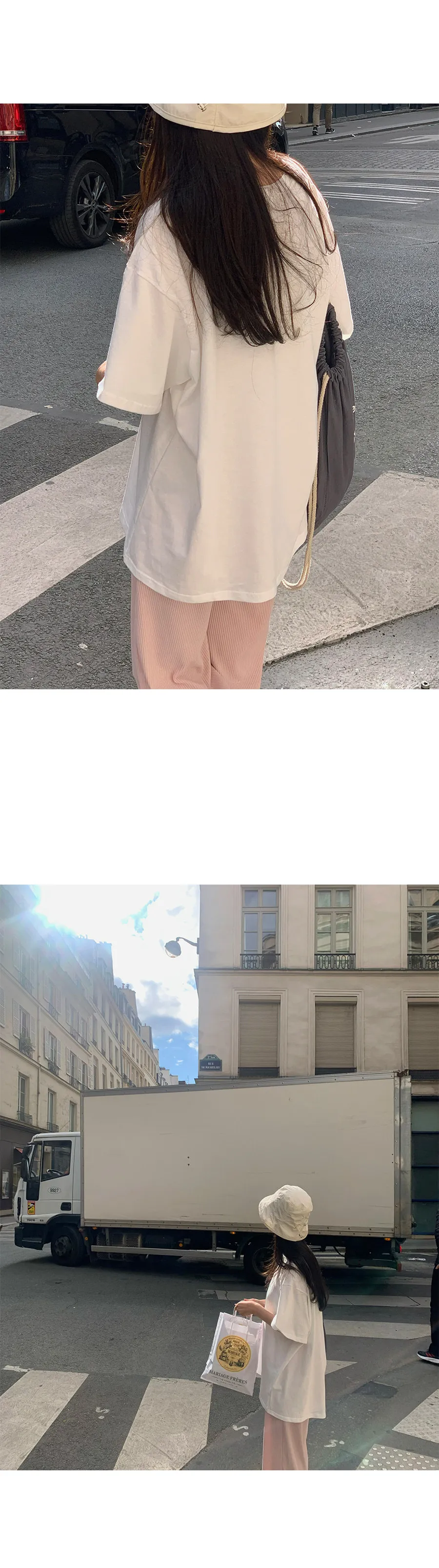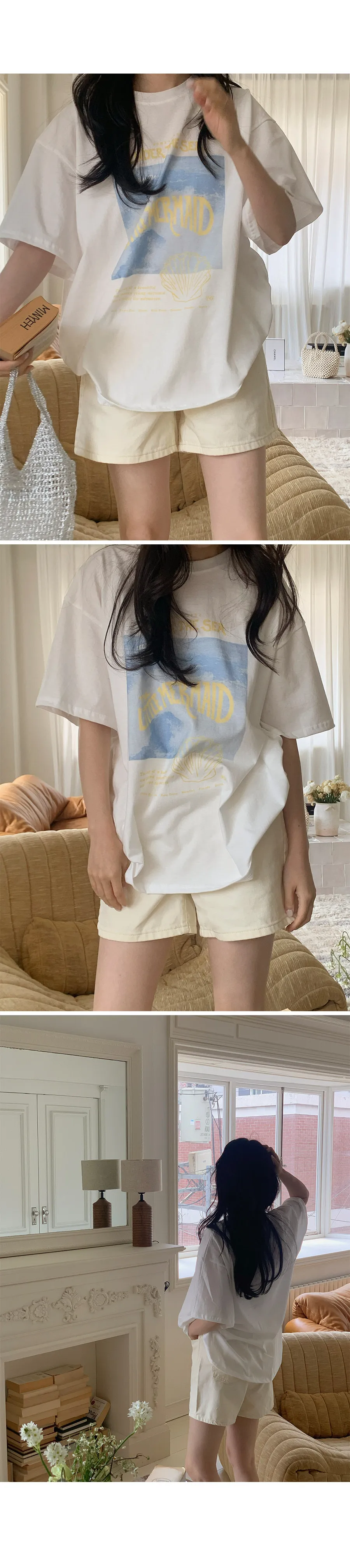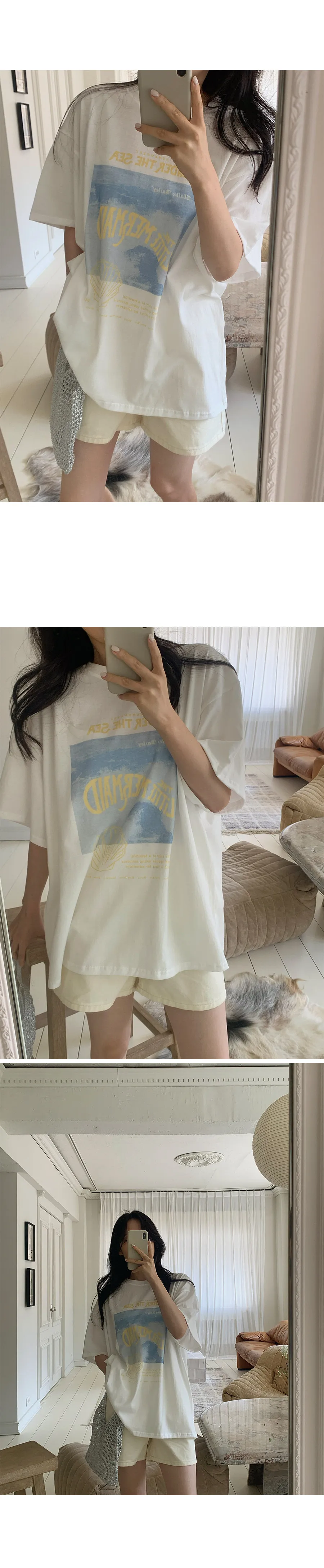 夏日氛圍印花圓領寬版短袖休閒上衣