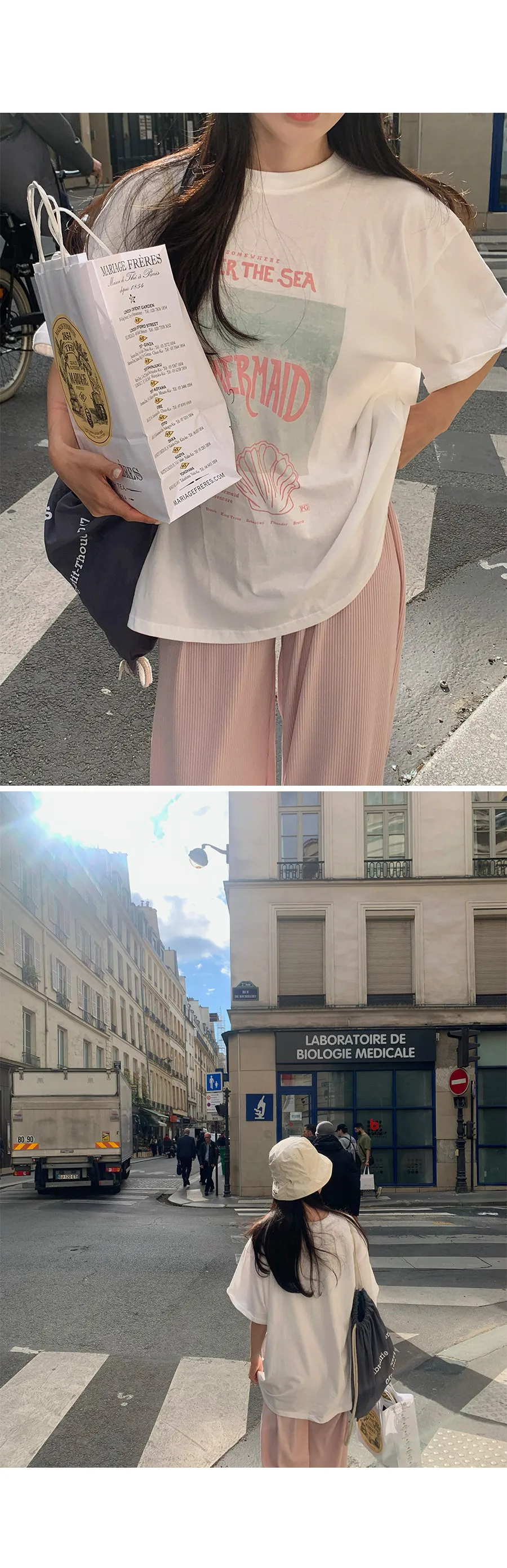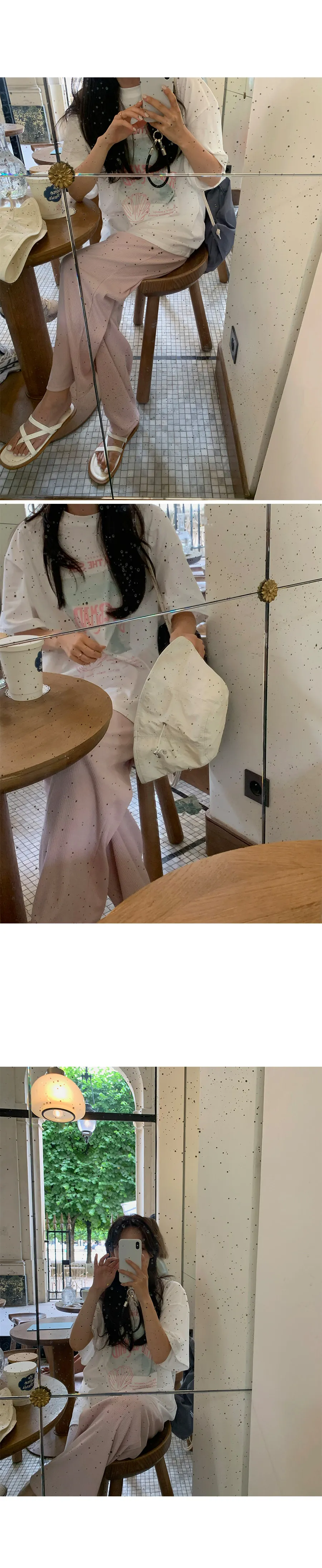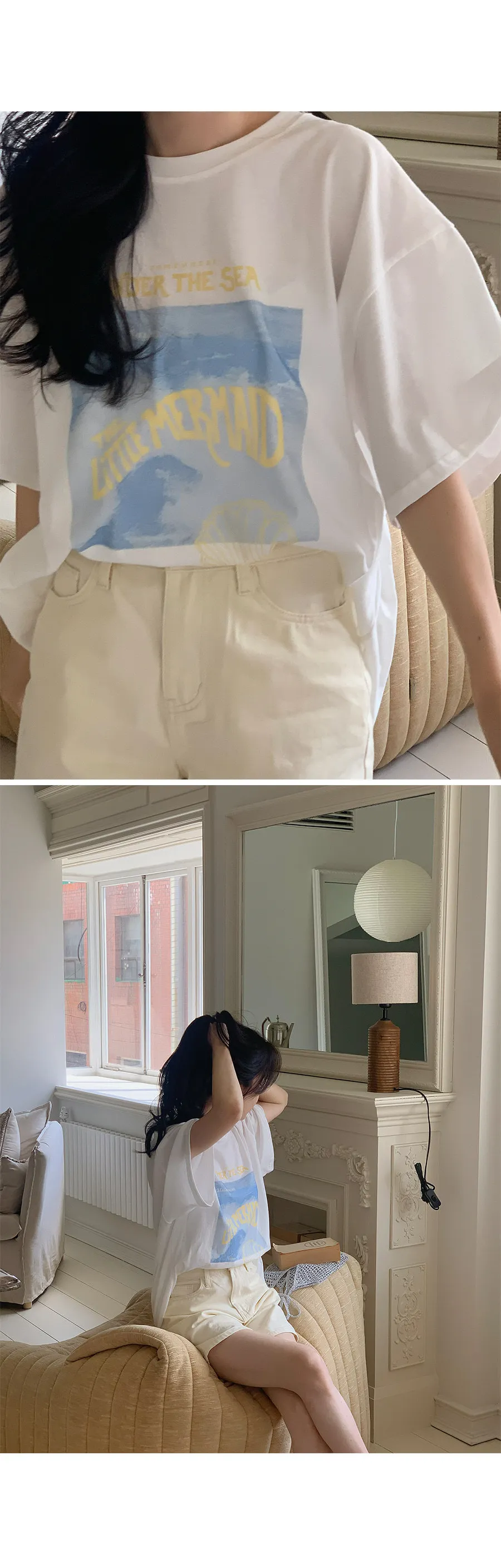 帶著清涼歡快心情的印花上衣!純色的圓領和寬鬆的版型讓穿著舒適,搭配夏天的冷色調印花細節讓你輕鬆享受:)