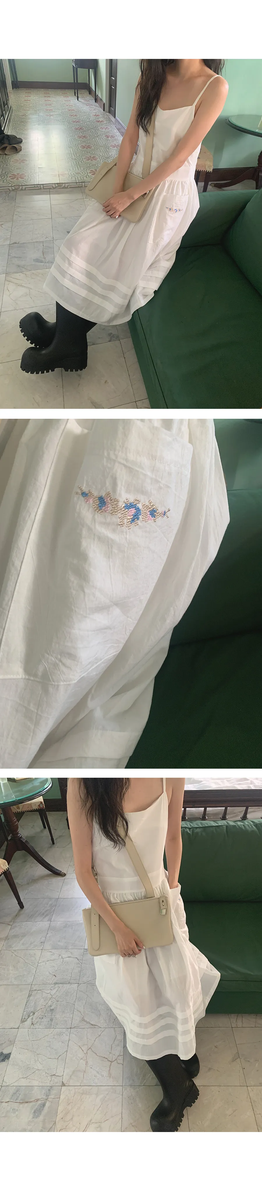 浪漫舒適的度假裝扮更加完美的連身裙:)這款商品的口袋區域飾有可愛復古的刺繡細節。可以單獨穿也可疊穿穿搭。