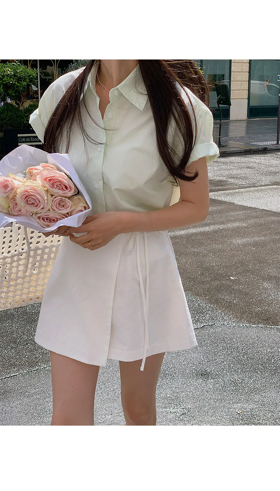 柔美裹身斜飾綁帶短褲裙