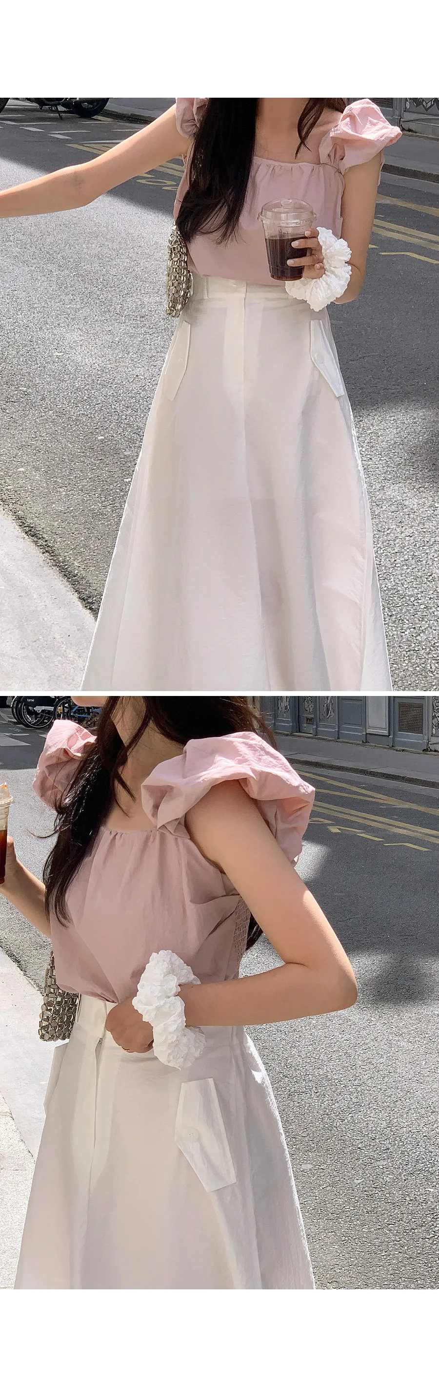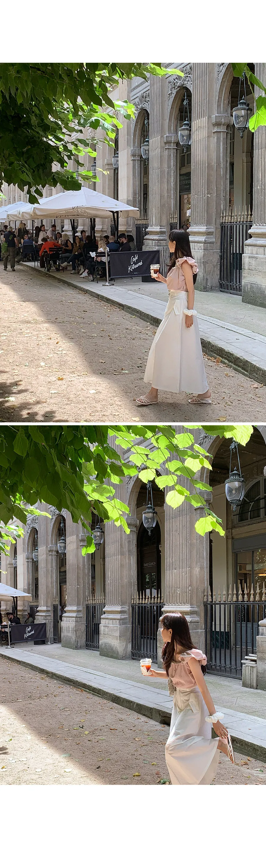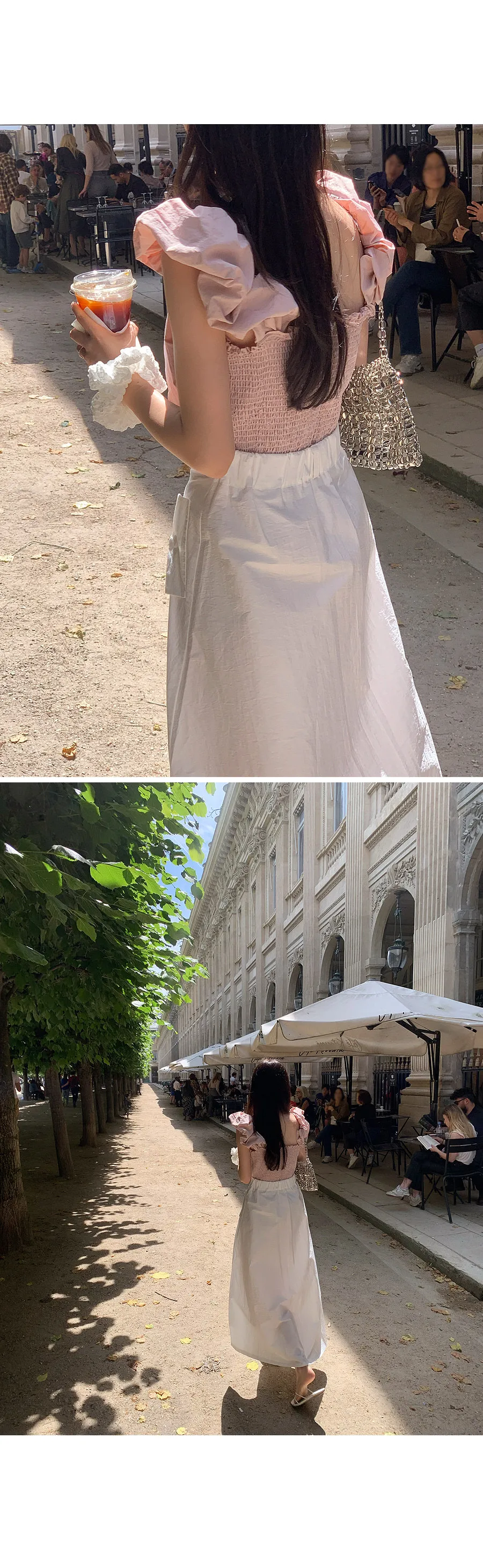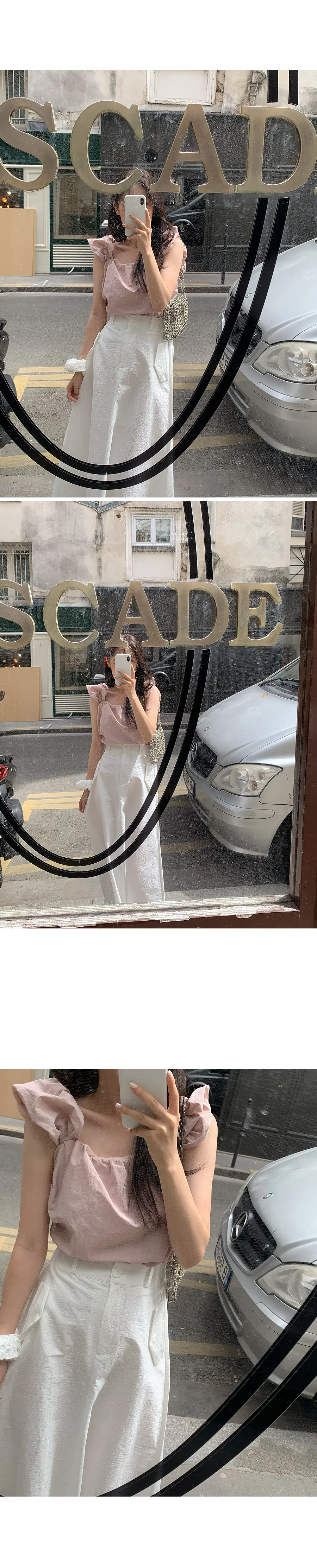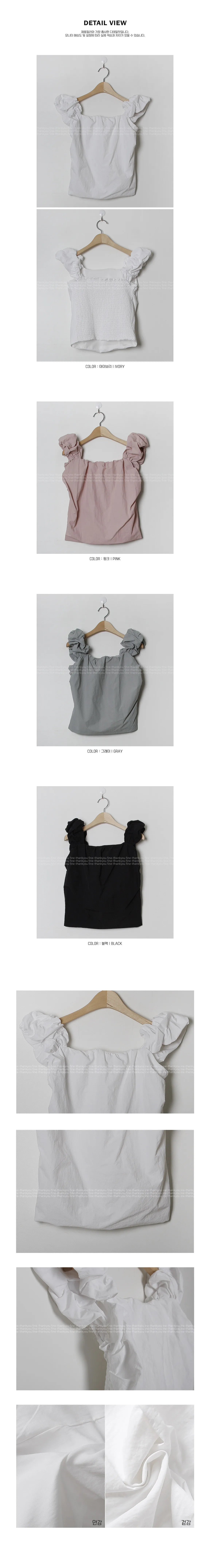 可愛肩線抽褶帶後側皺摺無袖上衣