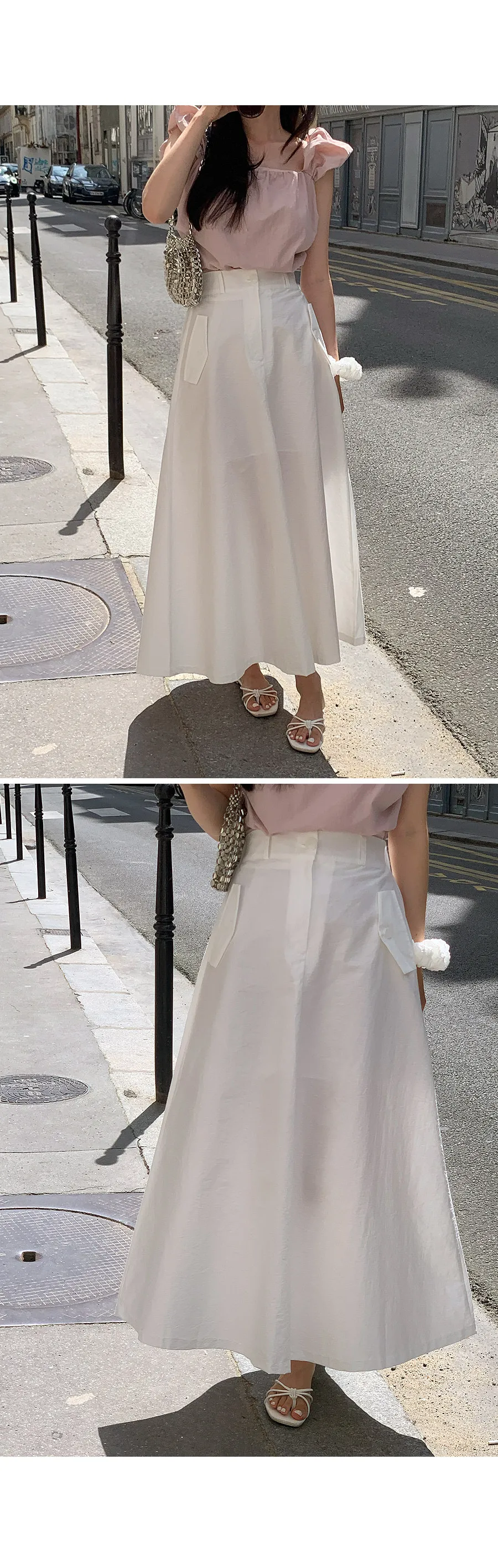 修身版型點綴對角翻蓋口袋傘擺中長裙