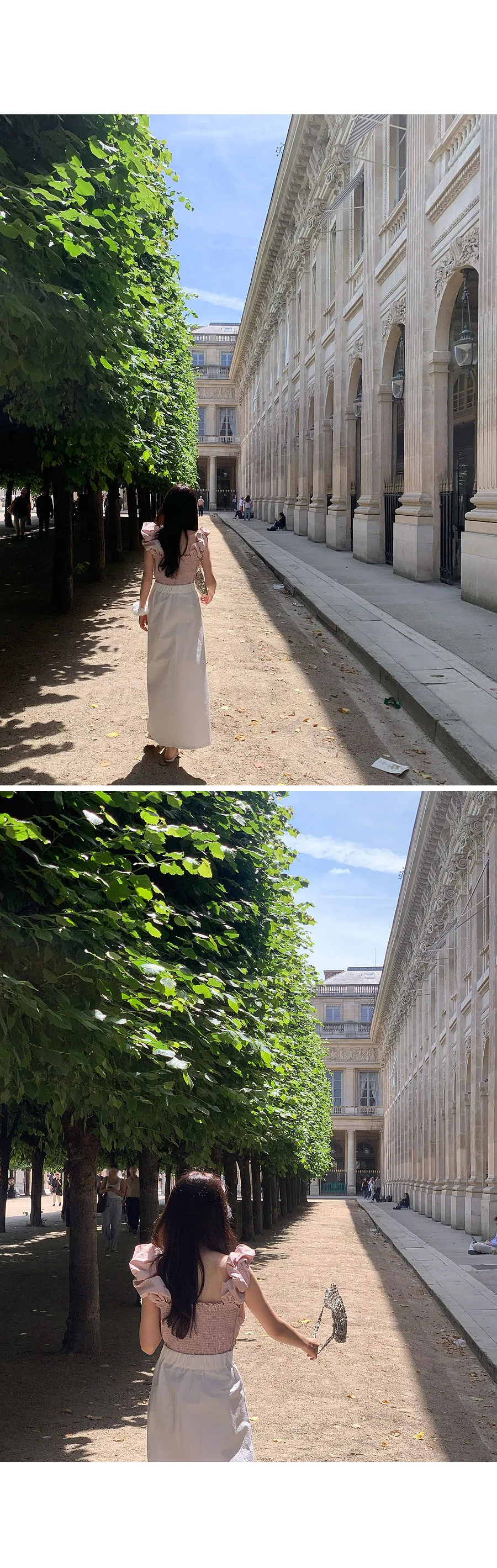 帶有可愛點的無袖上衣!肩膀的抽褶帶子和背面的煙熏帶使其從任何角度看起來都很漂亮,這是一款具有簡約氛圍的夏季上衣,與各種下裝都很相配:)