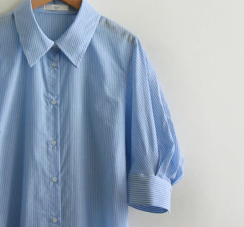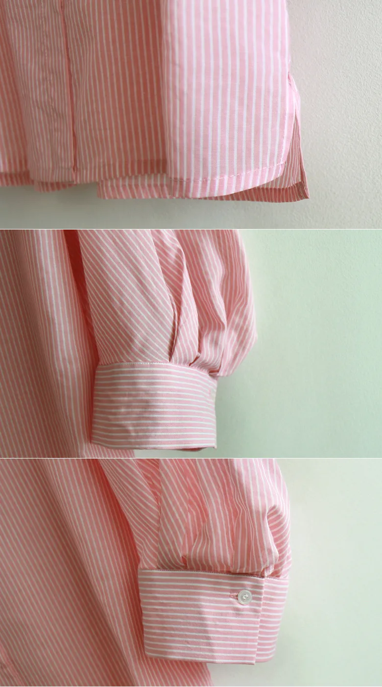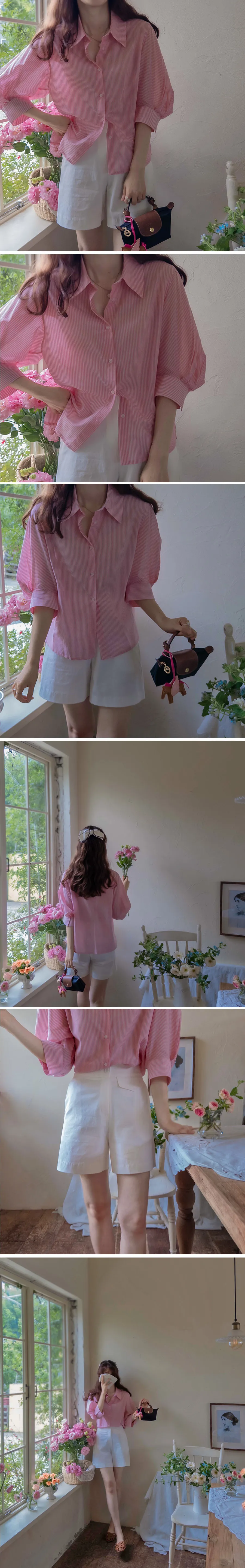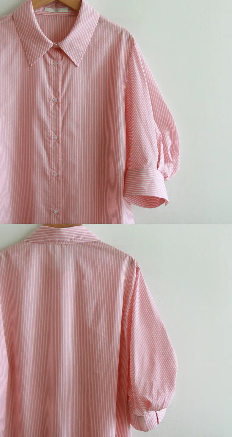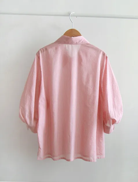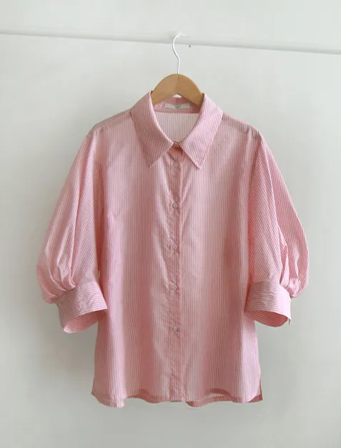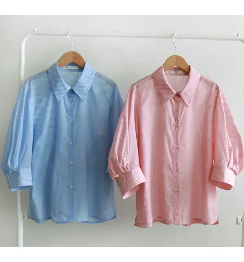 【夏季材質,含72%天絲+28%棉】【條紋圖案,夏季好穿搭】【燈籠袖,打造時尚點】【顏色鮮豔活潑】【天絲材質,穿起來很涼爽