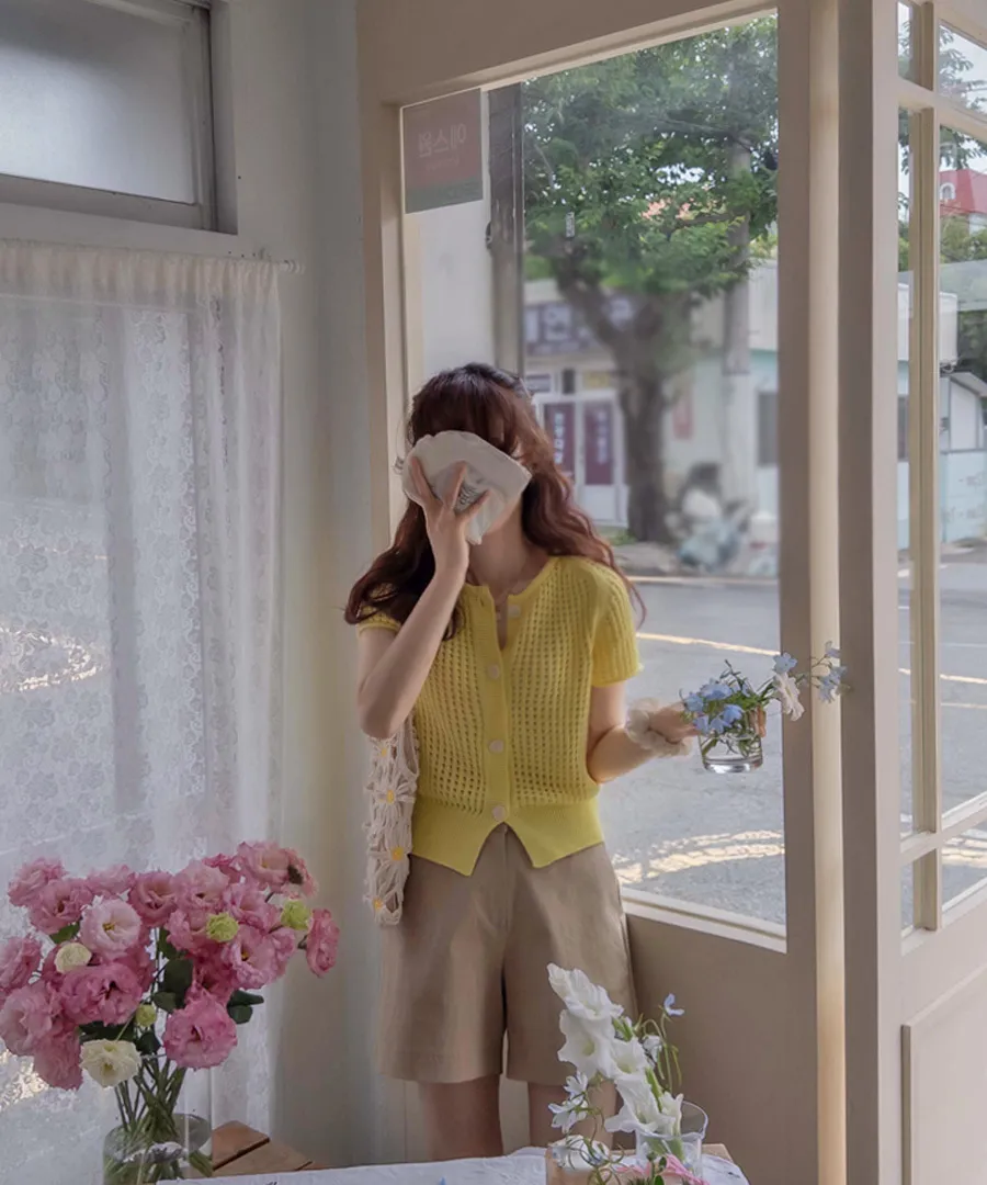 漂亮花朵刺繡袖立體花朵編織針織上衣